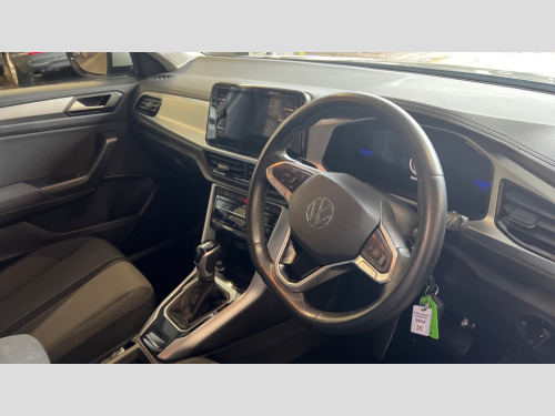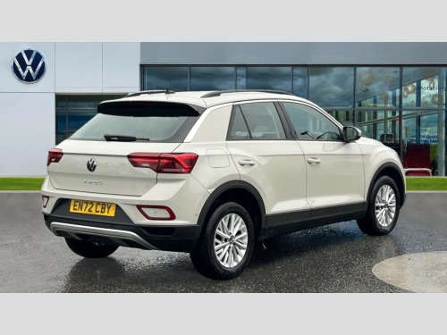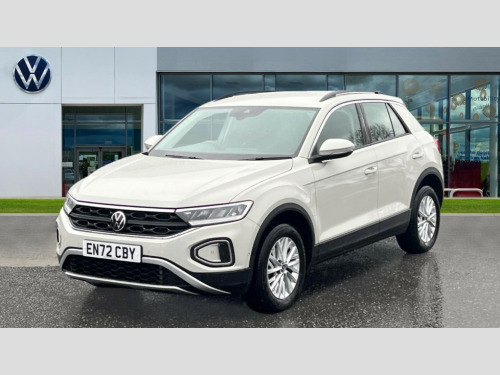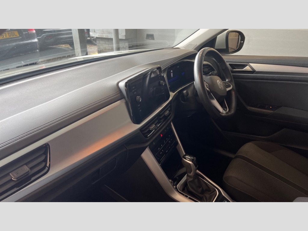 Volkswagen T-Roc 1.5 TSI Life 5dr DSG Bluetooth mobile phone interface, Driver alert system with fatigue detection, Driver tips and journey analysis, Emergency call service, Lane keeping system Lane Assist, Modified key software - reduce switch off time for key status change to Long no motion, Online services, Park assist including front and rear parking sensors, Power assisted speed sensitive steering, Service interval indicator, Tailgate/trunk lid release from outside, Think blue trainer driver tips and journey analysis, Warning sound and light for front seatbelts unfastened, Wireless app connect, Battery regeneration during braking, Front shock absorption, Rear shock absorption chassis with increased ride height, Start/stop function with battery regeneration, DAB Digital radio, Diversity antenna for FM reception, Front and rear 6 speakers, Music playback - MP3, WMA and AAC files, Premium USB cable in choice of either Apple or Android smartphone compatibility, SD card slot, Simultaneous pairing of 2 compatible mobile devices, Title and cover art display, We Connect and We Connect Plus functionality, 3rd brake light, Auto dimming interior rear view mirror, Automatic hazard lights activation under emergency braking, Automatic headlight control with LED separate daytime running lights with coming/leaving home function, Black roof rails, Body coloured bumpers and radiator grille with chrome trim and front fog lamps with chrome bezel, Body coloured exterior mirror housings and door handles, Extended roof spoiler, Exterior mirrors aspherical on driver side, convex on front passenger side, External USB type C socket and charging sockets, Front windscreen wiper with intermittent wipe and 4 position delay, Heated rear window, LED Headlights, LED rear combination lamps, LED rear number plate lights, LED tail lamp rear comination lamps, Power windows with comfort operation and circuit breaker, Rain sensor, Rear exhaust tailpipe, Rear fog light on one side and reversing lights on both sides, Rear side wing doors, Rear wash/wipe with intermittent wipe setting, Remote electrically foldable door mirrors, puddle lights and reverse activated passenger's door mirror, 12V power socket in centre console, 3 rear head restraints, 3 seat bench in 2nd row, 4 load lashing points in luggage compartment, Air care climatronic air conditoning system with active combination filter and 2-zone temperature control, Ambient lighting with mirror logo projection, Cloth upholstery, Door and side trim panel in cloth, Drawer under drivers seat, Driver/front passenger seat height adjustment, Front centre armrest, Front comfort sports seats, Front cupholders x 2, Front reading light, Instrument lighting, white adjustable panel illumination, Interior light delay, Isofix child seat preparation, Leather gearshift handle, Load-through provision with cup holder when folded down ('Unsplit rear seat bench, split folding backrest, with centre armrest), Luggage compartment lighting, Lumbar support for driver's and front passengers seat, Non-folding front passenger seat backrest, Single front passenger seat, Storage compartment in left and right luggage area, Storage compartment in rear doors, Storage compartments in driver and front passenger doors, Sunvisors with illuminated vanity mirrors, Variable boot floor, height adjustable and removable, Driver assistance pack without proactive passenger protection - T-Roc, 3 point height adj front seatbelts + pretensioners, 3 point seatbelts in outer rear with ECE label, ABS, Child locks on rear doors, Driver and front passenger airbag with front passenger airbag deactivation, Driver and front passenger safety-optimised head restraints, Drivers seatbelt reminder, Electronic parking brake, Electronic Stability Control (ESC) inc EDL (Electronic Differential Lock) and ASR (Traction Control), Front and rear passengers curtain airbag system including front side airbags, Front assist with city emergency braking and pedestrian monitoring, Front disc brakes, Front seat side impact airbags, Hill start assist, Predictive pedestrian protection, Rear disc brakes, Single tone horn, Tyre pressure loss indicator, Volkswagen roadside assistance, Alarm with interior protection, Anti-theft alarm system with interior monitoring, backup horn, and towing protection, Remote central locking with SAFELOCK, radio remote control with 2 remote control folding keys, Pewter matt decorative inserts for intrument panel, centre console and door panels at the front, Trims for alloy wheels