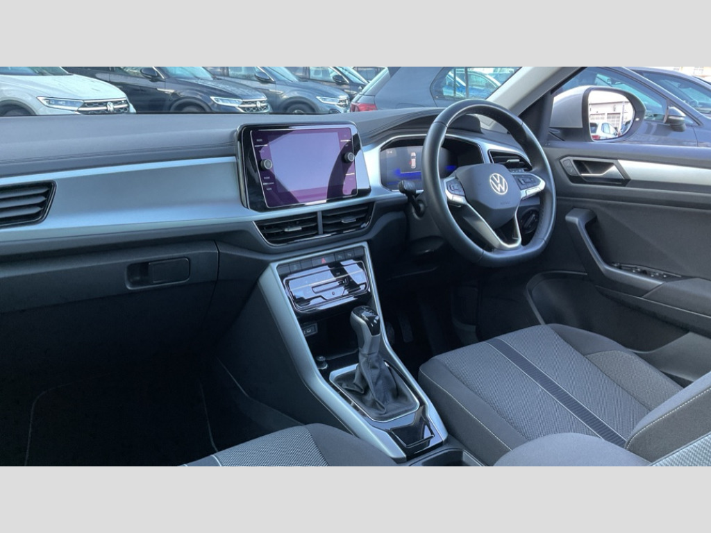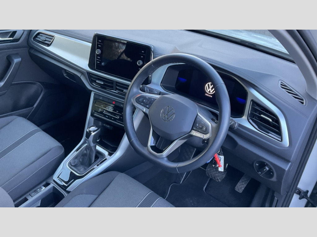 Volkswagen T-Roc 1.5 TSI Life 5dr DSG Bluetooth mobile phone interface, Driver alert system with fatigue detection, Driver tips and journey analysis, Emergency call service, Lane keeping system Lane Assist, Modified key software - reduce switch off time for key status change to Long no motion, Online services, Park assist including front and rear parking sensors, Power assisted speed sensitive steering, Service interval indicator, Tailgate/trunk lid release from outside, Think blue trainer driver tips and journey analysis, Warning sound and light for front seatbelts unfastened, Wireless app connect, Battery regeneration during braking, Front shock absorption, Rear shock absorption chassis with increased ride height, Start/stop function with battery regeneration, DAB Digital radio, Diversity antenna for FM reception, Music playback - MP3, WMA and AAC files, Premium USB cable in choice of either Apple or Android smartphone compatibility, SD card slot, Simultaneous pairing of 2 compatible mobile devices, Title and cover art display, We Connect and We Connect Plus functionality, 3rd brake light, Auto dimming interior rear view mirror, Automatic hazard lights activation under emergency braking, Automatic headlight control with LED separate daytime running lights with coming/leaving home function, Black roof rails, Body coloured bumpers and radiator grille with chrome trim and front fog lamps with chrome bezel, Body coloured exterior mirror housings and door handles, Extended roof spoiler, Exterior mirrors aspherical on driver side, convex on front passenger side, External USB type C socket and charging sockets, Front windscreen wiper with intermittent wipe and 4 position delay, Heated rear window, LED rear combination lamps, LED rear number plate lights, LED tail lamp rear comination lamps, Power windows with comfort operation and circuit breaker, Rain sensor, Rear exhaust tailpipe, Rear fog light on one side and reversing lights on both sides, Rear side wing doors, Rear wash/wipe with intermittent wipe setting, Remote electrically foldable door mirrors, puddle lights and reverse activated passenger's door mirror, 12V power socket in centre console, 3 rear head restraints, 3 seat bench in 2nd row, 4 load lashing points in luggage compartment, Air care climatronic air conditoning system with active combination filter and 2-zone temperature control, Ambient lighting with mirror logo projection, Cloth upholstery, Door and side trim panel in cloth, Drawer under drivers seat, Driver/front passenger seat height adjustment, Front centre armrest, Front comfort sports seats, Front cupholders x 2, Front reading light, Instrument lighting, white adjustable panel illumination, Interior light delay, Isofix child seat preparation, Leather gearshift handle, Load-through provision with cup holder when folded down ('Unsplit rear seat bench, split folding backrest, with centre armrest), Luggage compartment lighting, Lumbar support for driver's and front passengers seat, Non-folding front passenger seat backrest, Single front passenger seat, Storage compartment in left and right luggage area, Storage compartment in rear doors, Storage compartments in driver and front passenger doors, Sunvisors with illuminated vanity mirrors, Variable boot floor, height adjustable and removable, Driver assistance pack without proactive passenger protection - T-Roc, 3 point height adj front seatbelts + pretensioners, 3 point seatbelts in outer rear with ECE label, ABS, Child locks on rear doors, Driver and front passenger airbag with front passenger airbag deactivation, Driver and front passenger safety-optimised head restraints, Drivers seatbelt reminder, Electronic parking brake, Electronic Stability Control (ESC) inc EDL (Electronic Differential Lock) and ASR (Traction Control), Front and rear passengers curtain airbag system including front side airbags, Front assist with city emergency braking and pedestrian monitoring, Front disc brakes, Front seat side impact airbags, Hill start assist, Predictive pedestrian protection, Rear disc brakes, Single tone horn, Tyre pressure loss indicator, Volkswagen roadside assistance, Alarm with interior protection, Anti-theft alarm system with interior monitoring, backup horn, and towing protection, Remote central locking with SAFELOCK, radio remote control with 2 remote control folding keys, Pewter matt decorative inserts for intrument panel, centre console and door panels at the front, Trims for alloy wheels