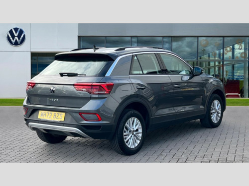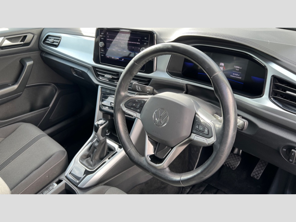 Volkswagen T-Roc 1.5 TSI Life 5dr DSG Bluetooth mobile phone interface, Driver alert system with fatigue detection, Driver tips and journey analysis, Emergency call service, Lane keeping system Lane Assist, Modified key software - reduce switch off time for key status change to Long no motion, Online services, Park assist including front and rear parking sensors, Power assisted speed sensitive steering, Service interval indicator, Tailgate/trunk lid release from outside, Think blue trainer driver tips and journey analysis, Warning sound and light for front seatbelts unfastened, Wireless app connect, Battery regeneration during braking, Front shock absorption, Rear shock absorption chassis with increased ride height, Start/stop function with battery regeneration, DAB Digital radio, Diversity antenna for FM reception, Front and rear 6 speakers, Music playback - MP3, WMA and AAC files, Premium USB cable in choice of either Apple or Android smartphone compatibility, SD card slot, Simultaneous pairing of 2 compatible mobile devices, Title and cover art display, We Connect and We Connect Plus functionality, 3rd brake light, Auto dimming interior rear view mirror, Automatic hazard lights activation under emergency braking, Automatic headlight control with LED separate daytime running lights with coming/leaving home function, Black roof rails, Body coloured bumpers and radiator grille with chrome trim and front fog lamps with chrome bezel, Body coloured exterior mirror housings and door handles, Extended roof spoiler, Exterior mirrors aspherical on driver side, convex on front passenger side, External USB type C socket and charging sockets, Front windscreen wiper with intermittent wipe and 4 position delay, Heated rear window, LED Headlights, LED rear combination lamps, LED rear number plate lights, LED tail lamp rear comination lamps, Power windows with comfort operation and circuit breaker, Rain sensor, Rear exhaust tailpipe, Rear fog light on one side and reversing lights on both sides, Rear side wing doors, Rear wash/wipe with intermittent wipe setting, Remote electrically foldable door mirrors, puddle lights and reverse activated passenger's door mirror, 12V power socket in centre console, 3 rear head restraints, 3 seat bench in 2nd row, 4 load lashing points in luggage compartment, Air care climatronic air conditoning system with active combination filter and 2-zone temperature control, Ambient lighting with mirror logo projection, Cloth upholstery, Door and side trim panel in cloth, Drawer under drivers seat, Driver/front passenger seat height adjustment, Front centre armrest, Front comfort sports seats, Front cupholders x 2, Front reading light, Instrument lighting, white adjustable panel illumination, Interior light delay, Isofix child seat preparation, Leather gearshift handle, Load-through provision with cup holder when folded down ('Unsplit rear seat bench, split folding backrest, with centre armrest), Luggage compartment lighting, Lumbar support for driver's and front passengers seat, Non-folding front passenger seat backrest, Single front passenger seat, Storage compartment in left and right luggage area, Storage compartment in rear doors, Storage compartments in driver and front passenger doors, Sunvisors with illuminated vanity mirrors, Variable boot floor, height adjustable and removable, Driver assistance pack without proactive passenger protection - T-Roc, 3 point height adj front seatbelts + pretensioners, 3 point seatbelts in outer rear with ECE label, ABS, Child locks on rear doors, Driver and front passenger airbag with front passenger airbag deactivation, Driver and front passenger safety-optimised head restraints, Drivers seatbelt reminder, Electronic parking brake, Electronic Stability Control (ESC) inc EDL (Electronic Differential Lock) and ASR (Traction Control), Front and rear passengers curtain airbag system including front side airbags, Front assist with city emergency braking and pedestrian monitoring, Front disc brakes, Front seat side impact airbags, Hill start assist, Predictive pedestrian protection, Rear disc brakes, Single tone horn, Tyre pressure loss indicator, Volkswagen roadside assistance, Alarm with interior protection, Anti-theft alarm system with interior monitoring, backup horn, and towing protection, Remote central locking with SAFELOCK, radio remote control with 2 remote control folding keys, Pewter matt decorative inserts for intrument panel, centre console and door panels at the front, Trims for alloy wheels