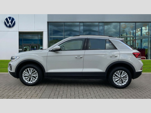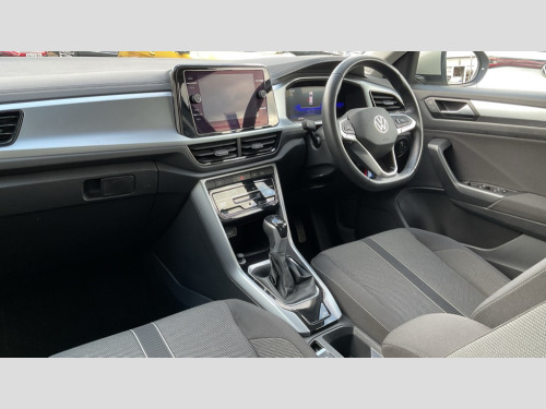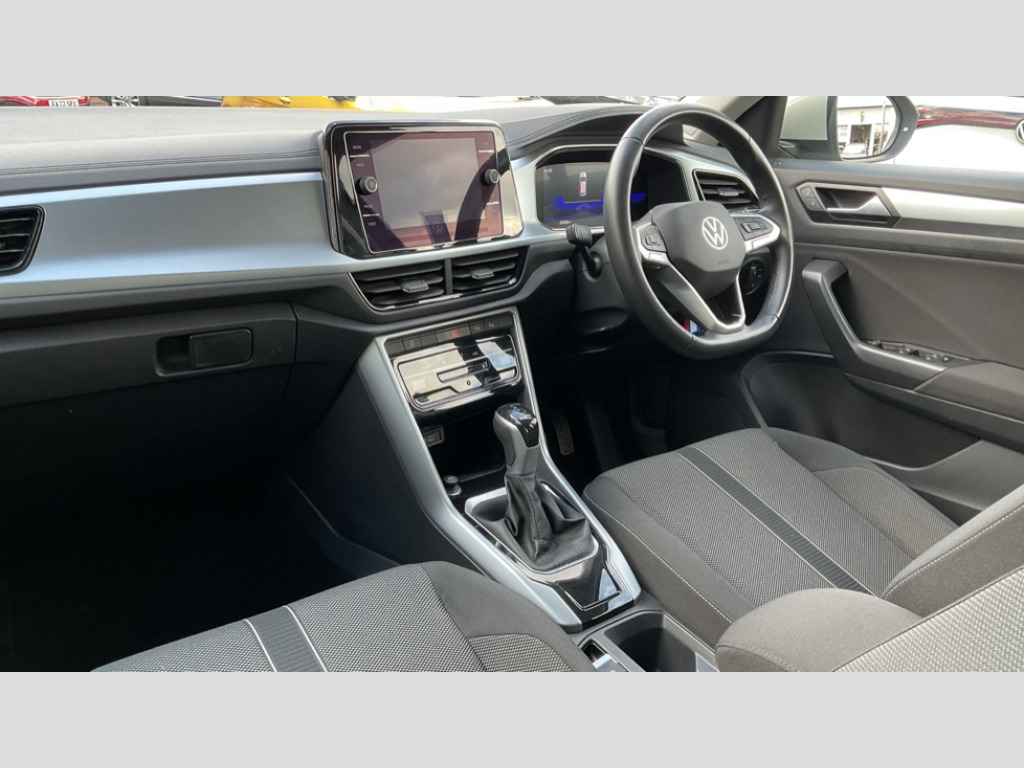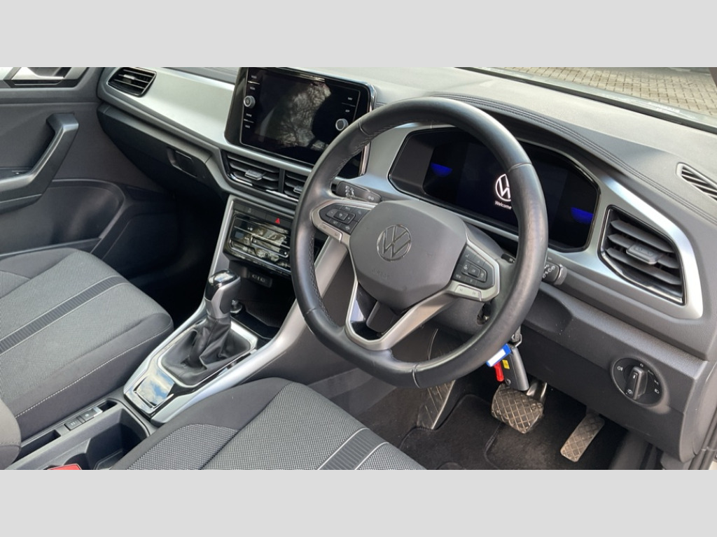 Volkswagen T-Roc 1.5 TSI Life 5dr DSG Advanced driver attention and drowsiness monitor, Bluetooth mobile phone interface, Driver tips and journey analysis, Emergency call service, Lane keeping system Lane Assist, Modified key software - reduce switch off time for key status change to Long no motion, Online services, Park assist including front and rear parking sensors, Power assisted speed sensitive steering, Service interval indicator, Tailgate/trunk lid release from outside, Think blue trainer driver tips and journey analysis, Warning sound and light for front seatbelts unfastened, Wireless app connect, Battery regeneration during braking, Front shock absorption, Rear shock absorption chassis with increased ride height, Start/stop function with battery regeneration, DAB Digital radio, Diversity antenna for FM reception, Music playback - MP3, WMA and AAC files, Premium USB cable in choice of either Apple or Android smartphone compatibility, SD card slot, Simultaneous pairing of 2 compatible mobile devices, Title and cover art display, We Connect and We Connect Plus functionality, 3rd brake light, Auto dimming interior rear view mirror, Automatic hazard lights activation under emergency braking, Automatic headlight control with LED separate daytime running lights with coming/leaving home function, Black roof rails, Body coloured bumpers and radiator grille with chrome trim and front fog lamps with chrome bezel, Body coloured exterior mirror housings and door handles, Extended roof spoiler, Exterior mirrors aspherical on driver side, convex on front passenger side, External USB type C socket and charging sockets, Front windscreen wiper with intermittent wipe and 4 position delay, Heated rear window, LED rear combination lamps, LED rear number plate lights, LED tail lamp rear comination lamps, Power windows with comfort operation and circuit breaker, Rain sensor, Rear exhaust tailpipe, Rear fog light on one side and reversing lights on both sides, Rear side wing doors, Rear wash/wipe with intermittent wipe setting, Remote electrically foldable door mirrors, puddle lights and reverse activated passenger's door mirror, 12V power socket in centre console, 3 rear head restraints, 3 seat bench in 2nd row, 4 load lashing points in luggage compartment, Air care climatronic air conditoning system with active combination filter and 2-zone temperature control, Ambient lighting with mirror logo projection, Cloth upholstery, Door and side trim panel in cloth, Drawer under drivers seat, Driver/front passenger seat height adjustment, Front centre armrest, Front comfort sports seats, Front cupholders x 2, Front reading light, Instrument lighting, white adjustable panel illumination, Interior light delay, Isofix child seat preparation, Leather gearshift handle, Load-through provision with cup holder when folded down ('Unsplit rear seat bench, split folding backrest, with centre armrest), Luggage compartment lighting, Lumbar support for driver's and front passengers seat, Non-folding front passenger seat backrest, Single front passenger seat, Storage compartment in left and right luggage area, Storage compartment in rear doors, Storage compartments in driver and front passenger doors, Sunvisors with illuminated vanity mirrors, Variable boot floor, height adjustable and removable, Driver assistance pack without proactive passenger protection - T-Roc, 3 point height adj front seatbelts + pretensioners, 3 point seatbelts in outer rear with ECE label, ABS, Child locks on rear doors, Driver and front passenger airbag with front passenger airbag deactivation, Driver and front passenger safety-optimised head restraints, Drivers seatbelt reminder, Electronic parking brake, Electronic Stability Control (ESC) inc EDL (Electronic Differential Lock) and ASR (Traction Control), Front and rear passengers curtain airbag system including front side airbags, Front assist with city emergency braking and pedestrian monitoring, Front disc brakes, Front seat side impact airbags, Hill start assist, Predictive pedestrian protection, Rear disc brakes, Two tone horn, Tyre pressure loss indicator, Volkswagen roadside assistance, Alarm with interior protection, Anti-theft alarm system with interior monitoring, backup horn, and towing protection, Remote central locking with SAFELOCK, radio remote control with 2 remote control folding keys, Pewter matt decorative inserts for intrument panel, centre console and door panels at the front, Trims for alloy wheels