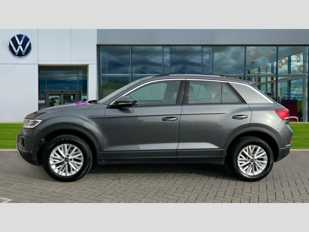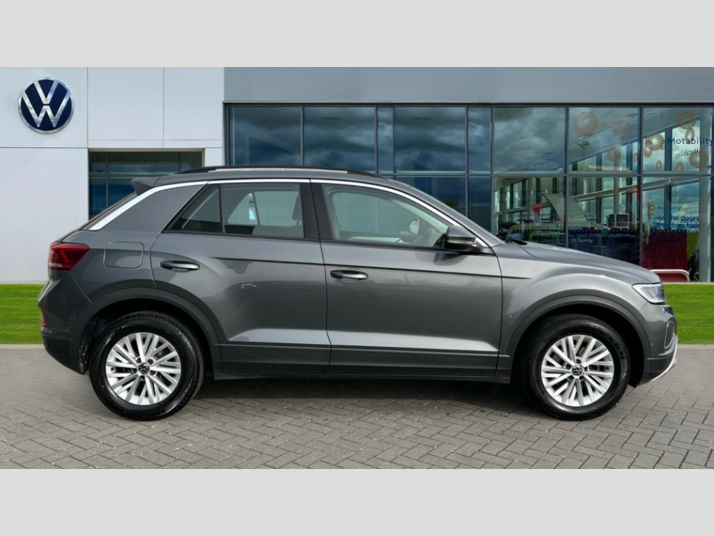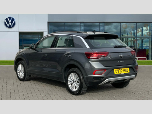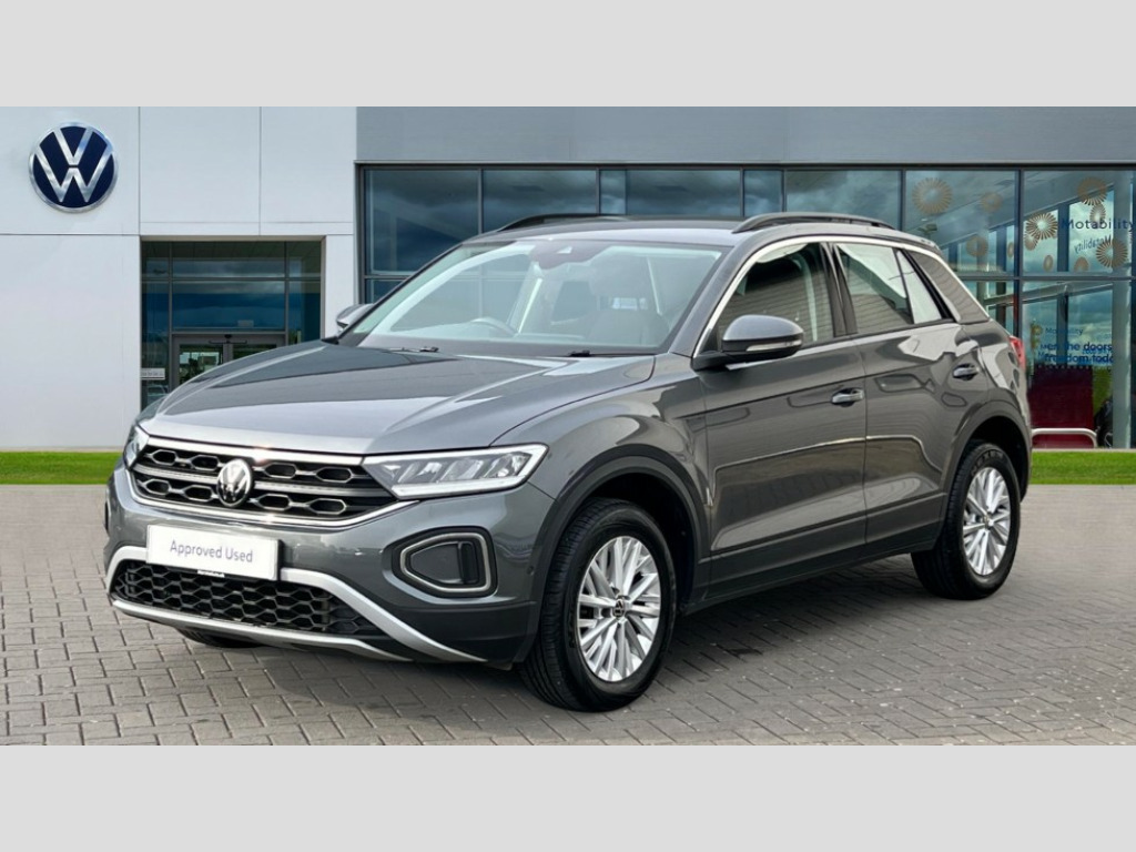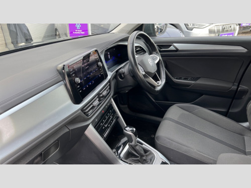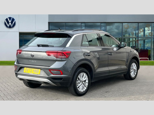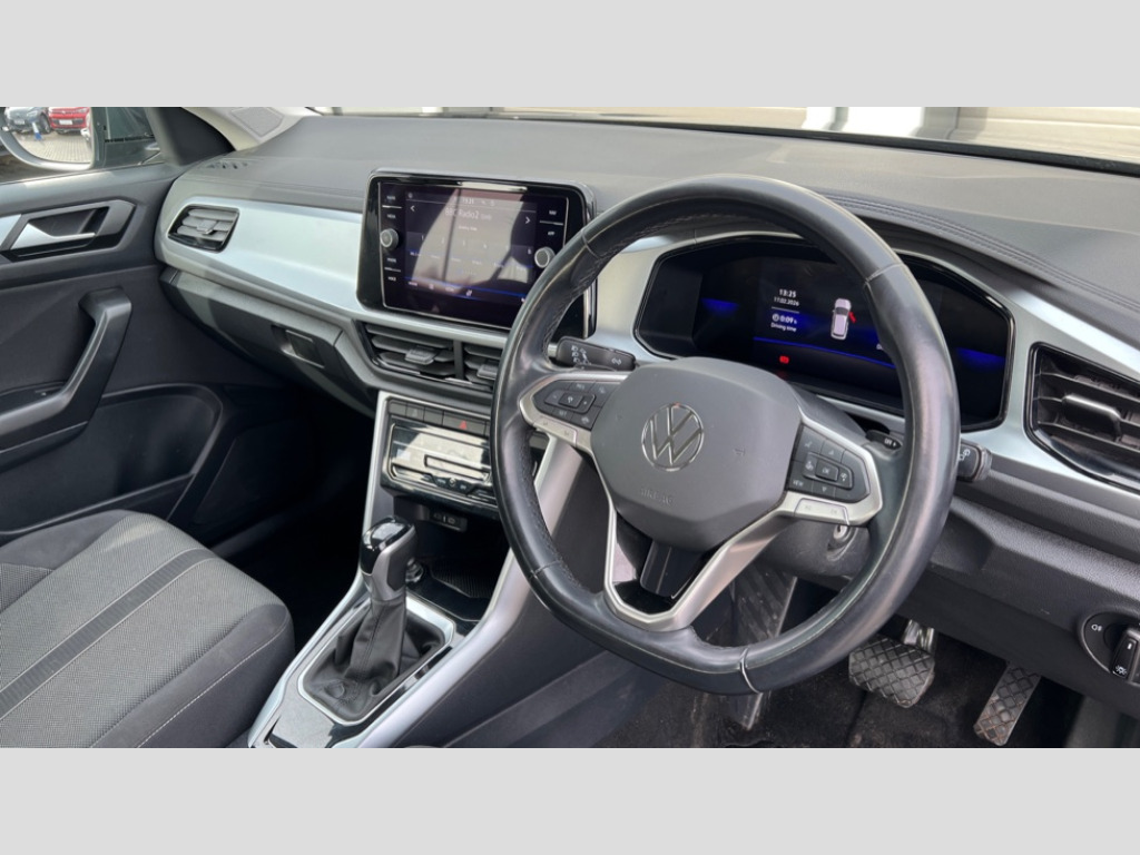 Volkswagen T-Roc 1.5 TSI Life 5dr DSG Bluetooth mobile phone interface, Driver alert system with fatigue detection, Driver tips and journey analysis, Emergency call service, Lane keeping system Lane Assist, Modified key software - reduce switch off time for key status change to Long no motion, Online services, Park assist including front and rear parking sensors, Power assisted speed sensitive steering, Service interval indicator, Tailgate/trunk lid release from outside, Think blue trainer driver tips and journey analysis, Warning sound and light for front seatbelts unfastened, Wireless app connect, Battery regeneration during braking, Front shock absorption, Rear shock absorption chassis with increased ride height, Start/stop function with battery regeneration, DAB Digital radio, Diversity antenna for FM reception, Front and rear 6 speakers, Music playback - MP3, WMA and AAC files, Premium USB cable in choice of either Apple or Android smartphone compatibility, SD card slot, Simultaneous pairing of 2 compatible mobile devices, Title and cover art display, We Connect and We Connect Plus functionality, 3rd brake light, Auto dimming interior rear view mirror, Automatic hazard lights activation under emergency braking, Automatic headlight control with LED separate daytime running lights with coming/leaving home function, Black roof rails, Body coloured bumpers and radiator grille with chrome trim and front fog lamps with chrome bezel, Body coloured exterior mirror housings and door handles, Extended roof spoiler, Exterior mirrors aspherical on driver side, convex on front passenger side, External USB type C socket and charging sockets, Front windscreen wiper with intermittent wipe and 4 position delay, Heated rear window, LED Headlights, LED rear combination lamps, LED rear number plate lights, LED tail lamp rear comination lamps, Power windows with comfort operation and circuit breaker, Rain sensor, Rear exhaust tailpipe, Rear fog light on one side and reversing lights on both sides, Rear side wing doors, Rear wash/wipe with intermittent wipe setting, Remote electrically foldable door mirrors, puddle lights and reverse activated passenger's door mirror, 12V power socket in centre console, 3 rear head restraints, 3 seat bench in 2nd row, 4 load lashing points in luggage compartment, Air care climatronic air conditoning system with active combination filter and 2-zone temperature control, Ambient lighting with mirror logo projection, Cloth upholstery, Door and side trim panel in cloth, Drawer under drivers seat, Driver/front passenger seat height adjustment, Front centre armrest, Front comfort sports seats, Front cupholders x 2, Front reading light, Instrument lighting, white adjustable panel illumination, Interior light delay, Isofix child seat preparation, Leather gearshift handle, Load-through provision with cup holder when folded down ('Unsplit rear seat bench, split folding backrest, with centre armrest), Luggage compartment lighting, Lumbar support for driver's and front passengers seat, Non-folding front passenger seat backrest, Single front passenger seat, Storage compartment in left and right luggage area, Storage compartment in rear doors, Storage compartments in driver and front passenger doors, Sunvisors with illuminated vanity mirrors, Variable boot floor, height adjustable and removable, Driver assistance pack without proactive passenger protection - T-Roc, 3 point height adj front seatbelts + pretensioners, 3 point seatbelts in outer rear with ECE label, ABS, Child locks on rear doors, Driver and front passenger airbag with front passenger airbag deactivation, Driver and front passenger safety-optimised head restraints, Drivers seatbelt reminder, Electronic parking brake, Electronic Stability Control (ESC) inc EDL (Electronic Differential Lock) and ASR (Traction Control), Front and rear passengers curtain airbag system including front side airbags, Front assist with city emergency braking and pedestrian monitoring, Front disc brakes, Front seat side impact airbags, Hill start assist, Predictive pedestrian protection, Rear disc brakes, Single tone horn, Tyre pressure loss indicator, Volkswagen roadside assistance, Alarm with interior protection, Anti-theft alarm system with interior monitoring, backup horn, and towing protection, Remote central locking with SAFELOCK, radio remote control with 2 remote control folding keys, Pewter matt decorative inserts for intrument panel, centre console and door panels at the front, Trims for alloy wheels