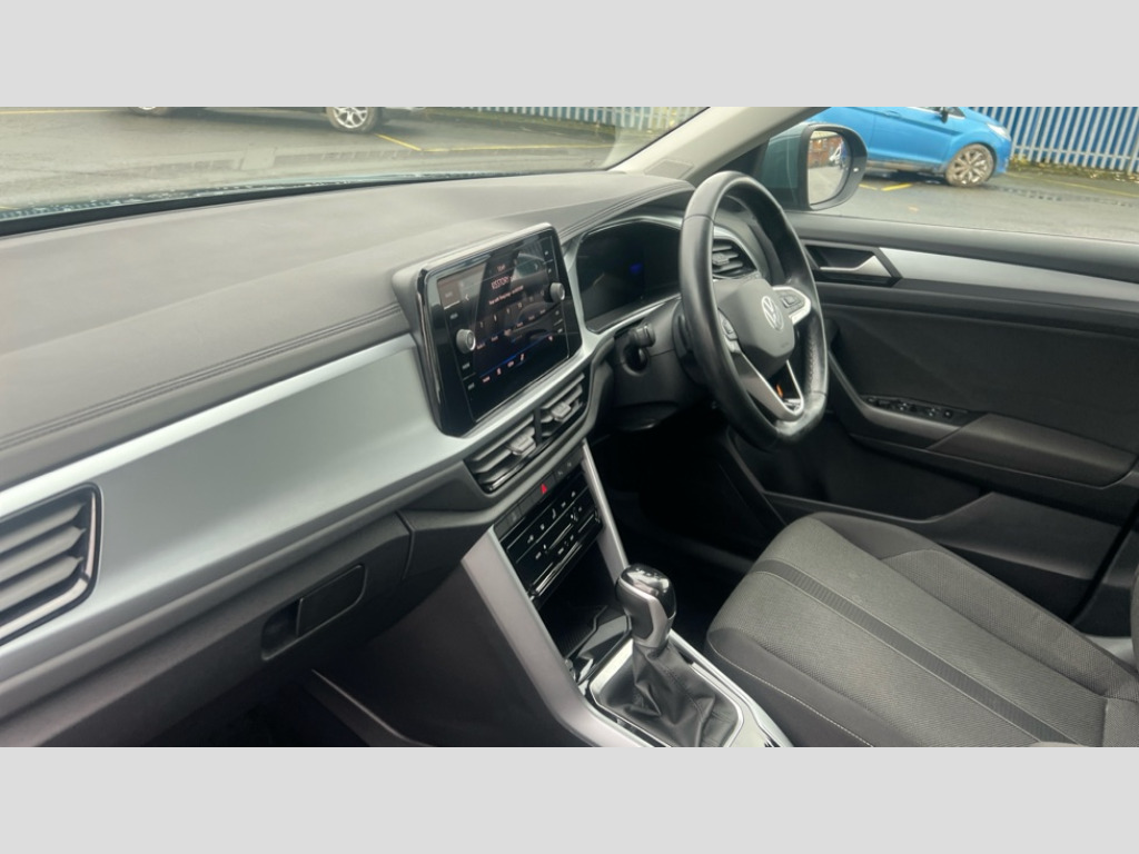 Volkswagen T-Roc 1.5 TSI Life 5dr DSG Bluetooth mobile phone interface, Driver alert system with fatigue detection, Driver tips and journey analysis, Emergency call service, Lane keeping system Lane Assist, Modified key software - reduce switch off time for key status change to Long no motion, Online services, Park assist including front and rear parking sensors, Power assisted speed sensitive steering, Service interval indicator, Tailgate/trunk lid release from outside, Think blue trainer driver tips and journey analysis, Warning sound and light for front seatbelts unfastened, Wireless app connect, Battery regeneration during braking, Front shock absorption, Rear shock absorption chassis with increased ride height, Start/stop function with battery regeneration, DAB Digital radio, Diversity antenna for FM reception, Front and rear 6 speakers, Music playback - MP3, WMA and AAC files, Premium USB cable in choice of either Apple or Android smartphone compatibility, SD card slot, Simultaneous pairing of 2 compatible mobile devices, Title and cover art display, We Connect and We Connect Plus functionality, 3rd brake light, Auto dimming interior rear view mirror, Automatic hazard lights activation under emergency braking, Automatic headlight control with LED separate daytime running lights with coming/leaving home function, Black roof rails, Body coloured bumpers and radiator grille with chrome trim and front fog lamps with chrome bezel, Body coloured exterior mirror housings and door handles, Extended roof spoiler, Exterior mirrors aspherical on driver side, convex on front passenger side, External USB type C socket and charging sockets, Front windscreen wiper with intermittent wipe and 4 position delay, Heated rear window, LED Headlights, LED rear combination lamps, LED rear number plate lights, LED tail lamp rear comination lamps, Power windows with comfort operation and circuit breaker, Rain sensor, Rear exhaust tailpipe, Rear fog light on one side and reversing lights on both sides, Rear side wing doors, Rear wash/wipe with intermittent wipe setting, Remote electrically foldable door mirrors, puddle lights and reverse activated passenger's door mirror, 12V power socket in centre console, 3 rear head restraints, 3 seat bench in 2nd row, 4 load lashing points in luggage compartment, Air care climatronic air conditoning system with active combination filter and 2-zone temperature control, Ambient lighting with mirror logo projection, Cloth upholstery, Door and side trim panel in cloth, Drawer under drivers seat, Driver/front passenger seat height adjustment, Front centre armrest, Front comfort sports seats, Front cupholders x 2, Front reading light, Instrument lighting, white adjustable panel illumination, Interior light delay, Isofix child seat preparation, Leather gearshift handle, Load-through provision with cup holder when folded down ('Unsplit rear seat bench, split folding backrest, with centre armrest), Luggage compartment lighting, Lumbar support for driver's and front passengers seat, Non-folding front passenger seat backrest, Single front passenger seat, Storage compartment in left and right luggage area, Storage compartment in rear doors, Storage compartments in driver and front passenger doors, Sunvisors with illuminated vanity mirrors, Variable boot floor, height adjustable and removable, Driver assistance pack without proactive passenger protection - T-Roc, 3 point height adj front seatbelts + pretensioners, 3 point seatbelts in outer rear with ECE label, ABS, Child locks on rear doors, Driver and front passenger airbag with front passenger airbag deactivation, Driver and front passenger safety-optimised head restraints, Drivers seatbelt reminder, Electronic parking brake, Electronic Stability Control (ESC) inc EDL (Electronic Differential Lock) and ASR (Traction Control), Front and rear passengers curtain airbag system including front side airbags, Front assist with city emergency braking and pedestrian monitoring, Front disc brakes, Front seat side impact airbags, Hill start assist, Predictive pedestrian protection, Rear disc brakes, Single tone horn, Tyre pressure loss indicator, Volkswagen roadside assistance, Alarm with interior protection, Anti-theft alarm system with interior monitoring, backup horn, and towing protection, Remote central locking with SAFELOCK, radio remote control with 2 remote control folding keys, Pewter matt decorative inserts for intrument panel, centre console and door panels at the front, Trims for alloy wheels
