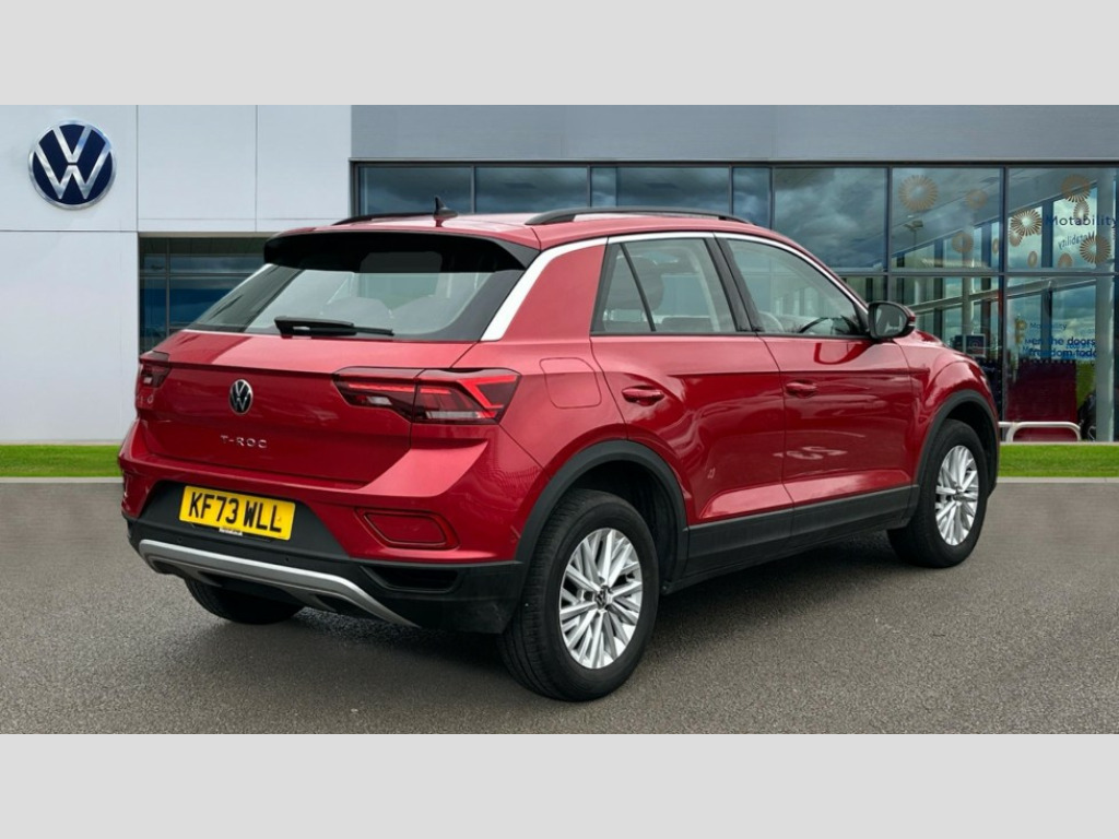 Volkswagen T-Roc 1.5 TSI Life 5dr DSG This 2023 Volkswagen T-Roc TSI Life presents an exceptional ownership proposition, having been cherished by just one owner from new and boasting remarkably low mileage of only 13,467 miles. As a Volkswagen manufacturer approved vehicle, it offers peace of mind, featuring a responsive 1.5 litre petrol engine and meeting Euro 6 emission standards. The Life trim level ensures a comfortable and convenient driving experience, enhanced by a suite of notable features. These include striking LED headlights with automatic activation and a coming home leaving home function, alongside an advanced Air Care Climatronic air conditioning system with a 2 zone temperature control for personalised comfort.