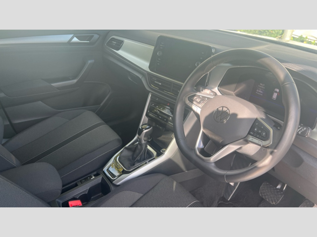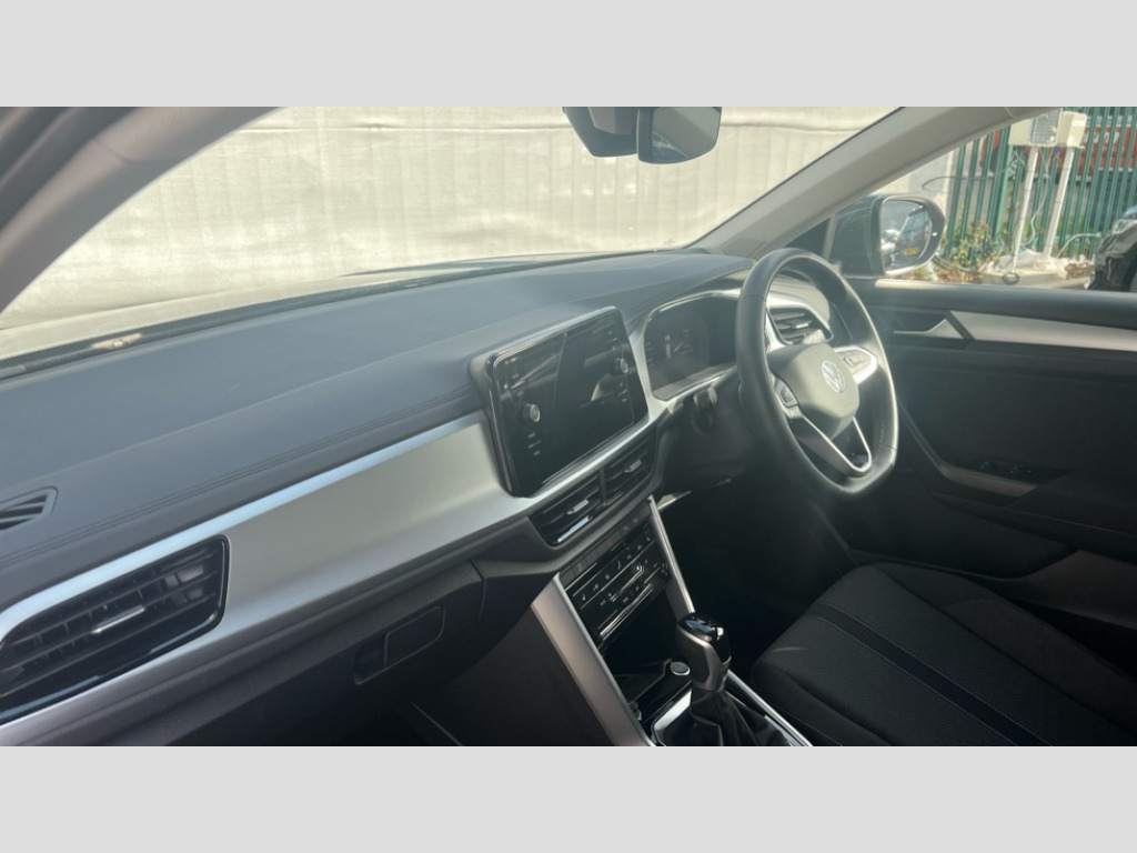 Volkswagen T-Roc 1.5 TSI Match 5dr DSG Advanced driver attention and drowsiness monitor, Dynamic road sign display, Emergency call service, Lane keeping system Lane Assist, Mobile phone interface, Modified key software - reduce switch off time for key status change to Long no motion, Online services, Park assist including front and rear parking sensors, Power assisted speed sensitive steering, Rear view camera, Service interval indicator, Tailgate/trunk lid release from outside, Think blue trainer driver tips and journey analysis, Warning sound and light for front seatbelts unfastened, Wireless app connect, Battery regeneration during braking, Front shock absorption, Rear shock absorption chassis with increased ride height, Start/stop function with battery regeneration, DAB Digital radio, Diversity antenna for FM reception, Front and rear 6 speakers, Music playback - MP3, WMA and AAC files, Premium USB cable in choice of either Apple or Android smartphone compatibility, SD card slot, Simultaneous pairing of 2 compatible mobile devices, Title and cover art display, We Connect and We Connect Plus functionality, Auto dimming interior rear view mirror, Automatic hazard lights activation under emergency braking, Automatic headlight control with LED separate daytime running lights with coming/leaving home function, Black roof rails, Body coloured bumpers and radiator grille with chrome trim and front fog lamps with chrome bezel, Body coloured exterior mirror housings and door handles, Electrically adjustable and heated door mirrors, Extended roof spoiler, Exterior mirrors aspherical on driver side, convex on front passenger side, External USB type C socket and charging sockets, Front windscreen wiper with intermittent wipe and 4 position delay, Heated rear window, LED 3rd brake light, LED rear combination lamps, LED rear number plate lights, Power windows with comfort operation and circuit breaker, Privacy glass for rear side windows and rear window, Rain sensor, Rear exhaust tailpipe, Rear fog light on one side and reversing lights on both sides, Rear side wing doors, Rear wash/wipe with intermittent wipe setting, Remote electrically foldable door mirrors, puddle lights and reverse activated passenger's door mirror, 12V power socket in centre console, 3 rear head restraints, 3 seat bench in 2nd row, 4 load lashing points in luggage compartment, Air care climatronic air conditoning system with active combination filter and 2-zone temperature control, Black stitching for floor mats, Ceramique roof liner, Cloth upholstery, Door and side trim panel in cloth, Drawer under drivers seat, Driver/front passenger seat height adjustment, Front centre armrest, Front comfort sports seats, Front cupholders x 2, Front reading light, Front seat back storage pockets, Glove compartment door with light, Instrument lighting, white adjustable panel illumination, Interior ambient lighting and surround lighting, Interior light delay, Isofix child seat preparation, Leather gearshift handle, Load-through provision with cup holder when folded down ('Unsplit rear seat bench, split folding backrest, with centre armrest), Luggage compartment lighting, Lumbar support for driver's and front passengers seat, Non-folding front passenger seat backrest, Single front passenger seat, Storage compartment in left and right luggage area, Storage compartment in rear doors, Storage compartments in driver and front passenger doors, Sunvisors with illuminated vanity mirrors, Variable boot floor, height adjustable and removable, Driver assistance pack without proactive passenger protection - T-Roc Life/Match, 3 point height adj front seatbelts + pretensioners, 3 point seatbelts in outer rear with ECE label, ABS, Child locks on rear doors, City emergency braking and pedestrian monitoring, Driver and front passenger airbag with front passenger airbag deactivation, Driver and front passenger safety-optimised head restraints, Drivers seatbelt reminder, Electronic parking brake, Electronic Stability Control (ESC) inc EDL (Electronic Differential Lock) and ASR (Traction Control), Front and rear passengers curtain airbag system including front side airbags, Front disc brakes, Hill start assist, Predictive pedestrian protection, Rear disc brakes, Two tone horn, Tyre pressure loss indicator, Volkswagen roadside assistance, Alarm with interior protection, Keyless locking and starting system keyless access with safelock, Pewter matt decorative inserts for intrument panel, centre console and door panels at the front, Trims for alloy wheels