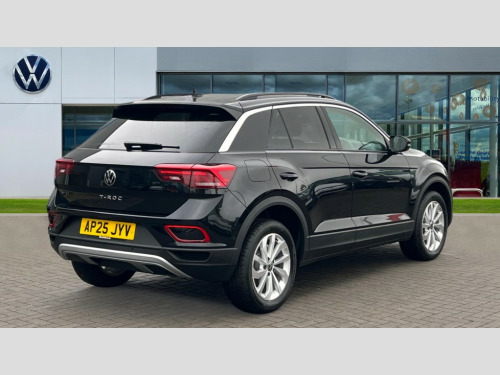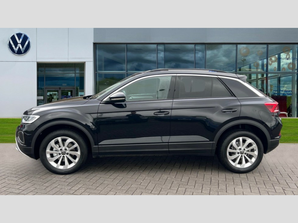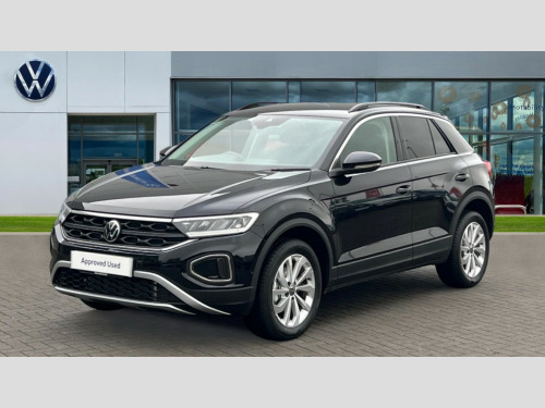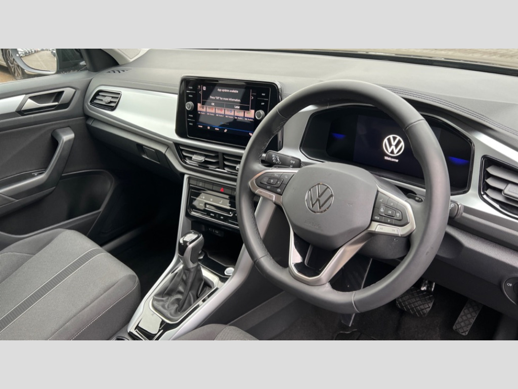 Volkswagen T-Roc 1.5 TSI Match 5dr DSG Advanced driver attention and drowsiness monitor, Dynamic road sign display, Emergency call service, Lane keeping system Lane Assist, Mobile phone interface, Modified key software - reduce switch off time for key status change to Long no motion, Online services, Park assist including front and rear parking sensors, Power assisted speed sensitive steering, Rear view camera, Service interval indicator, Tailgate/trunk lid release from outside, Think blue trainer driver tips and journey analysis, Warning sound and light for front seatbelts unfastened, Wireless app connect, Battery regeneration during braking, Front shock absorption, Rear shock absorption chassis with increased ride height, Start/stop function with battery regeneration, DAB Digital radio, Diversity antenna for FM reception, Music playback - MP3, WMA and AAC files, Premium USB cable in choice of either Apple or Android smartphone compatibility, SD card slot, Simultaneous pairing of 2 compatible mobile devices, Title and cover art display, We Connect and We Connect Plus functionality, Auto dimming interior rear view mirror, Automatic hazard lights activation under emergency braking, Automatic headlight control with LED separate daytime running lights with coming/leaving home function, Black roof rails, Body coloured bumpers and radiator grille with chrome trim and front fog lamps with chrome bezel, Body coloured exterior mirror housings and door handles, Electrically adjustable and heated door mirrors, Extended roof spoiler, Exterior mirrors aspherical on driver side, convex on front passenger side, External USB type C socket and charging sockets, Front windscreen wiper with intermittent wipe and 4 position delay, Heated rear window, LED 3rd brake light, LED rear combination lamps, LED rear number plate lights, Power windows with comfort operation and circuit breaker, Privacy glass for rear side windows and rear window, Rain sensor, Rear exhaust tailpipe, Rear fog light on one side and reversing lights on both sides, Rear side wing doors, Rear wash/wipe with intermittent wipe setting, Remote electrically foldable door mirrors, puddle lights and reverse activated passenger's door mirror, 12V power socket in centre console, 3 rear head restraints, 3 seat bench in 2nd row, 4 load lashing points in luggage compartment, Air care climatronic air conditoning system with active combination filter and 2-zone temperature control, Black stitching for floor mats, Ceramique roof liner, Cloth upholstery, Door and side trim panel in cloth, Drawer under drivers seat, Driver/front passenger seat height adjustment, Front centre armrest, Front comfort sports seats, Front cupholders x 2, Front reading light, Front seat back storage pockets, Glove compartment door with light, Instrument lighting, white adjustable panel illumination, Interior ambient lighting and surround lighting, Interior light delay, Isofix child seat preparation, Leather gearshift handle, Load-through provision with cup holder when folded down ('Unsplit rear seat bench, split folding backrest, with centre armrest), Luggage compartment lighting, Lumbar support for driver's and front passengers seat, Non-folding front passenger seat backrest, Single front passenger seat, Storage compartment in left and right luggage area, Storage compartment in rear doors, Storage compartments in driver and front passenger doors, Sunvisors with illuminated vanity mirrors, Variable boot floor, height adjustable and removable, Driver assistance pack without proactive passenger protection - T-Roc Life/Match, 3 point height adj front seatbelts + pretensioners, 3 point seatbelts in outer rear with ECE label, ABS, Child locks on rear doors, City emergency braking and pedestrian monitoring, Driver and front passenger airbag with front passenger airbag deactivation, Driver and front passenger safety-optimised head restraints, Drivers seatbelt reminder, Electronic parking brake, Electronic Stability Control (ESC) inc EDL (Electronic Differential Lock) and ASR (Traction Control), Front and rear passengers curtain airbag system including front side airbags, Front disc brakes, Hill start assist, Predictive pedestrian protection, Rear disc brakes, Two tone horn, Tyre pressure loss indicator, Volkswagen roadside assistance, Alarm with interior protection, Keyless locking and starting system keyless access with safelock, Pewter matt decorative inserts for intrument panel, centre console and door panels at the front, Trims for alloy wheels