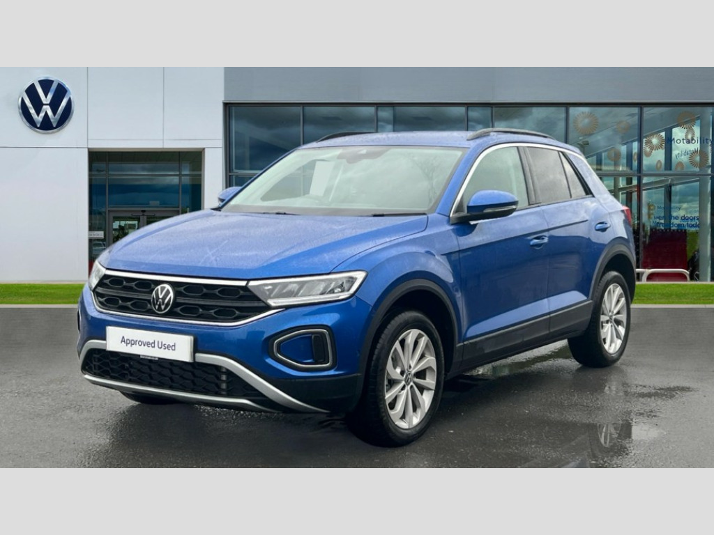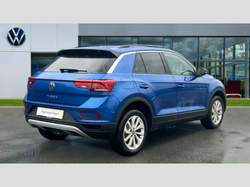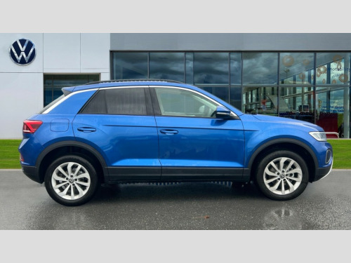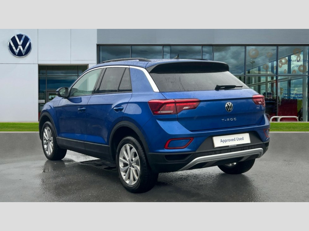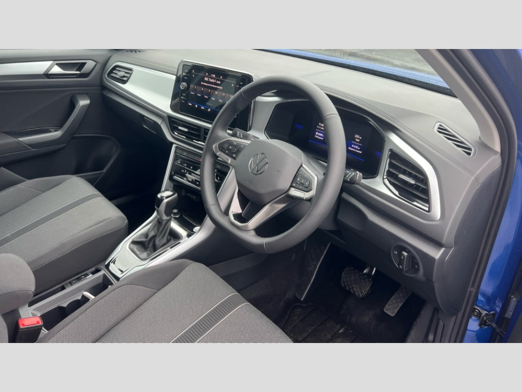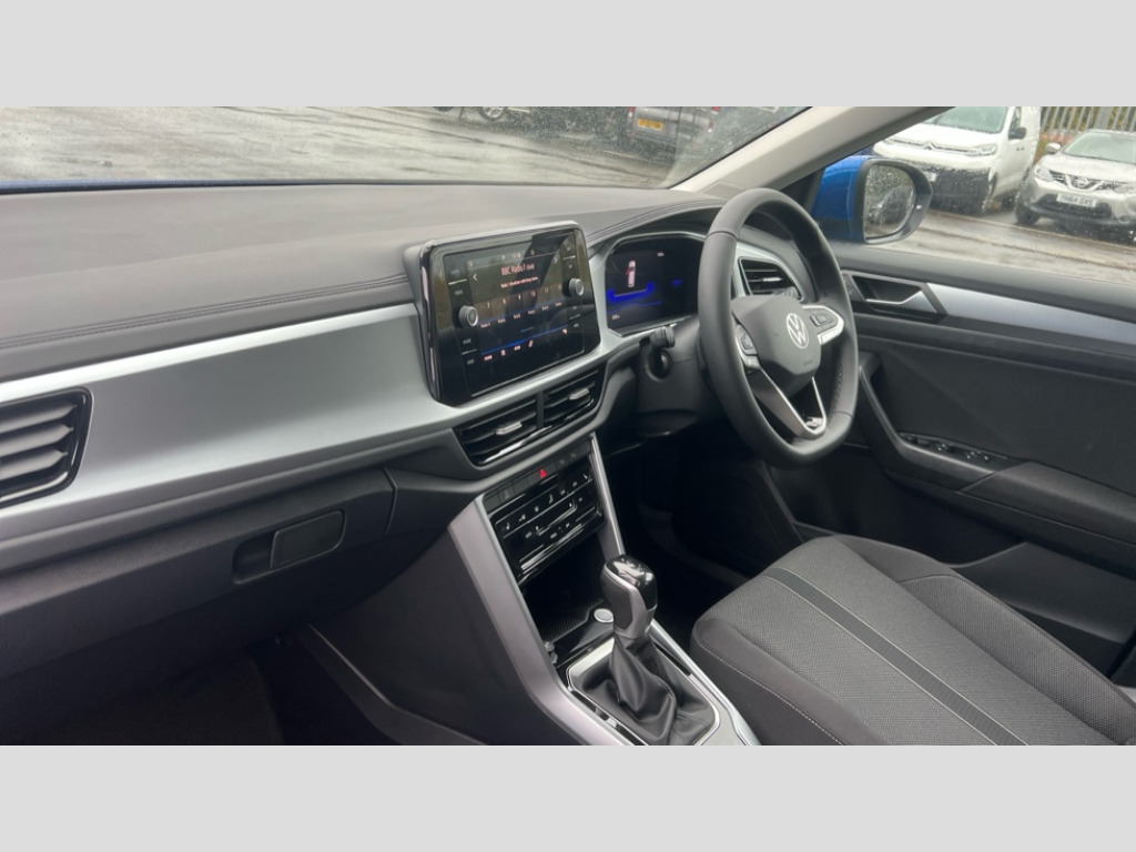 Volkswagen T-Roc 1.5 TSI Match 5dr DSG Advanced driver attention and drowsiness monitor, Dynamic road sign display, Emergency call service, Lane keeping system Lane Assist, Mobile phone interface, Modified key software - reduce switch off time for key status change to Long no motion, Online services, Park assist including front and rear parking sensors, Power assisted speed sensitive steering, Rear view camera, Service interval indicator, Tailgate/trunk lid release from outside, Think blue trainer driver tips and journey analysis, Warning sound and light for front seatbelts unfastened, Wireless app connect, Battery regeneration during braking, Front shock absorption, Rear shock absorption chassis with increased ride height, Start/stop function with battery regeneration, DAB Digital radio, Diversity antenna for FM reception, Music playback - MP3, WMA and AAC files, Premium USB cable in choice of either Apple or Android smartphone compatibility, SD card slot, Simultaneous pairing of 2 compatible mobile devices, Title and cover art display, We Connect and We Connect Plus functionality, Auto dimming interior rear view mirror, Automatic hazard lights activation under emergency braking, Automatic headlight control with LED separate daytime running lights with coming/leaving home function, Black roof rails, Body coloured bumpers and radiator grille with chrome trim and front fog lamps with chrome bezel, Body coloured exterior mirror housings and door handles, Electrically adjustable and heated door mirrors, Extended roof spoiler, Exterior mirrors aspherical on driver side, convex on front passenger side, External USB type C socket and charging sockets, Front windscreen wiper with intermittent wipe and 4 position delay, Heated rear window, LED 3rd brake light, LED rear combination lamps, LED rear number plate lights, Power windows with comfort operation and circuit breaker, Privacy glass for rear side windows and rear window, Rain sensor, Rear exhaust tailpipe, Rear fog light on one side and reversing lights on both sides, Rear side wing doors, Rear wash/wipe with intermittent wipe setting, Remote electrically foldable door mirrors, puddle lights and reverse activated passenger's door mirror, 12V power socket in centre console, 3 rear head restraints, 3 seat bench in 2nd row, 4 load lashing points in luggage compartment, Air care climatronic air conditoning system with active combination filter and 2-zone temperature control, Black stitching for floor mats, Ceramique roof liner, Cloth upholstery, Door and side trim panel in cloth, Drawer under drivers seat, Driver/front passenger seat height adjustment, Front centre armrest, Front comfort sports seats, Front cupholders x 2, Front reading light, Front seat back storage pockets, Glove compartment door with light, Instrument lighting, white adjustable panel illumination, Interior ambient lighting and surround lighting, Interior light delay, Isofix child seat preparation, Leather gearshift handle, Load-through provision with cup holder when folded down ('Unsplit rear seat bench, split folding backrest, with centre armrest), Luggage compartment lighting, Lumbar support for driver's and front passengers seat, Non-folding front passenger seat backrest, Single front passenger seat, Storage compartment in left and right luggage area, Storage compartment in rear doors, Storage compartments in driver and front passenger doors, Sunvisors with illuminated vanity mirrors, Variable boot floor, height adjustable and removable, Driver assistance pack without proactive passenger protection - T-Roc Life/Match, 3 point height adj front seatbelts + pretensioners, 3 point seatbelts in outer rear with ECE label, ABS, Child locks on rear doors, City emergency braking and pedestrian monitoring, Driver and front passenger airbag with front passenger airbag deactivation, Driver and front passenger safety-optimised head restraints, Drivers seatbelt reminder, Electronic parking brake, Electronic Stability Control (ESC) inc EDL (Electronic Differential Lock) and ASR (Traction Control), Front and rear passengers curtain airbag system including front side airbags, Front disc brakes, Hill start assist, Predictive pedestrian protection, Rear disc brakes, Two tone horn, Tyre pressure loss indicator, Volkswagen roadside assistance, Alarm with interior protection, Keyless locking and starting system keyless access with safelock, Pewter matt decorative inserts for intrument panel, centre console and door panels at the front, Trims for alloy wheels