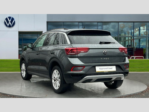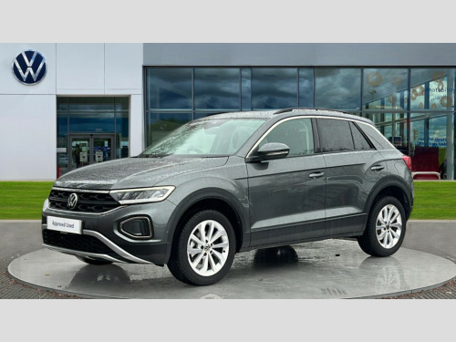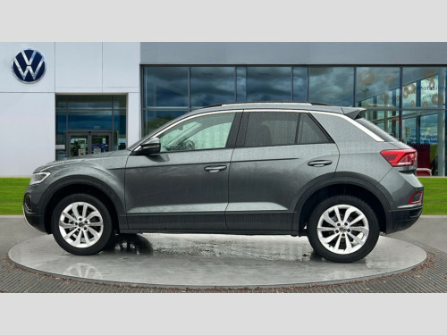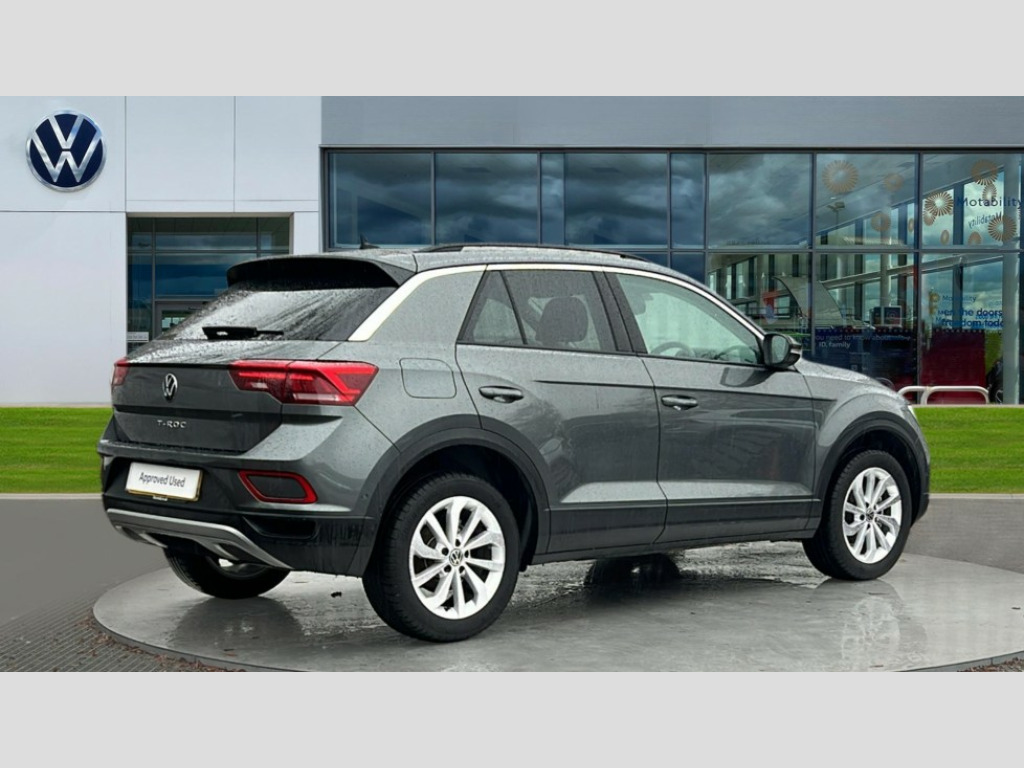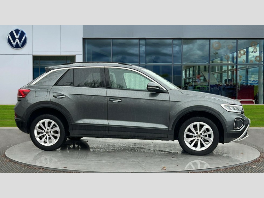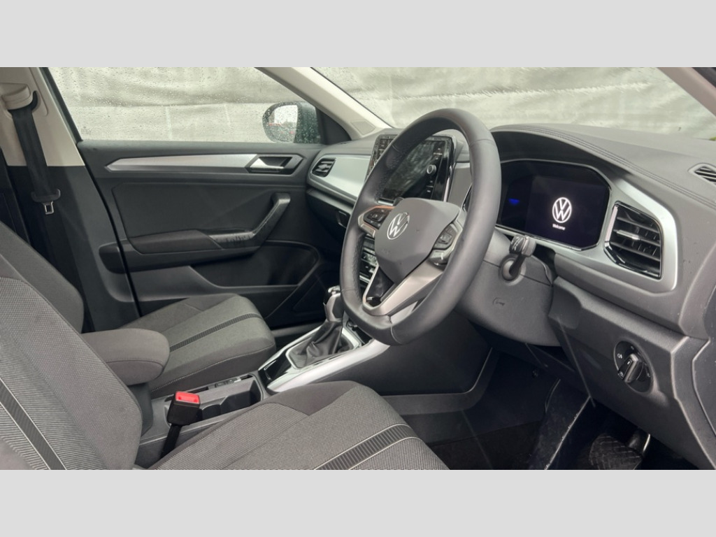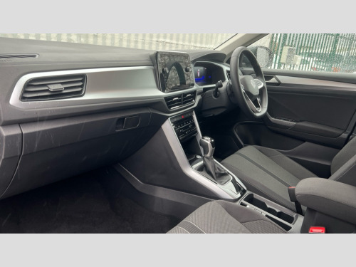 Volkswagen T-Roc 1.5 TSI Match 5dr DSG Advanced driver attention and drowsiness monitor, Dynamic road sign display, Emergency call service, Lane keeping system Lane Assist, Mobile phone interface, Modified key software - reduce switch off time for key status change to Long no motion, Online services, Park assist including front and rear parking sensors, Power assisted speed sensitive steering, Rear view camera, Service interval indicator, Tailgate/trunk lid release from outside, Think blue trainer driver tips and journey analysis, Warning sound and light for front seatbelts unfastened, Wireless app connect, Battery regeneration during braking, Front shock absorption, Rear shock absorption chassis with increased ride height, Start/stop function with battery regeneration, DAB Digital radio, Diversity antenna for FM reception, Front and rear 6 speakers, Music playback - MP3, WMA and AAC files, Premium USB cable in choice of either Apple or Android smartphone compatibility, SD card slot, Simultaneous pairing of 2 compatible mobile devices, Title and cover art display, We Connect and We Connect Plus functionality, Auto dimming interior rear view mirror, Automatic hazard lights activation under emergency braking, Automatic headlight control with LED separate daytime running lights with coming/leaving home function, Black roof rails, Body coloured bumpers and radiator grille with chrome trim and front fog lamps with chrome bezel, Body coloured exterior mirror housings and door handles, Electrically adjustable and heated door mirrors, Extended roof spoiler, Exterior mirrors aspherical on driver side, convex on front passenger side, External USB type C socket and charging sockets, Front windscreen wiper with intermittent wipe and 4 position delay, Heated rear window, LED 3rd brake light, LED rear combination lamps, LED rear number plate lights, Power windows with comfort operation and circuit breaker, Privacy glass for rear side windows and rear window, Rain sensor, Rear exhaust tailpipe, Rear fog light on one side and reversing lights on both sides, Rear side wing doors, Rear wash/wipe with intermittent wipe setting, Remote electrically foldable door mirrors, puddle lights and reverse activated passenger's door mirror, 12V power socket in centre console, 3 rear head restraints, 3 seat bench in 2nd row, 4 load lashing points in luggage compartment, Air care climatronic air conditoning system with active combination filter and 2-zone temperature control, Black stitching for floor mats, Ceramique roof liner, Cloth upholstery, Door and side trim panel in cloth, Drawer under drivers seat, Driver/front passenger seat height adjustment, Front centre armrest, Front comfort sports seats, Front cupholders x 2, Front reading light, Front seat back storage pockets, Glove compartment door with light, Instrument lighting, white adjustable panel illumination, Interior ambient lighting and surround lighting, Interior light delay, Isofix child seat preparation, Leather gearshift handle, Load-through provision with cup holder when folded down ('Unsplit rear seat bench, split folding backrest, with centre armrest), Luggage compartment lighting, Lumbar support for driver's and front passengers seat, Non-folding front passenger seat backrest, Single front passenger seat, Storage compartment in left and right luggage area, Storage compartment in rear doors, Storage compartments in driver and front passenger doors, Sunvisors with illuminated vanity mirrors, Variable boot floor, height adjustable and removable, Driver assistance pack without proactive passenger protection - T-Roc Life/Match, 3 point height adj front seatbelts + pretensioners, 3 point seatbelts in outer rear with ECE label, ABS, Child locks on rear doors, City emergency braking and pedestrian monitoring, Driver and front passenger airbag with front passenger airbag deactivation, Driver and front passenger safety-optimised head restraints, Drivers seatbelt reminder, Electronic parking brake, Electronic Stability Control (ESC) inc EDL (Electronic Differential Lock) and ASR (Traction Control), Front and rear passengers curtain airbag system including front side airbags, Front disc brakes, Hill start assist, Predictive pedestrian protection, Rear disc brakes, Two tone horn, Tyre pressure loss indicator, Volkswagen roadside assistance, Alarm with interior protection, Keyless locking and starting system keyless access with safelock, Pewter matt decorative inserts for intrument panel, centre console and door panels at the front, Trims for alloy wheels