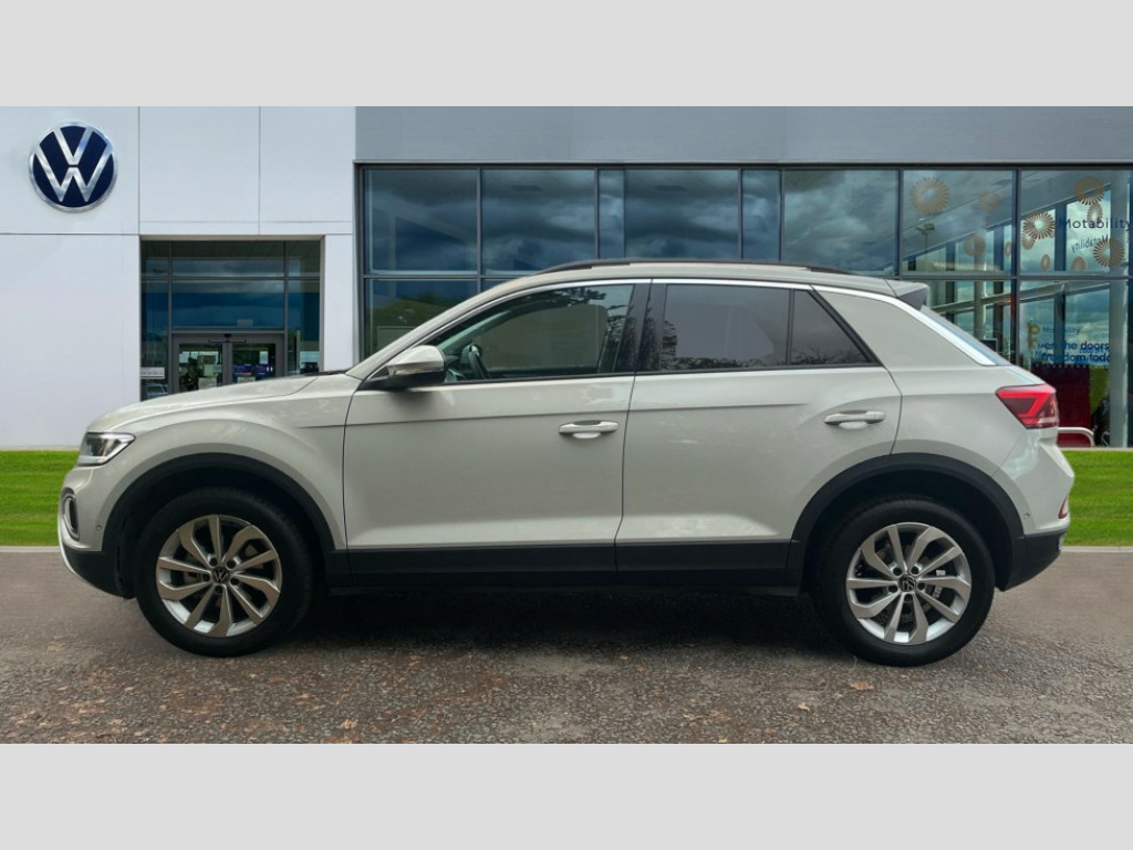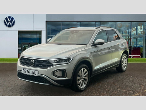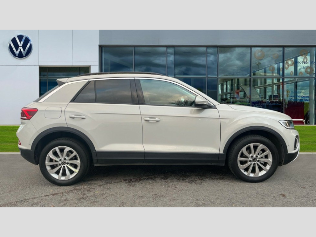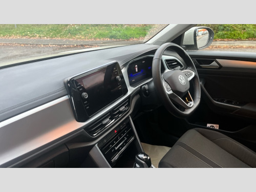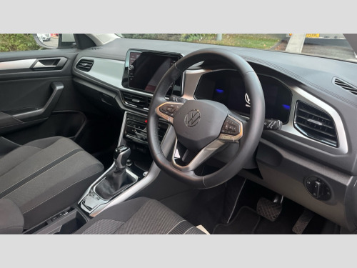 Volkswagen T-Roc 1.5 TSI Match 5dr DSG Advanced driver attention and drowsiness monitor, Dynamic road sign display, Emergency call service, Lane keeping system Lane Assist, Mobile phone interface, Modified key software - reduce switch off time for key status change to Long no motion, Online services, Park assist including front and rear parking sensors, Power assisted speed sensitive steering, Rear view camera, Service interval indicator, Tailgate/trunk lid release from outside, Think blue trainer driver tips and journey analysis, Warning sound and light for front seatbelts unfastened, Wireless app connect, Wireless Smartphone charger, Battery regeneration during braking, Front shock absorption, Rear shock absorption chassis with increased ride height, Start/stop function with battery regeneration, DAB Digital radio, Diversity antenna for FM reception, Front and rear 6 speakers, Music playback - MP3, WMA and AAC files, Premium USB cable in choice of either Apple or Android smartphone compatibility, SD card slot, Simultaneous pairing of 2 compatible mobile devices, Title and cover art display, We Connect and We Connect Plus functionality, Auto dimming interior rear view mirror, Automatic hazard lights activation under emergency braking, Automatic headlight control with LED separate daytime running lights with coming/leaving home function, Black roof rails, Body coloured bumpers and radiator grille with chrome trim and front fog lamps with chrome bezel, Body coloured exterior mirror housings and door handles, Electrically adjustable and heated door mirrors, Extended roof spoiler, Exterior mirrors aspherical on driver side, convex on front passenger side, External USB type C socket and charging sockets, Front windscreen wiper with intermittent wipe and 4 position delay, Heated rear window, LED 3rd brake light, LED rear combination lamps, LED rear number plate lights, Power windows with comfort operation and circuit breaker, Privacy glass for rear side windows and rear window, Rain sensor, Rear exhaust tailpipe, Rear fog light on one side and reversing lights on both sides, Rear side wing doors, Rear wash/wipe with intermittent wipe setting, Remote electrically foldable door mirrors, puddle lights and reverse activated passenger's door mirror, 12V power socket in centre console, 3 rear head restraints, 3 seat bench in 2nd row, 4 load lashing points in luggage compartment, Air care climatronic air conditoning system with active combination filter and 2-zone temperature control, Black stitching for floor mats, Ceramique roof liner, Cloth upholstery, Door and side trim panel in cloth, Drawer under drivers seat, Driver/front passenger seat height adjustment, Front centre armrest, Front comfort sports seats, Front cupholders x 2, Front reading light, Front seat back storage pockets, Glove compartment door with light, Instrument lighting, white adjustable panel illumination, Interior ambient lighting and surround lighting, Interior light delay, Isofix child seat preparation, Leather gearshift handle, Load-through provision with cup holder when folded down ('Unsplit rear seat bench, split folding backrest, with centre armrest), Luggage compartment lighting, Lumbar support for driver's and front passengers seat, Non-folding front passenger seat backrest, Single front passenger seat, Storage compartment in left and right luggage area, Storage compartment in rear doors, Storage compartments in driver and front passenger doors, Sunvisors with illuminated vanity mirrors, Variable boot floor, height adjustable and removable, Driver assistance pack without proactive passenger protection - T-Roc Life/Match, 3 point height adj front seatbelts + pretensioners, 3 point seatbelts in outer rear with ECE label, ABS, Child locks on rear doors, City emergency braking and pedestrian monitoring, Driver and front passenger airbag with front passenger airbag deactivation, Driver and front passenger safety-optimised head restraints, Drivers seatbelt reminder, Electronic parking brake, Electronic Stability Control (ESC) inc EDL (Electronic Differential Lock) and ASR (Traction Control), Front and rear passengers curtain airbag system including front side airbags, Front disc brakes, Hill start assist, Predictive pedestrian protection, Rear disc brakes, Two tone horn, Tyre pressure loss indicator, Volkswagen roadside assistance, Alarm with interior protection, Pewter matt decorative inserts for intrument panel, centre console and door panels at the front, Trims for alloy wheels