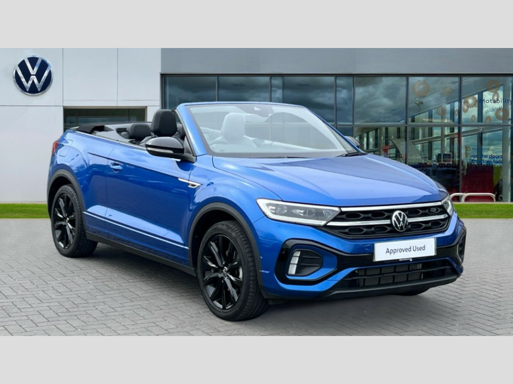 Volkswagen T-Roc 1.5 TSI R-Line 2dr DSG Adaptive cruise control and speed limiter, Bluetooth mobile phone interface, Brake pad wear indicator, Car information display, Digital Cockpit Pro with 10.25" Display, Driver alert system with fatigue detection, Driver tips and journey analysis, Emergency call service, Modified key software - reduce switch off time for key status change to Long no motion, Multifunction computer with visual gear change recommendation for fuel consumption, Multifunction front facing camera, Park assist including front and rear parking sensors, Speedo and rev counter, electronic odometer, trip, service interval display and exterior temperature gauge, Start/stop system with brake energy recovery, Tailgate/trunk lid release from outside, Warning sound and light for front seatbelts unfastened, Shock absorption in front, Diversity antenna for FM reception, Music playback - MP3, WMA and AAC files, SMS functionality - read, compose and send SMS messages using touch-screen display, Title and cover art display, USB-C Interface and USB charging socket, We Connect and We Connect Plus functionality, Ambient lighting with logo projection, Auto dimming interior rear view mirror, Automatic hazard lights activation under emergency braking, Automatic headlight control with LED separate daytime running lights with coming/leaving home function, Black roof, Body colour door handles, Body colour rear spoiler, Chrome effect left and right trapezoid exhaust tailpipe fascia surround, Chrome trim on upper and lower radiator grille, Dark red rear combination lamps in LED technology, Dusk sensor, Exterior mirrors aspherical on driver side, convex on front passenger side, Heat insulating glass windscreen, High level 3rd brake light, LED rear number plate lights, Power operated canvas convertible top, Power windows with comfort operation and circuit breaker, R-Line design body coloured bumpers, Rain sensor, Rear boot, Rear exhaust tailpipe, Rear fog light on one side and reversing lights on both sides, Remote electrically foldable door mirrors, puddle lights and reverse activated passenger door mirror, Volkswagen roundel, Windscreen wiper with intermittent wipe light, Without exterior ambient lighting, 12V socket in centre console storage area, 2 LED front reading lights, 2 seat bench in 2nd row, 50:50 Split folding rear seat backrests with fixed rear seat bench, Air care climatronic air conditoning system with active combination filter and 2-zone temperature control, Black door lower parts with chrome trim, Chrome plated surround to light, mirror and window switch, Door and side trim panel with leatherette insert, Easy entry backrest release, Front and rear carpet mats with black stitching, Front centre armrest, Front cupholders x 2, Front door pockets, Front seat back storage pockets, Front sports comfort seats with manual height adjustment, Heated leather wrapped multi function sports steering wheel with tiptronic, Height/reach adjust steering wheel, Inserts of front seats and outer rear seats in ArtVelours titan black, Instrument lighting, white adjustable panel illumination, Interior light delay, Interior light in footwell, Interior lighting with switch off delay and contact switches on all doors, Interior white ambient lighting and surround lighting, Isofix child seat preparation, Lockable glove compartment with light, Luggage compartment lighting, Power adjustable lumbar support in front, Rear head restraints, Single front passenger seat, Stainless steel pedals, Sun visors with illuminated vanity mirrors, Unique R Line door sill protectors, Driver assistance pack without proactive passenger protection - T-Roc Cabriolet DSG, Sports pack - T-Roc cabriolet, 2 x 3-point seatbelts/outer rear seats with ECE label, Driver and front passenger airbag with front passenger airbag deactivation, Driver and front passenger safety-optimised head restraints, Drivers seatbelt reminder, Electronic parking brake, Electronic Stability Control (ESC) including ABS, ASR and EDL, Front and rear disc brakes, Front assist with autonomous emergency braking, Pedestrian monitoring, Predictive pedestrian protection, Rigid safety cell with front and rear crumple zones, Side airbag/thorax airbag system, for front passengers, Single tone horn, Three point height adjust front seatbelts + pretensioners, Tyre pressure loss indicator, Volkswagen roadside assistance, Anti-theft alarm system with interior protection and central locking system with SAFELOCK, radio remote control and 2 remote control folding keys, Electronic engine immobiliser, Trims for alloy wheels