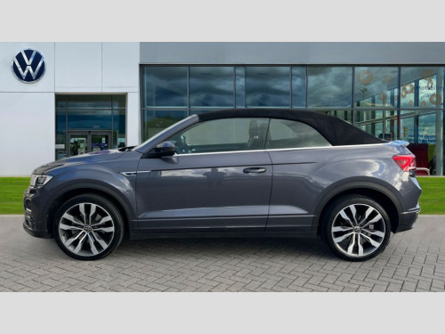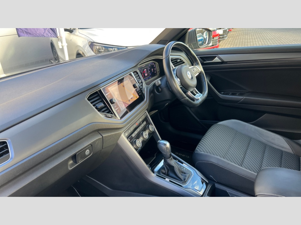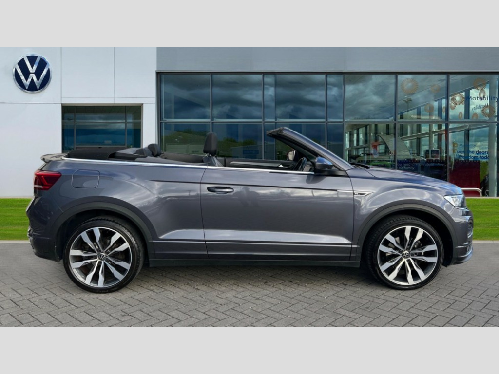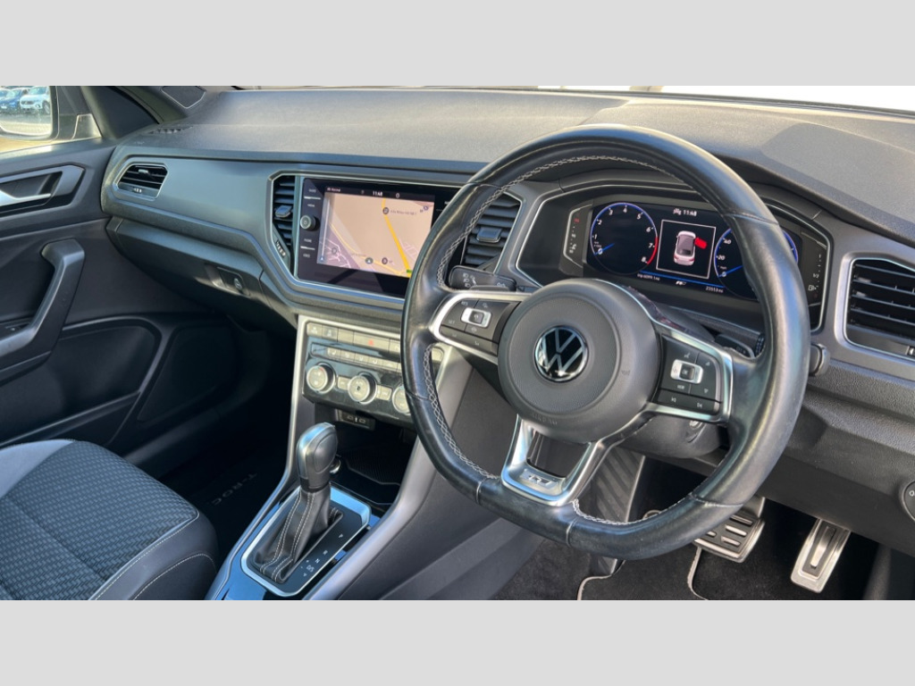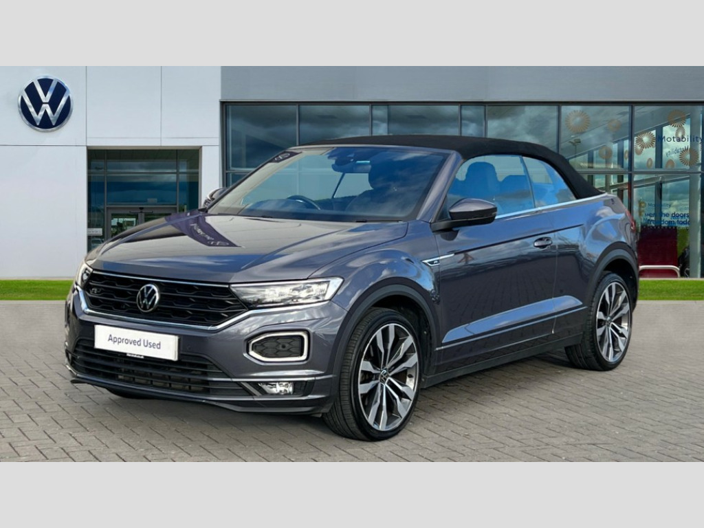 Volkswagen T-Roc 1.5 TSI R-Line 2dr DSG 8" colour touch screen, Active Info display 10.25" high resolution TFT dash display with customisable menu and information, Adaptive cruise control, Bluetooth telephone and audio connection for compatible devices, Brake pad wear indicator, Car information display, Car-Net Security and Service, Driver alert system with fatigue detection, Driver tips and journey analysis, Dynamic road sign display, Emergency call service, Lane assist with warning text instrument cluster, Mobile phone interface, Modified key software - reduce switch off time for key status change to Long no motion, Multifunction computer with visual gear change recommendation for fuel consumption, Navigation system discover media including streaming and internet, Online services, Progressive power assisted steering, Speedo and rev counter, electronic odometer, trip, service interval display, digital clock and fuel gauge, Start/stop system with brake energy recovery, Tailgate/trunk lid release from outside, Warning sound and light for front seatbelts unfastened, Wired and wireless app connect, Bluetooth - Simultaneous pairing of 2 compatible mobile devices, DAB Digital radio, Diversity antenna for FM reception, Music playback - MP3, WMA and AAC files, SMS functionality - read, compose and send SMS messages using touch-screen display, Title and cover art display, USB-C Interface and USB charging socket, WeConnect plus, Auto dimming interior rear view mirror, Automatic coming/leaving home lighting function and daytime running lights, Automatic hazard lights activation under emergency braking, Body colour rear roof spoiler, Body coloured exterior mirror housings and door handles, Chrome effect left and right trapezoid exhaust tailpipe fascia surround, Chrome trim on upper and lower radiator grille, Darkened LED tail lamp, Dusk sensor, Dynamic headlight range control with self adjusting whilst driving, Electrically power adjustable, heated, folding, auto dimming, front passenger exterior door mirror lowering function, Front and rear electric windows, Front fog lights with static cornering function, Heat insulating glass windscreen, High level 3rd brake light, LED darkened rear light clusters, LED headlamps with automatic range adjustment and unique signature LED separate daytime running lights, LED rear number plate lights, LED tail lamp rear comination lamps, Power operated canvas convertible top, R-Line design body coloured bumpers, Rain sensor, Rear exhaust tailpipe, Rear fog lamp, Volkswagen roundel, Windscreen wiper with intermittent wipe light, 12V socket in centre console storage area, 2 front reading lights, 3 spoke leather wrapped multifunction sport steering wheel, 50/50 rear seat bench split folding rear seat backrests, Activated charcoal canister for intensified evaporation system, Chrome plated surround to light, mirror and window switch, Climate control - 2 zone electronic air conditioning with automatic air recirculation and allergy filter, Door and side trim panel in foam film, insert in leatherette, Entry aid easy entry (Front folding seats), Front + rear carpet mats, Front centre armrest, Front cupholders x 2, Front seat back storage pockets, Front sports comfort seats with manual height adjustment, Glove Compartment with light, Height/reach adjust steering wheel, Illuminated vanity mirrors in sun visors with air bag label on sun visor and b-pillar, Instrument lighting, white adjustable panel illumination, Interior light delay, Interior light in footwell, Isofix easy fit child seat preparation for 2 outer rear seats, Luggage compartment lighting, Power adjustable lumbar support in front, Rear head restraints, Scuff plates in door apertures, Stainless steel pedals, Storage compartments in driver and front passenger doors, Unique R Line door sill protectors, White ambient lighting, 2 x 3-point rear seatbelts, ABS, Autonomous emergency braking, Driver and front passenger safety-optimised head restraints, Drivers and front passengers airbags with passengers deactivation switch, Drivers seatbelt reminder, Electronic parking brake with auto hold, Electronic stability control (ESC) includes ASR, EDL, EDTC and trailer stabilisation function, Front assist with city emergency braking and pedestrian monitoring, Pedestrian monitoring, Predictive pedestrian protection, Rigid safety cell with front and rear crumple zones, Side airbag/thorax airbag system, for front passengers, Single tone horn, Three point height adjust front seatbelts + pretensioners, Tyre pressure loss indicator, Tyre pressure monitor, Ventilated front and rear disc brakes, Volkswagen roadside assistance, Alarm with interior protection and deactivation via infotainment system, Electronic engine immobiliser, Shadow steel matt decorative inserts in dash and door panel