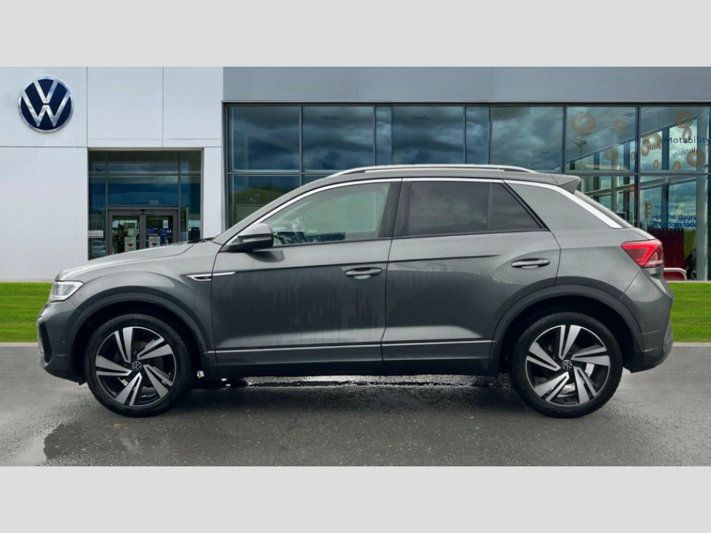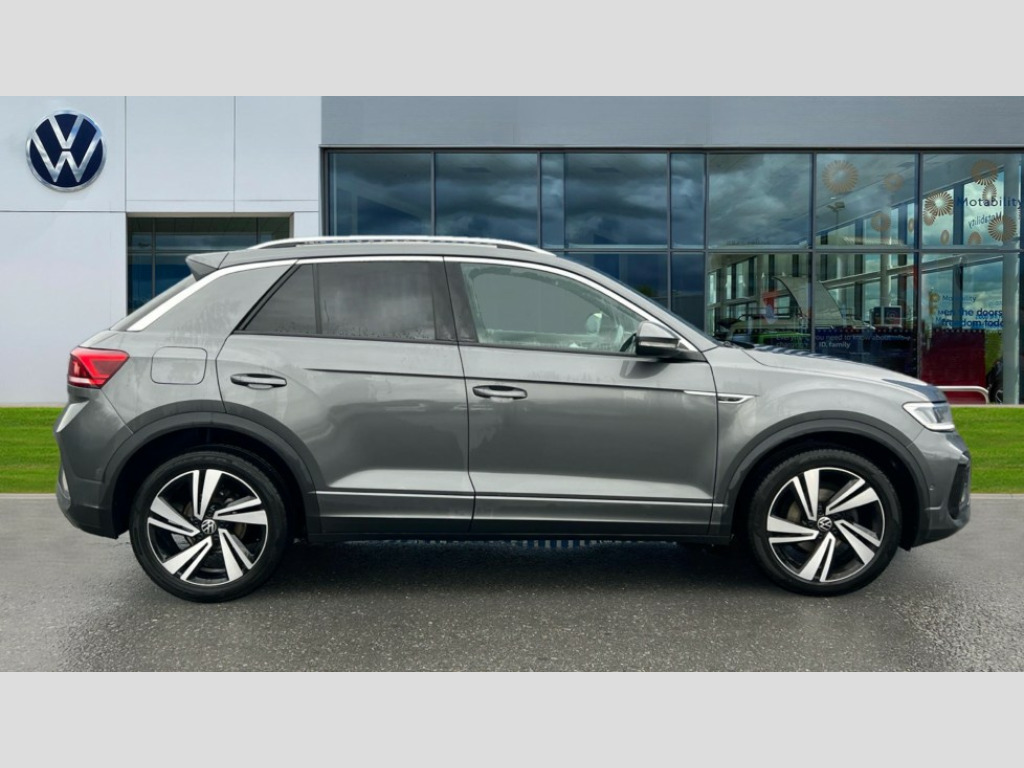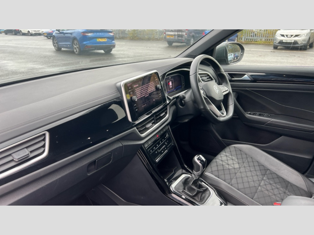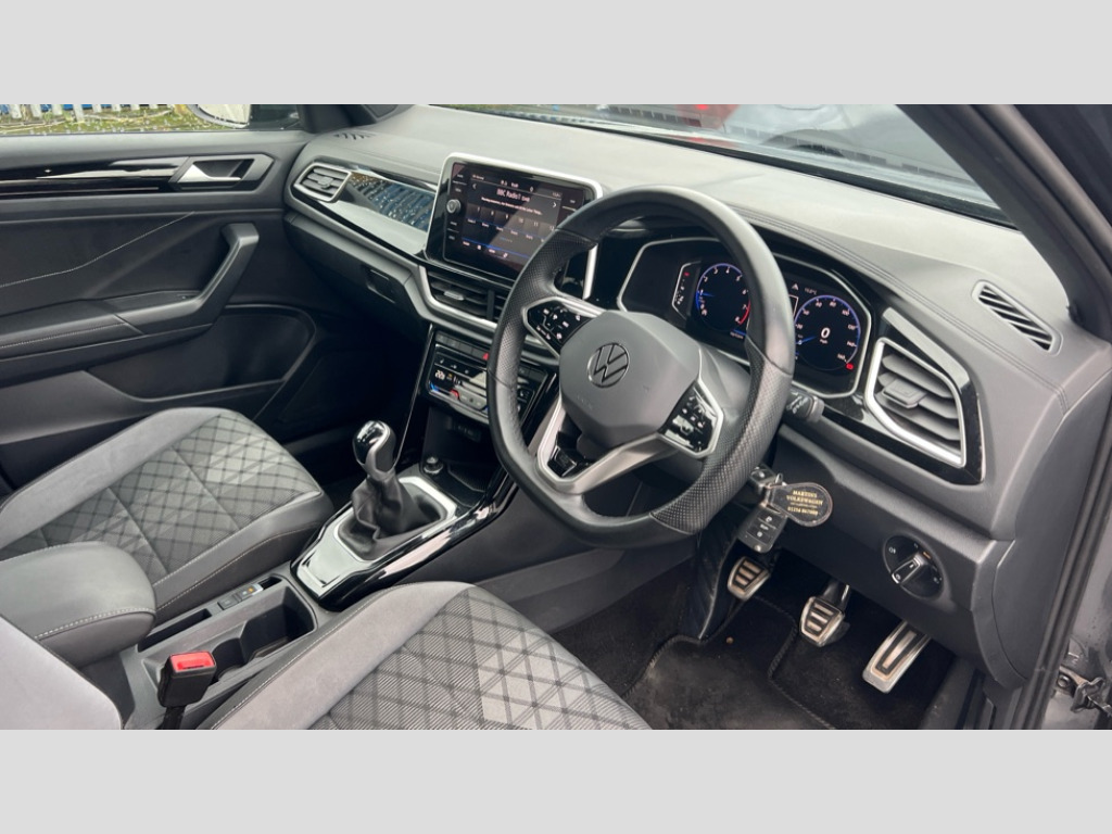 Volkswagen T-Roc 1.5 TSI R-Line 5dr 10.25" Digital cockpit pro, Bluetooth mobile phone interface, Driver alert system with fatigue detection, Driver tips and journey analysis, Emergency call service, Lane keeping system Lane Assist, Modified key software - reduce switch off time for key status change to Long no motion, Online services, Park assist including front and rear parking sensors, Service interval indicator, Tailgate/trunk lid release from outside, Think blue trainer driver tips and journey analysis, Warning sound and light for front seatbelts unfastened, Wireless app connect, Battery regeneration during braking, Start/stop function with battery regeneration, Diversity antenna for FM reception, Music playback - MP3, WMA and AAC files, Premium USB cable in choice of either Apple or Android smartphone compatibility, SD card slot, Simultaneous pairing of 2 compatible mobile devices, Title and cover art display, We Connect and We Connect Plus functionality, 3rd brake light, Auto dimming interior rear view mirror, Automatic hazard lights activation under emergency braking, Automatic headlight control with LED separate daytime running lights with coming/leaving home function, Extended roof spoiler, Exterior mirrors aspherical on driver side, convex on front passenger side, External USB type C socket and charging sockets, Front windscreen wiper with intermittent wipe and 4 position delay, Heated rear window, LED rear combination lamps, LED rear number plate lights, LED tail lamp rear comination lamps, Power windows with comfort operation and circuit breaker, R-Line design body coloured bumpers, Rain sensor, Rear exhaust tailpipe, Rear fog light on one side and reversing lights on both sides, Rear side wing doors, Rear wash/wipe with intermittent wipe setting, Remote electrically foldable door mirrors, puddle lights and reverse activated passenger's door mirror, 12V power socket in centre console, 3 rear head restraints, 3 seat bench in 2nd row, 4 load lashing points in luggage compartment, Air care climatronic air conditoning system with active combination filter and 2-zone temperature control, Black roof lining, Chrome plated radiator grille inserts, air vent surrounds and light switch surrounds, Door and side trim panel with leatherette insert, Drawer under drivers seat, Front + rear carpet mats, Front centre armrest, Front cupholders x 2, Front footwell illumination, Front reading light, Front scuff plates with R logo, Instrument lighting, white adjustable panel illumination, Interior ambient lighting and surround lighting, Interior light delay, Isofix child seat preparation, Leather gearshift handle, Load-through provision with cup holder when folded down ('Unsplit rear seat bench, split folding backrest, with centre armrest), Luggage compartment lighting, Single front passenger seat, Stainless steel pedals, Storage compartment in left and right luggage area, Storage compartment in rear doors, Storage compartments in driver and front passenger doors, Sunvisors with illuminated vanity mirrors, Variable boot floor, height adjustable and removable, Driver assistance pack without proactive passenger protection - T-Roc, 3 point height adj front seatbelts + pretensioners, 3 point seatbelts in outer rear with ECE label, ABS, Child locks on rear doors, Driver and front passenger airbag with front passenger airbag deactivation, Driver and front passenger safety-optimised head restraints, Drivers seatbelt reminder, Electronic parking brake, Electronic Stability Control (ESC) inc EDL (Electronic Differential Lock) and ASR (Traction Control), Front and rear passengers curtain airbag system including front side airbags, Front assist with city emergency braking and pedestrian monitoring, Front seat side impact airbags, Hill start assist, Predictive pedestrian protection, Rear disc brakes, Single tone horn, Tyre pressure loss indicator, Volkswagen roadside assistance, Anti-theft alarm system with interior monitoring, backup horn, and towing protection, Remote central locking with SAFELOCK, radio remote control with 2 remote control folding keys, Trims for alloy wheels