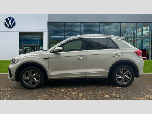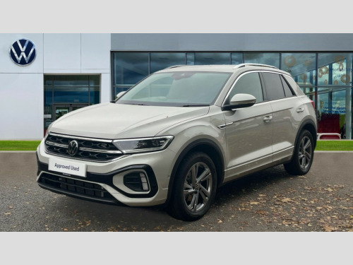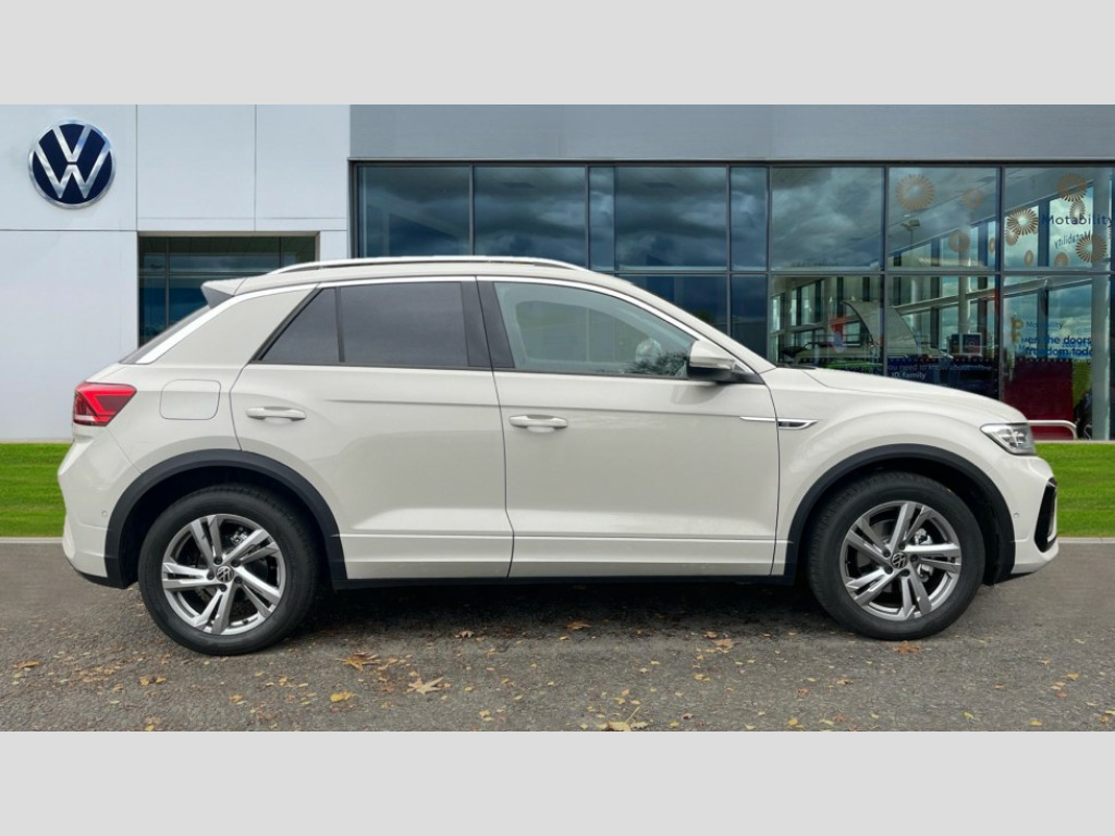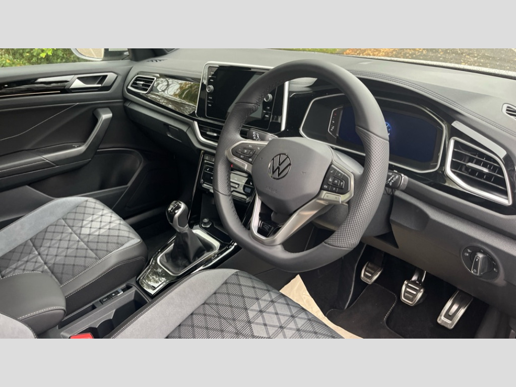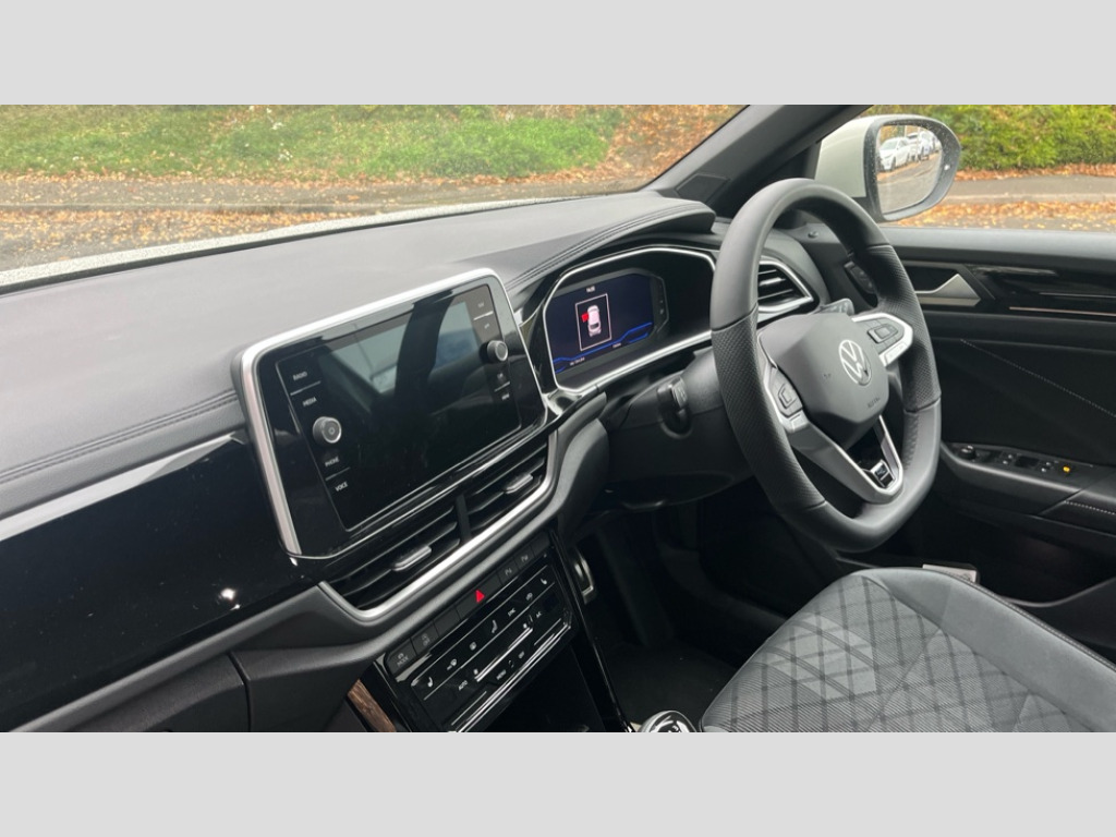 Volkswagen T-Roc 1.5 TSI R-Line 5dr 10.25" Digital cockpit pro, Advanced driver attention and drowsiness monitor, Emergency call service, Lane keeping system Lane Assist, Mobile phone interface, Modified key software - reduce switch off time for key status change to Long no motion, Online services, Park assist including front and rear parking sensors, Service interval indicator, Tailgate/trunk lid release from outside, Think blue trainer driver tips and journey analysis, Warning sound and light for front seatbelts unfastened, Wireless app connect, Battery regeneration during braking, Start/stop function with battery regeneration, DAB Digital radio, Diversity antenna for FM reception, Front and rear 6 speakers, Music playback - MP3, WMA and AAC files, Premium USB cable in choice of either Apple or Android smartphone compatibility, SD card slot, Simultaneous pairing of 2 compatible mobile devices, Title and cover art display, We Connect and We Connect Plus functionality, Auto dimming interior rear view mirror, Automatic hazard lights activation under emergency braking, Automatic headlight control with LED separate daytime running lights with coming/leaving home function, Body coloured exterior mirror housings and door handles, Electrically adjustable and heated door mirrors, Extended roof spoiler, Exterior mirrors aspherical on driver side, convex on front passenger side, External USB type C socket and charging sockets, Front windscreen wiper with intermittent wipe and 4 position delay, Heated rear window, LED 3rd brake light, LED rear combination lamps, LED rear number plate lights, Power windows with comfort operation and circuit breaker, Privacy glass for rear side windows and rear window, R-Line design body coloured bumpers, Rain sensor, Rear exhaust tailpipe, Rear fog light on one side and reversing lights on both sides, Rear side wing doors, Rear wash/wipe with intermittent wipe setting, Remote electrically foldable door mirrors, puddle lights and reverse activated passenger's door mirror, 12V power socket in centre console, 3 rear head restraints, 3 seat bench in 2nd row, 4 load lashing points in luggage compartment, Air care climatronic air conditoning system with active combination filter and 2-zone temperature control, Black roof lining, Chrome plated decorative trims, Chrome plated radiator grille inserts, air vent surrounds and light switch surrounds, Door and side trim panel with leatherette insert, Front + rear carpet mats, Front centre armrest, Front cupholders x 2, Front footwell illumination, Front reading light, Front scuff plates with R Line logo, Front seat back storage pockets, Glove compartment door with light, Instrument lighting, white adjustable panel illumination, Interior ambient lighting and surround lighting, Interior light delay, Isofix child seat preparation, Leather gearshift handle, Load-through provision with cup holder when folded down ('Unsplit rear seat bench, split folding backrest, with centre armrest), Luggage compartment lighting, Single front passenger seat, Stainless steel pedals, Storage compartment in left and right luggage area, Storage compartment in rear doors, Storage compartments in driver and front passenger doors, Sunvisors with illuminated vanity mirrors, Variable boot floor, height adjustable and removable, Driver assistance pack without proactive passenger protection - T-Roc, 3 point height adj front seatbelts + pretensioners, 3 point seatbelts in outer rear with ECE label, ABS, Child locks on rear doors, City emergency braking and pedestrian monitoring, Driver and front passenger airbag with front passenger airbag deactivation, Driver and front passenger safety-optimised head restraints, Drivers seatbelt reminder, Electronic parking brake, Electronic Stability Control (ESC) inc EDL (Electronic Differential Lock) and ASR (Traction Control), Front and rear passengers curtain airbag system including front side airbags, Hill start assist, Predictive pedestrian protection, Rear disc brakes, Two tone horn, Tyre pressure loss indicator, Volkswagen roadside assistance, Piano black decorative inserts in dashboard and front door trim panels, Trims for alloy wheels