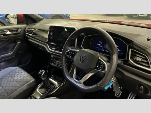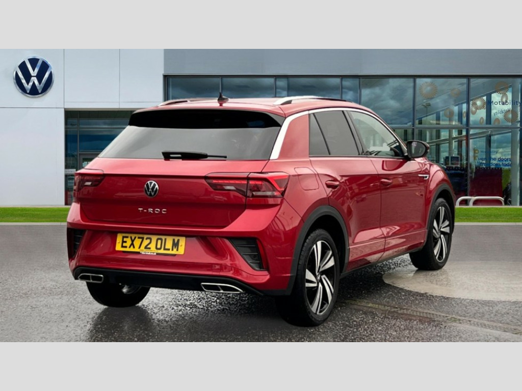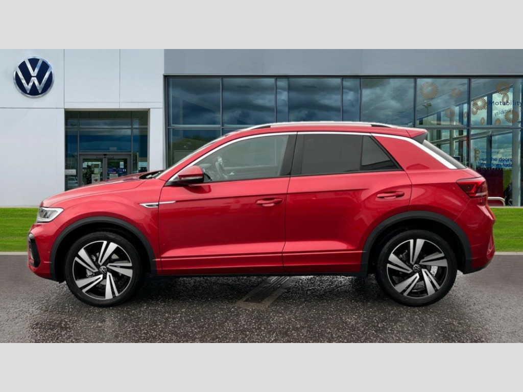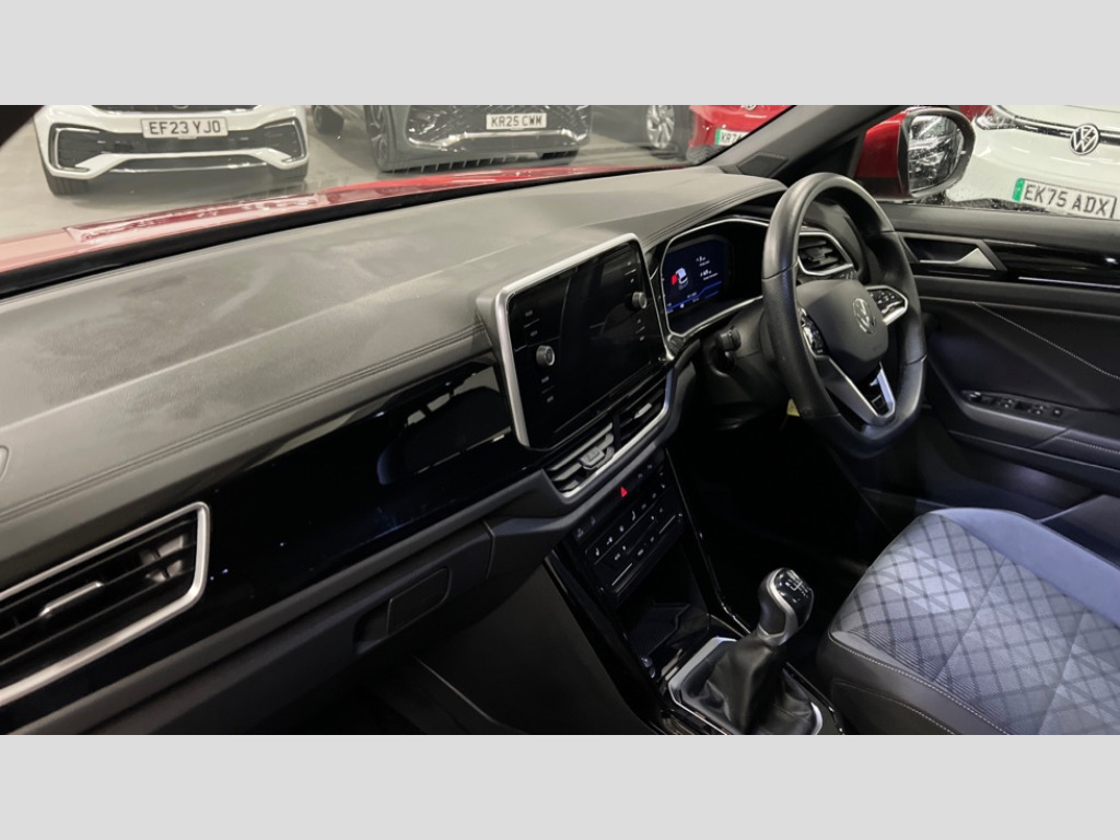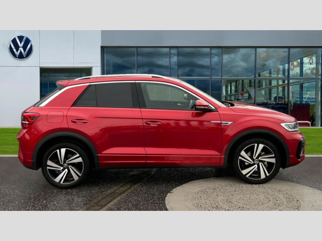 Volkswagen T-Roc 1.5 TSI R-Line 5dr 10.25" Digital cockpit pro, Bluetooth mobile phone interface, Driver alert system with fatigue detection, Driver tips and journey analysis, Emergency call service, Lane keeping system Lane Assist, Modified key software - reduce switch off time for key status change to Long no motion, Online services, Park assist including front and rear parking sensors, Service interval indicator, Tailgate/trunk lid release from outside, Think blue trainer driver tips and journey analysis, Warning sound and light for front seatbelts unfastened, Wireless app connect, Battery regeneration during braking, Start/stop function with battery regeneration, Diversity antenna for FM reception, Front and rear 6 speakers, Music playback - MP3, WMA and AAC files, Premium USB cable in choice of either Apple or Android smartphone compatibility, SD card slot, Simultaneous pairing of 2 compatible mobile devices, Title and cover art display, We Connect and We Connect Plus functionality, 3rd brake light, Auto dimming interior rear view mirror, Automatic hazard lights activation under emergency braking, Automatic headlight control with LED separate daytime running lights with coming/leaving home function, Extended roof spoiler, Exterior mirrors aspherical on driver side, convex on front passenger side, External USB type C socket and charging sockets, Front windscreen wiper with intermittent wipe and 4 position delay, Heated rear window, LED Plus headlamps, LED rear combination lamps, LED rear number plate lights, LED tail lamp rear comination lamps, Power windows with comfort operation and circuit breaker, R-Line design body coloured bumpers, Rain sensor, Rear exhaust tailpipe, Rear fog light on one side and reversing lights on both sides, Rear side wing doors, Rear wash/wipe with intermittent wipe setting, Remote electrically foldable door mirrors, puddle lights and reverse activated passenger's door mirror, 12V power socket in centre console, 3 rear head restraints, 3 seat bench in 2nd row, 4 load lashing points in luggage compartment, Air care climatronic air conditoning system with active combination filter and 2-zone temperature control, Black roof lining, Chrome plated radiator grille inserts, air vent surrounds and light switch surrounds, Door and side trim panel with leatherette insert, Drawer under drivers seat, Front + rear carpet mats, Front centre armrest, Front cupholders x 2, Front footwell illumination, Front reading light, Front scuff plates with R logo, Instrument lighting, white adjustable panel illumination, Interior ambient lighting and surround lighting, Interior light delay, Isofix child seat preparation, Leather gearshift handle, Load-through provision with cup holder when folded down ('Unsplit rear seat bench, split folding backrest, with centre armrest), Luggage compartment lighting, Single front passenger seat, Stainless steel pedals, Storage compartment in left and right luggage area, Storage compartment in rear doors, Storage compartments in driver and front passenger doors, Sunvisors with illuminated vanity mirrors, Variable boot floor, height adjustable and removable, Driver assistance pack without proactive passenger protection - T-Roc, 3 point height adj front seatbelts + pretensioners, 3 point seatbelts in outer rear with ECE label, ABS, Child locks on rear doors, Driver and front passenger airbag with front passenger airbag deactivation, Driver and front passenger safety-optimised head restraints, Drivers seatbelt reminder, Electronic parking brake, Electronic Stability Control (ESC) inc EDL (Electronic Differential Lock) and ASR (Traction Control), Front and rear passengers curtain airbag system including front side airbags, Front assist with city emergency braking and pedestrian monitoring, Front seat side impact airbags, Hill start assist, Predictive pedestrian protection, Rear disc brakes, Single tone horn, Tyre pressure loss indicator, Volkswagen roadside assistance, Alarm with interior protection, Anti-theft alarm system with interior monitoring, backup horn, and towing protection, Remote central locking with SAFELOCK, radio remote control with 2 remote control folding keys, Trims for alloy wheels