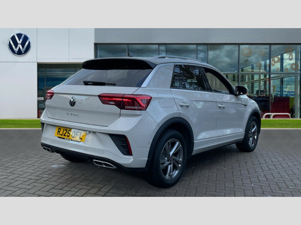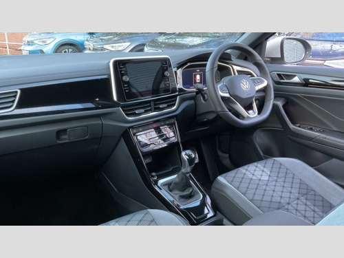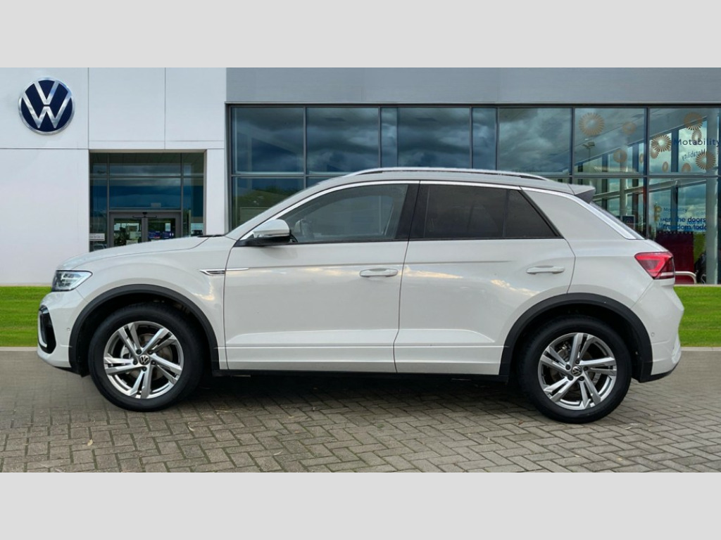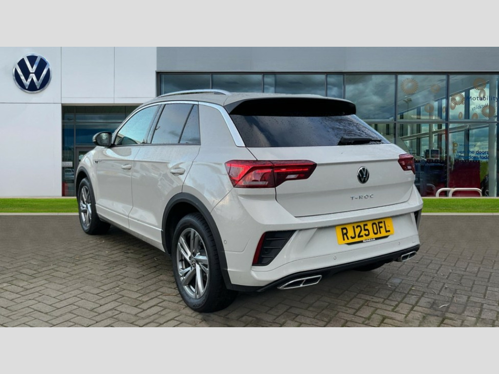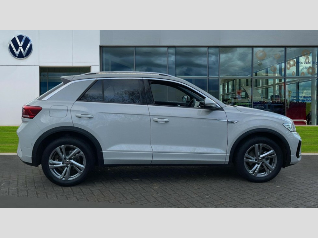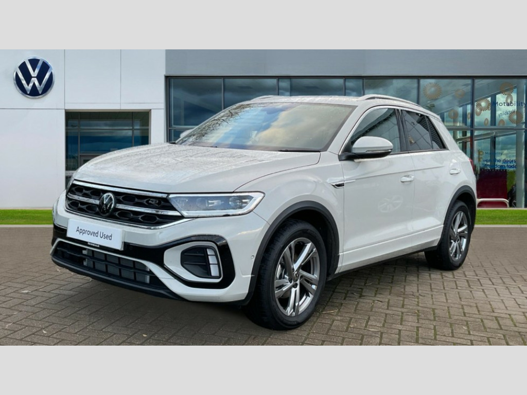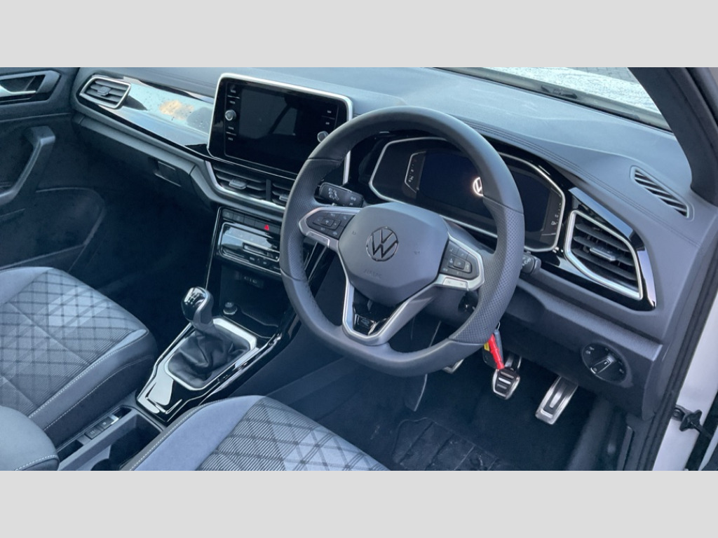 Volkswagen T-Roc 1.5 TSI R-Line 5dr 10.25" Digital cockpit pro, Advanced driver attention and drowsiness monitor, Emergency call service, Lane keeping system Lane Assist, Mobile phone interface, Modified key software - reduce switch off time for key status change to Long no motion, Online services, Park assist including front and rear parking sensors, Service interval indicator, Tailgate/trunk lid release from outside, Think blue trainer driver tips and journey analysis, Warning sound and light for front seatbelts unfastened, Wireless app connect, Battery regeneration during braking, Start/stop function with battery regeneration, DAB Digital radio, Diversity antenna for FM reception, Front and rear 6 speakers, Music playback - MP3, WMA and AAC files, Premium USB cable in choice of either Apple or Android smartphone compatibility, SD card slot, Simultaneous pairing of 2 compatible mobile devices, Title and cover art display, We Connect and We Connect Plus functionality, Auto dimming interior rear view mirror, Automatic hazard lights activation under emergency braking, Automatic headlight control with LED separate daytime running lights with coming/leaving home function, Body coloured exterior mirror housings and door handles, Electrically adjustable and heated door mirrors, Extended roof spoiler, Exterior mirrors aspherical on driver side, convex on front passenger side, External USB type C socket and charging sockets, Front windscreen wiper with intermittent wipe and 4 position delay, Heated rear window, LED 3rd brake light, LED rear combination lamps, LED rear number plate lights, Power windows with comfort operation and circuit breaker, Privacy glass for rear side windows and rear window, R-Line design body coloured bumpers, Rain sensor, Rear exhaust tailpipe, Rear fog light on one side and reversing lights on both sides, Rear side wing doors, Rear wash/wipe with intermittent wipe setting, Remote electrically foldable door mirrors, puddle lights and reverse activated passenger's door mirror, 12V power socket in centre console, 3 rear head restraints, 3 seat bench in 2nd row, 4 load lashing points in luggage compartment, Air care climatronic air conditoning system with active combination filter and 2-zone temperature control, Black roof lining, Chrome plated decorative trims, Chrome plated radiator grille inserts, air vent surrounds and light switch surrounds, Door and side trim panel with leatherette insert, Front + rear carpet mats, Front centre armrest, Front cupholders x 2, Front footwell illumination, Front reading light, Front scuff plates with R Line logo, Front seat back storage pockets, Glove compartment door with light, Instrument lighting, white adjustable panel illumination, Interior ambient lighting and surround lighting, Interior light delay, Isofix child seat preparation, Leather gearshift handle, Load-through provision with cup holder when folded down ('Unsplit rear seat bench, split folding backrest, with centre armrest), Luggage compartment lighting, Single front passenger seat, Stainless steel pedals, Storage compartment in left and right luggage area, Storage compartment in rear doors, Storage compartments in driver and front passenger doors, Sunvisors with illuminated vanity mirrors, Variable boot floor, height adjustable and removable, Driver assistance pack without proactive passenger protection - T-Roc, 3 point height adj front seatbelts + pretensioners, 3 point seatbelts in outer rear with ECE label, ABS, Child locks on rear doors, City emergency braking and pedestrian monitoring, Driver and front passenger airbag with front passenger airbag deactivation, Driver and front passenger safety-optimised head restraints, Drivers seatbelt reminder, Electronic parking brake, Electronic Stability Control (ESC) inc EDL (Electronic Differential Lock) and ASR (Traction Control), Front and rear passengers curtain airbag system including front side airbags, Hill start assist, Predictive pedestrian protection, Rear disc brakes, Two tone horn, Tyre pressure loss indicator, Volkswagen roadside assistance, Piano black decorative inserts in dashboard and front door trim panels, Trims for alloy wheels