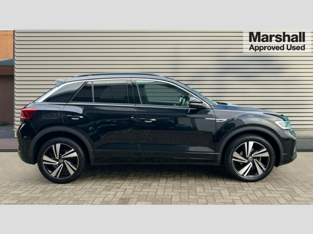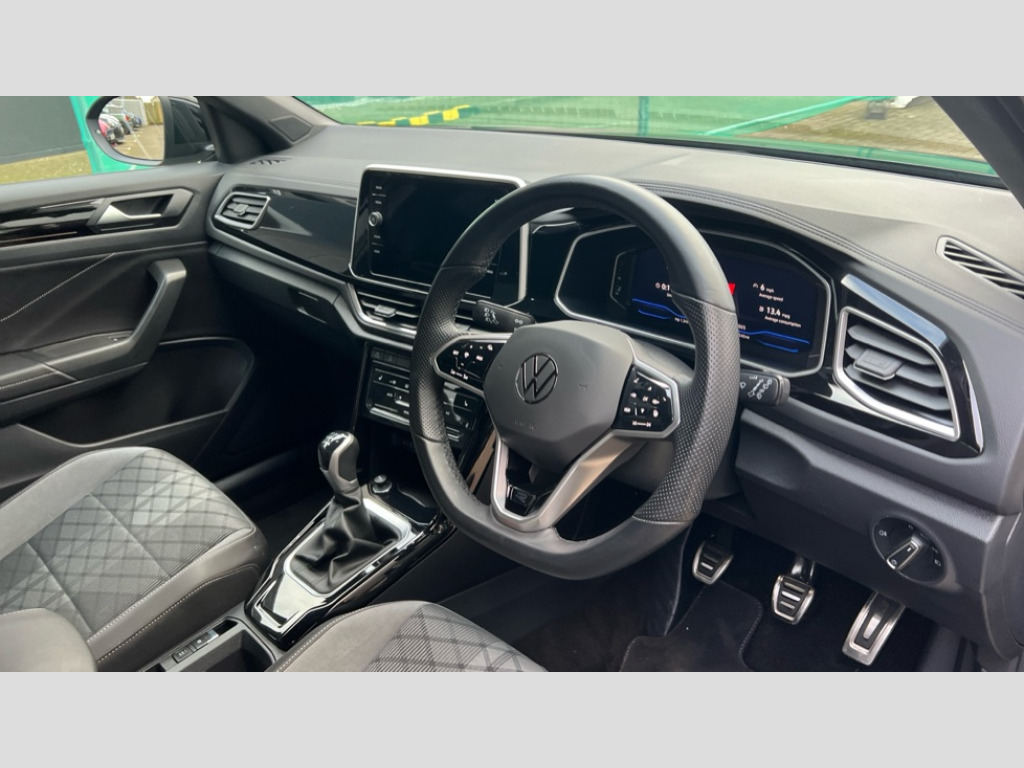 Volkswagen T-Roc 1.5 TSI R-Line 5dr 10.25" Digital cockpit pro, Bluetooth mobile phone interface, Driver alert system with fatigue detection, Driver tips and journey analysis, Emergency call service, Lane keeping system Lane Assist, Modified key software - reduce switch off time for key status change to Long no motion, Online services, Park assist including front and rear parking sensors, Service interval indicator, Tailgate/trunk lid release from outside, Think blue trainer driver tips and journey analysis, Warning sound and light for front seatbelts unfastened, Wireless app connect, Battery regeneration during braking, Start/stop function with battery regeneration, Diversity antenna for FM reception, Front and rear 6 speakers, Music playback - MP3, WMA and AAC files, Premium USB cable in choice of either Apple or Android smartphone compatibility, SD card slot, Simultaneous pairing of 2 compatible mobile devices, Title and cover art display, We Connect and We Connect Plus functionality, 3rd brake light, Auto dimming interior rear view mirror, Automatic hazard lights activation under emergency braking, Automatic headlight control with LED separate daytime running lights with coming/leaving home function, Extended roof spoiler, Exterior mirrors aspherical on driver side, convex on front passenger side, External USB type C socket and charging sockets, Front windscreen wiper with intermittent wipe and 4 position delay, Heated rear window, LED Plus headlamps, LED rear combination lamps, LED rear number plate lights, LED tail lamp rear comination lamps, Power windows with comfort operation and circuit breaker, R-Line design body coloured bumpers, Rain sensor, Rear exhaust tailpipe, Rear fog light on one side and reversing lights on both sides, Rear side wing doors, Rear wash/wipe with intermittent wipe setting, Remote electrically foldable door mirrors, puddle lights and reverse activated passenger's door mirror, 12V power socket in centre console, 3 rear head restraints, 3 seat bench in 2nd row, 4 load lashing points in luggage compartment, Air care climatronic air conditoning system with active combination filter and 2-zone temperature control, Black roof lining, Chrome plated radiator grille inserts, air vent surrounds and light switch surrounds, Door and side trim panel with leatherette insert, Drawer under drivers seat, Front + rear carpet mats, Front centre armrest, Front cupholders x 2, Front footwell illumination, Front reading light, Front scuff plates with R logo, Instrument lighting, white adjustable panel illumination, Interior ambient lighting and surround lighting, Interior light delay, Isofix child seat preparation, Leather gearshift handle, Load-through provision with cup holder when folded down ('Unsplit rear seat bench, split folding backrest, with centre armrest), Luggage compartment lighting, Single front passenger seat, Stainless steel pedals, Storage compartment in left and right luggage area, Storage compartment in rear doors, Storage compartments in driver and front passenger doors, Sunvisors with illuminated vanity mirrors, Variable boot floor, height adjustable and removable, Driver assistance pack without proactive passenger protection - T-Roc, 3 point height adj front seatbelts + pretensioners, 3 point seatbelts in outer rear with ECE label, ABS, Child locks on rear doors, Driver and front passenger airbag with front passenger airbag deactivation, Driver and front passenger safety-optimised head restraints, Drivers seatbelt reminder, Electronic parking brake, Electronic Stability Control (ESC) inc EDL (Electronic Differential Lock) and ASR (Traction Control), Front and rear passengers curtain airbag system including front side airbags, Front assist with city emergency braking and pedestrian monitoring, Front seat side impact airbags, Hill start assist, Predictive pedestrian protection, Rear disc brakes, Single tone horn, Tyre pressure loss indicator, Volkswagen roadside assistance, Alarm with interior protection, Anti-theft alarm system with interior monitoring, backup horn, and towing protection, Remote central locking with SAFELOCK, radio remote control with 2 remote control folding keys, Trims for alloy wheels