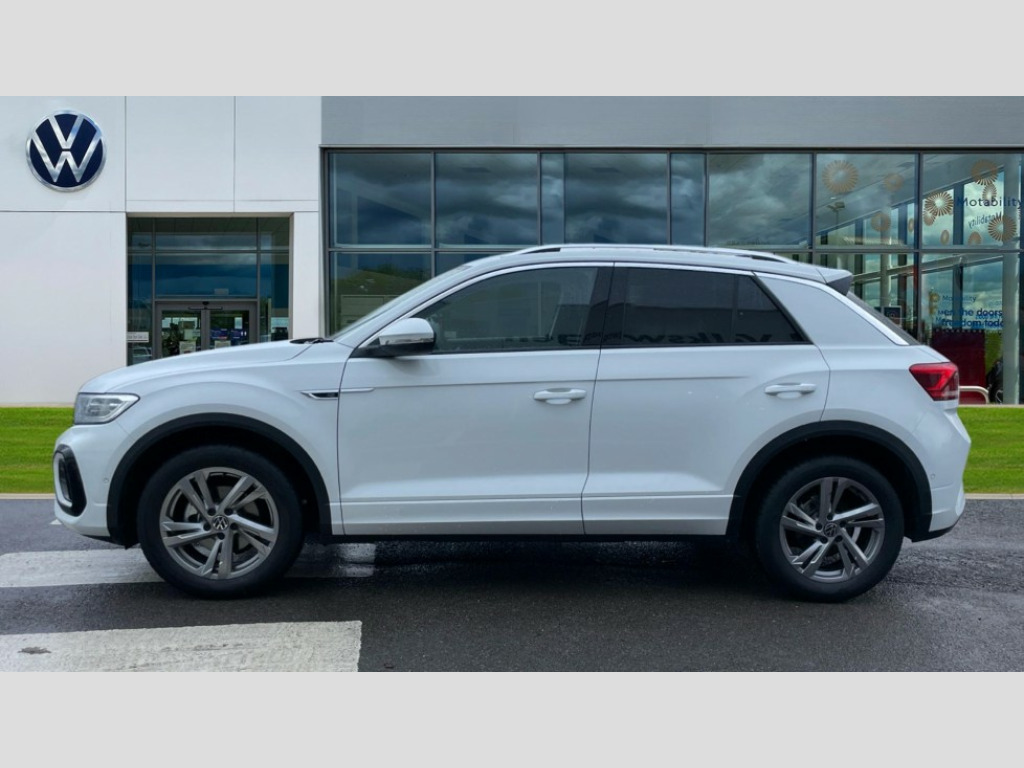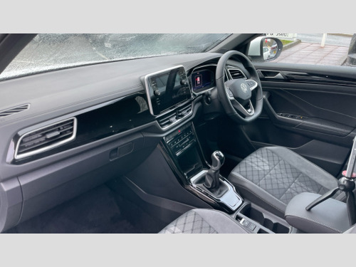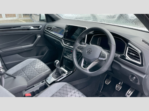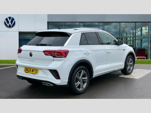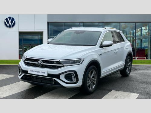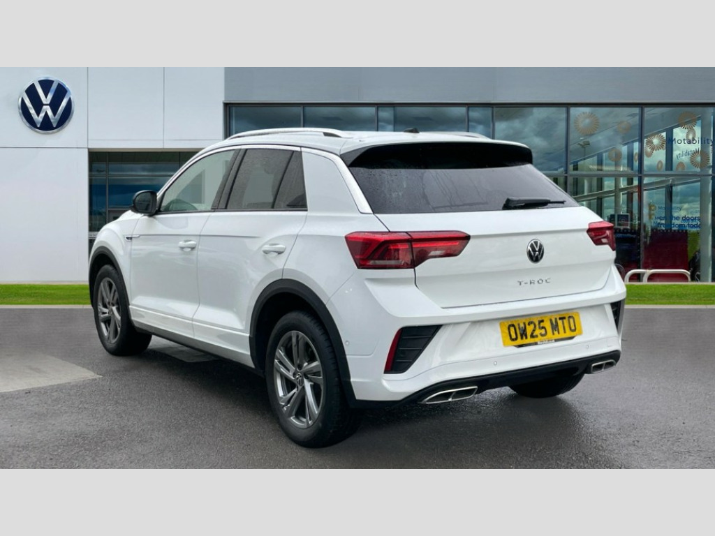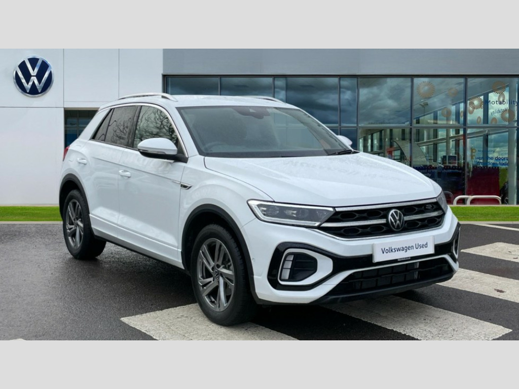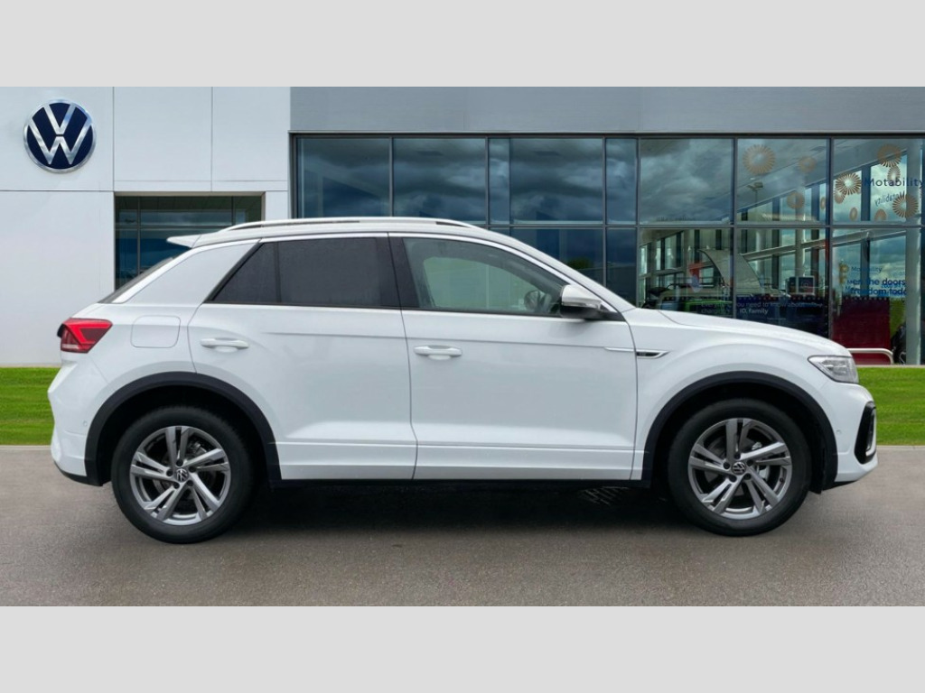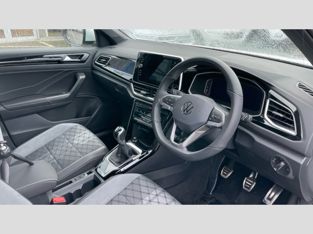 Volkswagen T-Roc 1.5 TSI R-Line 5dr 10.25" Digital cockpit pro, Advanced driver attention and drowsiness monitor, Emergency call service, Lane keeping system Lane Assist, Mobile phone interface, Modified key software - reduce switch off time for key status change to Long no motion, Online services, Park assist including front and rear parking sensors, Service interval indicator, Tailgate/trunk lid release from outside, Think blue trainer driver tips and journey analysis, Warning sound and light for front seatbelts unfastened, Wireless app connect, Battery regeneration during braking, Start/stop function with battery regeneration, DAB Digital radio, Diversity antenna for FM reception, Front and rear 6 speakers, Music playback - MP3, WMA and AAC files, Premium USB cable in choice of either Apple or Android smartphone compatibility, SD card slot, Simultaneous pairing of 2 compatible mobile devices, Title and cover art display, We Connect and We Connect Plus functionality, Auto dimming interior rear view mirror, Automatic hazard lights activation under emergency braking, Automatic headlight control with LED separate daytime running lights with coming/leaving home function, Body coloured exterior mirror housings and door handles, Electrically adjustable and heated door mirrors, Extended roof spoiler, Exterior mirrors aspherical on driver side, convex on front passenger side, External USB type C socket and charging sockets, Front windscreen wiper with intermittent wipe and 4 position delay, Heated rear window, LED 3rd brake light, LED rear combination lamps, LED rear number plate lights, Power windows with comfort operation and circuit breaker, Privacy glass for rear side windows and rear window, R-Line design body coloured bumpers, Rain sensor, Rear exhaust tailpipe, Rear fog light on one side and reversing lights on both sides, Rear side wing doors, Rear wash/wipe with intermittent wipe setting, Remote electrically foldable door mirrors, puddle lights and reverse activated passenger's door mirror, 12V power socket in centre console, 3 rear head restraints, 3 seat bench in 2nd row, 4 load lashing points in luggage compartment, Air care climatronic air conditoning system with active combination filter and 2-zone temperature control, Black roof lining, Chrome plated decorative trims, Chrome plated radiator grille inserts, air vent surrounds and light switch surrounds, Door and side trim panel with leatherette insert, Front + rear carpet mats, Front centre armrest, Front cupholders x 2, Front footwell illumination, Front reading light, Front scuff plates with R Line logo, Front seat back storage pockets, Glove compartment door with light, Instrument lighting, white adjustable panel illumination, Interior ambient lighting and surround lighting, Interior light delay, Isofix child seat preparation, Leather gearshift handle, Load-through provision with cup holder when folded down ('Unsplit rear seat bench, split folding backrest, with centre armrest), Luggage compartment lighting, Single front passenger seat, Stainless steel pedals, Storage compartment in left and right luggage area, Storage compartment in rear doors, Storage compartments in driver and front passenger doors, Sunvisors with illuminated vanity mirrors, Variable boot floor, height adjustable and removable, Driver assistance pack without proactive passenger protection - T-Roc, 3 point height adj front seatbelts + pretensioners, 3 point seatbelts in outer rear with ECE label, ABS, Child locks on rear doors, City emergency braking and pedestrian monitoring, Driver and front passenger airbag with front passenger airbag deactivation, Driver and front passenger safety-optimised head restraints, Drivers seatbelt reminder, Electronic parking brake, Electronic Stability Control (ESC) inc EDL (Electronic Differential Lock) and ASR (Traction Control), Front and rear passengers curtain airbag system including front side airbags, Hill start assist, Predictive pedestrian protection, Rear disc brakes, Two tone horn, Tyre pressure loss indicator, Volkswagen roadside assistance, Piano black decorative inserts in dashboard and front door trim panels, Trims for alloy wheels