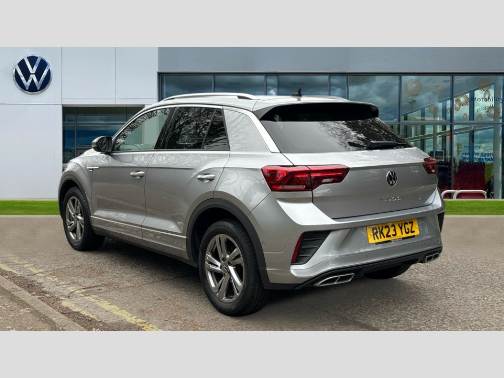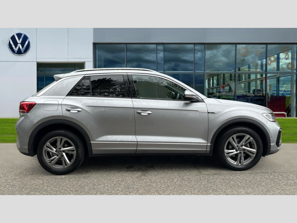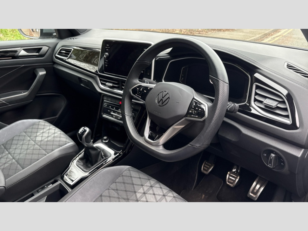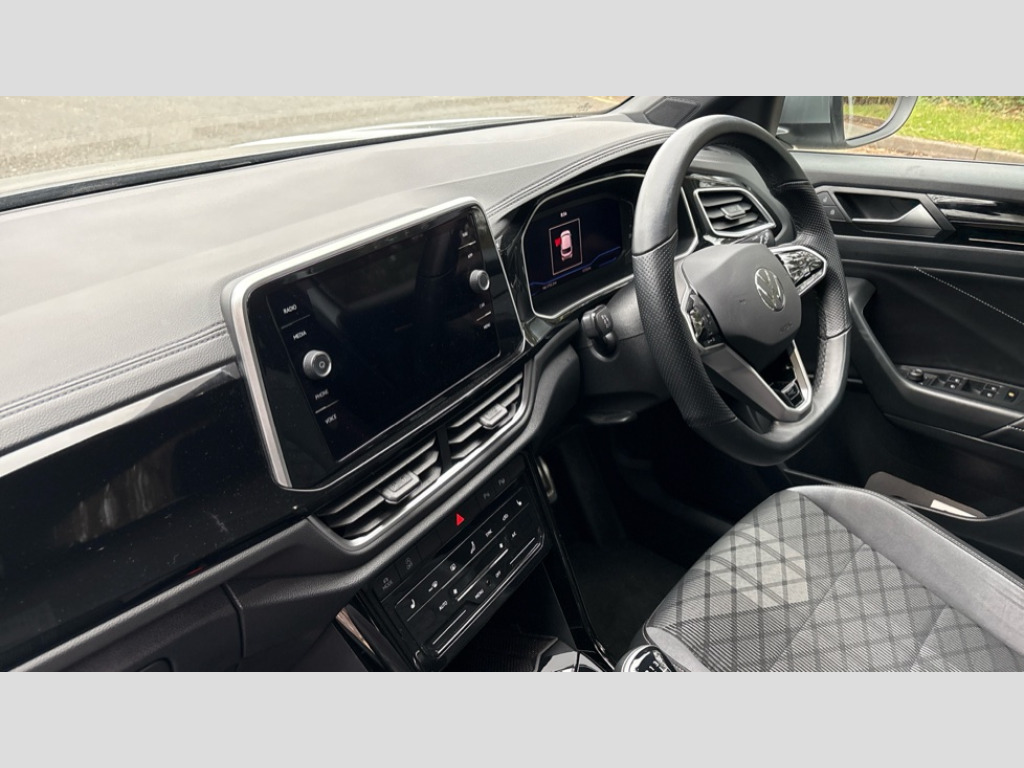 Volkswagen T-Roc 1.5 TSI R-Line 5dr 10.25" Digital cockpit pro, Bluetooth mobile phone interface, Driver alert system with fatigue detection, Driver tips and journey analysis, Emergency call service, Lane keeping system Lane Assist, Modified key software - reduce switch off time for key status change to Long no motion, Online services, Park assist including front and rear parking sensors, Service interval indicator, Tailgate/trunk lid release from outside, Think blue trainer driver tips and journey analysis, Warning sound and light for front seatbelts unfastened, Wireless app connect, Battery regeneration during braking, Start/stop function with battery regeneration, Diversity antenna for FM reception, Front and rear 6 speakers, Music playback - MP3, WMA and AAC files, Premium USB cable in choice of either Apple or Android smartphone compatibility, SD card slot, Simultaneous pairing of 2 compatible mobile devices, Title and cover art display, We Connect and We Connect Plus functionality, 3rd brake light, Auto dimming interior rear view mirror, Automatic hazard lights activation under emergency braking, Automatic headlight control with LED separate daytime running lights with coming/leaving home function, Extended roof spoiler, Exterior mirrors aspherical on driver side, convex on front passenger side, External USB type C socket and charging sockets, Front windscreen wiper with intermittent wipe and 4 position delay, Heated rear window, LED Plus headlamps, LED rear combination lamps, LED rear number plate lights, LED tail lamp rear comination lamps, Power windows with comfort operation and circuit breaker, R-Line design body coloured bumpers, Rain sensor, Rear exhaust tailpipe, Rear fog light on one side and reversing lights on both sides, Rear side wing doors, Rear wash/wipe with intermittent wipe setting, Remote electrically foldable door mirrors, puddle lights and reverse activated passenger's door mirror, 12V power socket in centre console, 3 rear head restraints, 3 seat bench in 2nd row, 4 load lashing points in luggage compartment, Air care climatronic air conditoning system with active combination filter and 2-zone temperature control, Black roof lining, Chrome plated radiator grille inserts, air vent surrounds and light switch surrounds, Door and side trim panel with leatherette insert, Drawer under drivers seat, Front + rear carpet mats, Front centre armrest, Front cupholders x 2, Front footwell illumination, Front reading light, Front scuff plates with R logo, Instrument lighting, white adjustable panel illumination, Interior ambient lighting and surround lighting, Interior light delay, Isofix child seat preparation, Leather gearshift handle, Load-through provision with cup holder when folded down ('Unsplit rear seat bench, split folding backrest, with centre armrest), Luggage compartment lighting, Single front passenger seat, Stainless steel pedals, Storage compartment in left and right luggage area, Storage compartment in rear doors, Storage compartments in driver and front passenger doors, Sunvisors with illuminated vanity mirrors, Variable boot floor, height adjustable and removable, Driver assistance pack without proactive passenger protection - T-Roc, 3 point height adj front seatbelts + pretensioners, 3 point seatbelts in outer rear with ECE label, ABS, Child locks on rear doors, Driver and front passenger airbag with front passenger airbag deactivation, Driver and front passenger safety-optimised head restraints, Drivers seatbelt reminder, Electronic parking brake, Electronic Stability Control (ESC) inc EDL (Electronic Differential Lock) and ASR (Traction Control), Front and rear passengers curtain airbag system including front side airbags, Front assist with city emergency braking and pedestrian monitoring, Front seat side impact airbags, Hill start assist, Predictive pedestrian protection, Rear disc brakes, Single tone horn, Tyre pressure loss indicator, Volkswagen roadside assistance, Alarm with interior protection, Anti-theft alarm system with interior monitoring, backup horn, and towing protection, Remote central locking with SAFELOCK, radio remote control with 2 remote control folding keys, Trims for alloy wheels