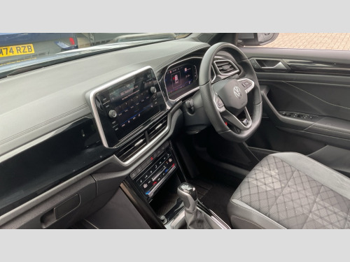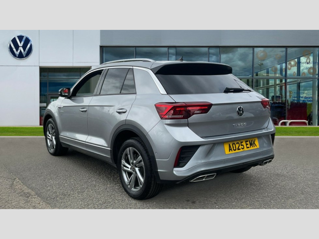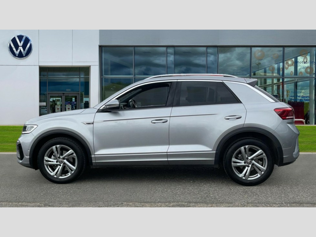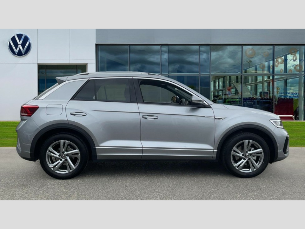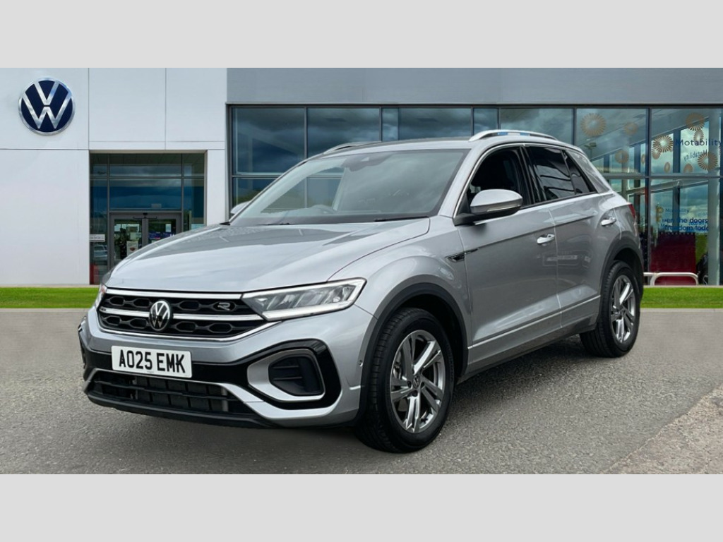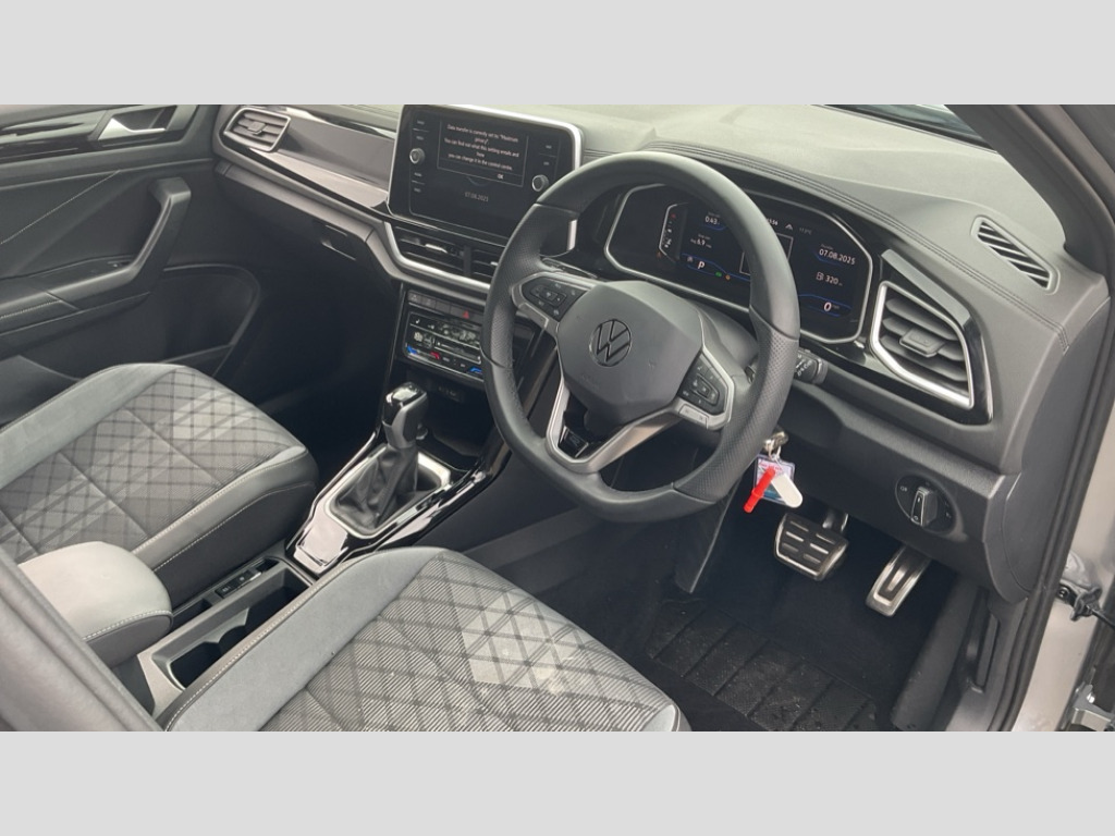 Volkswagen T-Roc 1.5 TSI R-Line 5dr DSG 10.25" Digital cockpit pro, Advanced driver attention and drowsiness monitor, Emergency call service, Lane keeping system Lane Assist, Mobile phone interface, Modified key software - reduce switch off time for key status change to Long no motion, Online services, Park assist including front and rear parking sensors, Service interval indicator, Tailgate/trunk lid release from outside, Think blue trainer driver tips and journey analysis, Warning sound and light for front seatbelts unfastened, Wireless app connect, Battery regeneration during braking, Start/stop function with battery regeneration, DAB Digital radio, Diversity antenna for FM reception, Front and rear 6 speakers, Music playback - MP3, WMA and AAC files, Premium USB cable in choice of either Apple or Android smartphone compatibility, SD card slot, Simultaneous pairing of 2 compatible mobile devices, Title and cover art display, We Connect and We Connect Plus functionality, Auto dimming interior rear view mirror, Automatic hazard lights activation under emergency braking, Automatic headlight control with LED separate daytime running lights with coming/leaving home function, Body coloured exterior mirror housings and door handles, Electrically adjustable and heated door mirrors, Extended roof spoiler, Exterior mirrors aspherical on driver side, convex on front passenger side, External USB type C socket and charging sockets, Front windscreen wiper with intermittent wipe and 4 position delay, Heated rear window, LED 3rd brake light, LED rear combination lamps, LED rear number plate lights, Power windows with comfort operation and circuit breaker, Privacy glass for rear side windows and rear window, R-Line design body coloured bumpers, Rain sensor, Rear exhaust tailpipe, Rear fog light on one side and reversing lights on both sides, Rear side wing doors, Rear wash/wipe with intermittent wipe setting, Remote electrically foldable door mirrors, puddle lights and reverse activated passenger's door mirror, 12V power socket in centre console, 3 rear head restraints, 3 seat bench in 2nd row, 4 load lashing points in luggage compartment, Air care climatronic air conditoning system with active combination filter and 2-zone temperature control, Black roof lining, Chrome plated decorative trims, Chrome plated radiator grille inserts, air vent surrounds and light switch surrounds, Door and side trim panel with leatherette insert, Front + rear carpet mats, Front centre armrest, Front cupholders x 2, Front footwell illumination, Front reading light, Front scuff plates with R Line logo, Front seat back storage pockets, Glove compartment door with light, Instrument lighting, white adjustable panel illumination, Interior ambient lighting and surround lighting, Interior light delay, Isofix child seat preparation, Leather gearshift handle, Load-through provision with cup holder when folded down ('Unsplit rear seat bench, split folding backrest, with centre armrest), Luggage compartment lighting, Single front passenger seat, Stainless steel pedals, Storage compartment in left and right luggage area, Storage compartment in rear doors, Storage compartments in driver and front passenger doors, Sunvisors with illuminated vanity mirrors, Variable boot floor, height adjustable and removable, Driver assistance pack without proactive passenger protection - T-Roc, 3 point height adj front seatbelts + pretensioners, 3 point seatbelts in outer rear with ECE label, ABS, Child locks on rear doors, City emergency braking and pedestrian monitoring, Driver and front passenger airbag with front passenger airbag deactivation, Driver and front passenger safety-optimised head restraints, Drivers seatbelt reminder, Electronic parking brake, Electronic Stability Control (ESC) inc EDL (Electronic Differential Lock) and ASR (Traction Control), Front and rear passengers curtain airbag system including front side airbags, Hill start assist, Predictive pedestrian protection, Rear disc brakes, Two tone horn, Tyre pressure loss indicator, Volkswagen roadside assistance, Piano black decorative inserts in dashboard and front door trim panels, Trims for alloy wheels