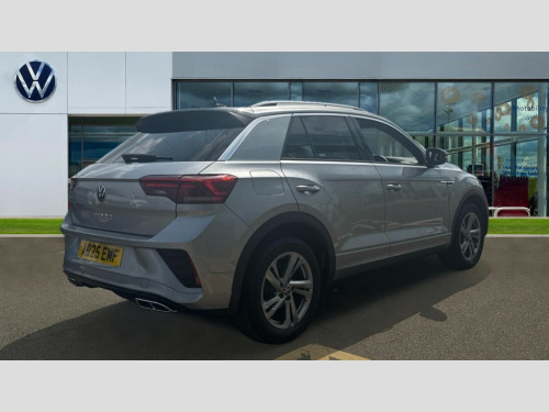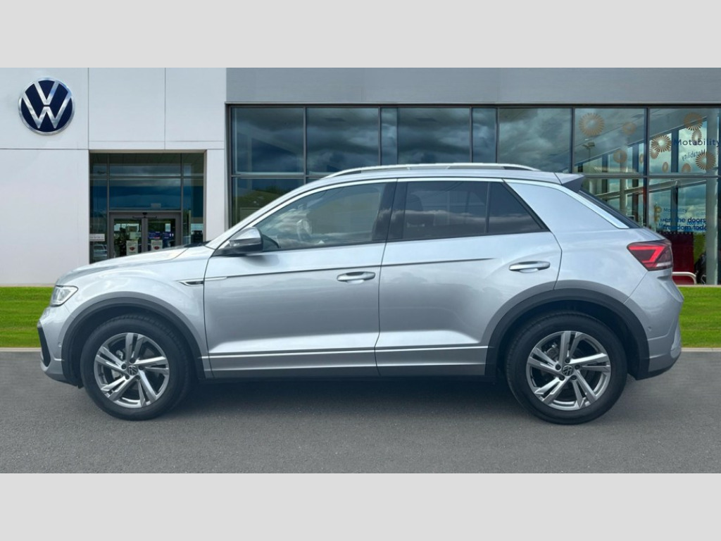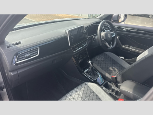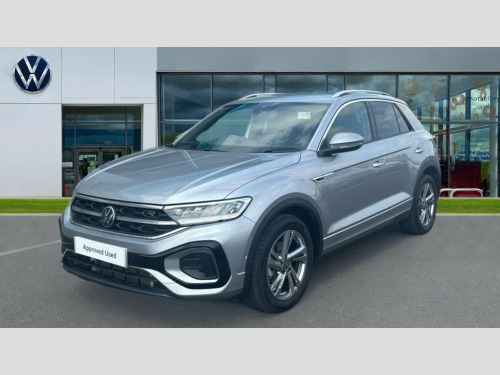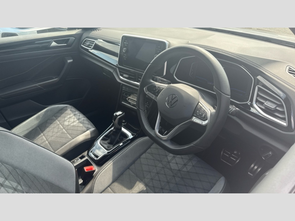 Volkswagen T-Roc 1.5 TSI R-Line 5dr DSG 10.25" Digital cockpit pro, Advanced driver attention and drowsiness monitor, Emergency call service, Lane keeping system Lane Assist, Mobile phone interface, Modified key software - reduce switch off time for key status change to Long no motion, Online services, Park assist including front and rear parking sensors, Service interval indicator, Tailgate/trunk lid release from outside, Think blue trainer driver tips and journey analysis, Warning sound and light for front seatbelts unfastened, Wireless app connect, Battery regeneration during braking, Start/stop function with battery regeneration, DAB Digital radio, Diversity antenna for FM reception, Front and rear 6 speakers, Music playback - MP3, WMA and AAC files, Premium USB cable in choice of either Apple or Android smartphone compatibility, SD card slot, Simultaneous pairing of 2 compatible mobile devices, Title and cover art display, We Connect and We Connect Plus functionality, Auto dimming interior rear view mirror, Automatic hazard lights activation under emergency braking, Automatic headlight control with LED separate daytime running lights with coming/leaving home function, Body coloured exterior mirror housings and door handles, Electrically adjustable and heated door mirrors, Extended roof spoiler, Exterior mirrors aspherical on driver side, convex on front passenger side, External USB type C socket and charging sockets, Front windscreen wiper with intermittent wipe and 4 position delay, Heated rear window, LED 3rd brake light, LED rear combination lamps, LED rear number plate lights, Power windows with comfort operation and circuit breaker, Privacy glass for rear side windows and rear window, R-Line design body coloured bumpers, Rain sensor, Rear exhaust tailpipe, Rear fog light on one side and reversing lights on both sides, Rear side wing doors, Rear wash/wipe with intermittent wipe setting, Remote electrically foldable door mirrors, puddle lights and reverse activated passenger's door mirror, 12V power socket in centre console, 3 rear head restraints, 3 seat bench in 2nd row, 4 load lashing points in luggage compartment, Air care climatronic air conditoning system with active combination filter and 2-zone temperature control, Black roof lining, Chrome plated decorative trims, Chrome plated radiator grille inserts, air vent surrounds and light switch surrounds, Door and side trim panel with leatherette insert, Front + rear carpet mats, Front centre armrest, Front cupholders x 2, Front footwell illumination, Front reading light, Front scuff plates with R Line logo, Front seat back storage pockets, Glove compartment door with light, Instrument lighting, white adjustable panel illumination, Interior ambient lighting and surround lighting, Interior light delay, Isofix child seat preparation, Leather gearshift handle, Load-through provision with cup holder when folded down ('Unsplit rear seat bench, split folding backrest, with centre armrest), Luggage compartment lighting, Single front passenger seat, Stainless steel pedals, Storage compartment in left and right luggage area, Storage compartment in rear doors, Storage compartments in driver and front passenger doors, Sunvisors with illuminated vanity mirrors, Variable boot floor, height adjustable and removable, Driver assistance pack without proactive passenger protection - T-Roc, 3 point height adj front seatbelts + pretensioners, 3 point seatbelts in outer rear with ECE label, ABS, Child locks on rear doors, City emergency braking and pedestrian monitoring, Driver and front passenger airbag with front passenger airbag deactivation, Driver and front passenger safety-optimised head restraints, Drivers seatbelt reminder, Electronic parking brake, Electronic Stability Control (ESC) inc EDL (Electronic Differential Lock) and ASR (Traction Control), Front and rear passengers curtain airbag system including front side airbags, Hill start assist, Predictive pedestrian protection, Rear disc brakes, Two tone horn, Tyre pressure loss indicator, Volkswagen roadside assistance, Piano black decorative inserts in dashboard and front door trim panels, Trims for alloy wheels