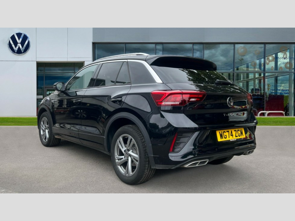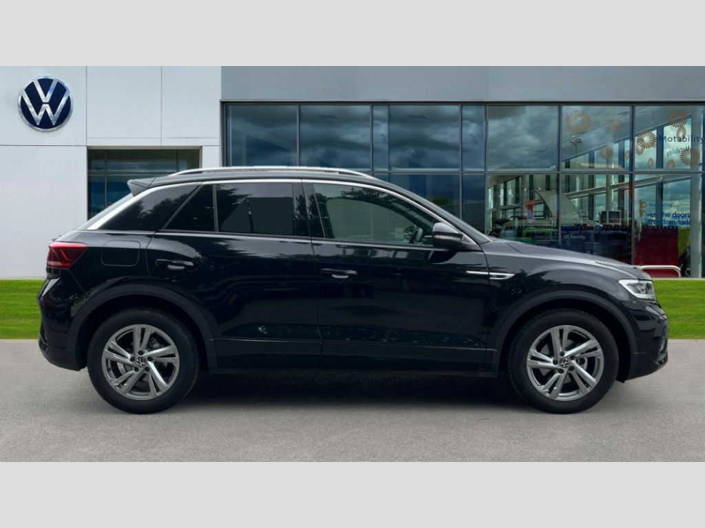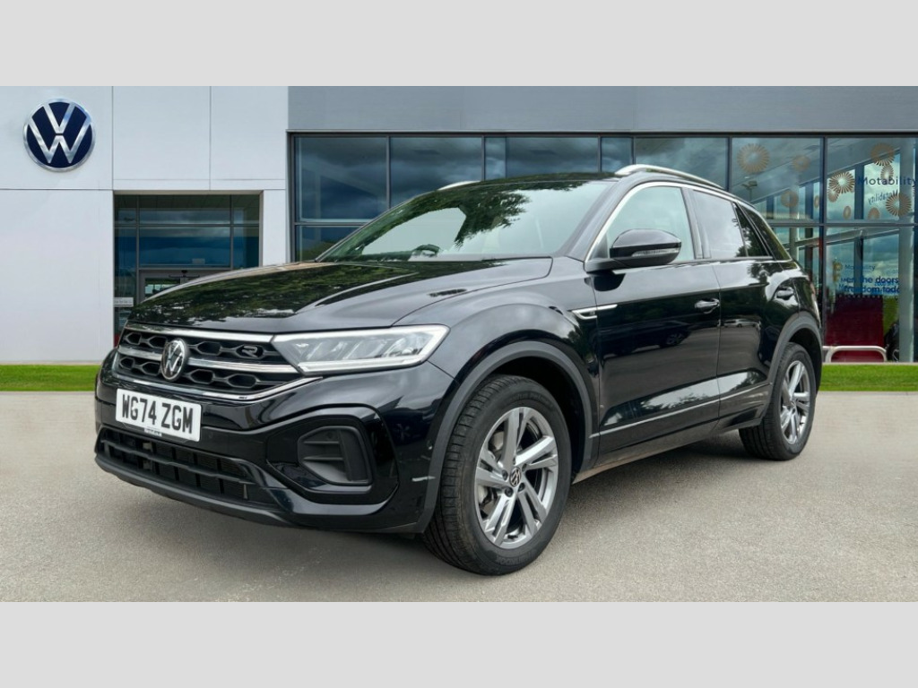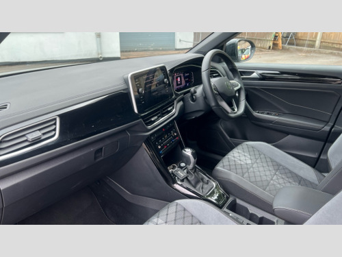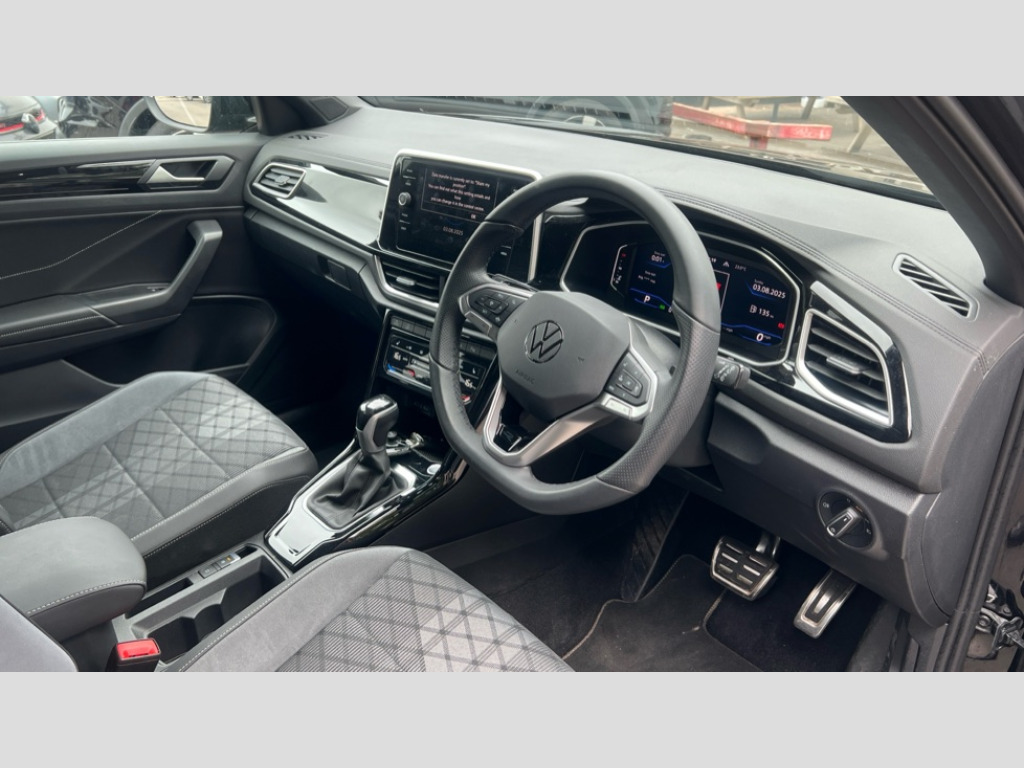 Volkswagen T-Roc 1.5 TSI R-Line 5dr DSG 10.25" Digital cockpit pro, Advanced driver attention and drowsiness monitor, Emergency call service, Lane keeping system Lane Assist, Mobile phone interface, Modified key software - reduce switch off time for key status change to Long no motion, Online services, Park assist including front and rear parking sensors, Service interval indicator, Tailgate/trunk lid release from outside, Think blue trainer driver tips and journey analysis, Warning sound and light for front seatbelts unfastened, Wireless app connect, Battery regeneration during braking, Start/stop function with battery regeneration, DAB Digital radio, Diversity antenna for FM reception, Front and rear 6 speakers, Music playback - MP3, WMA and AAC files, Premium USB cable in choice of either Apple or Android smartphone compatibility, SD card slot, Simultaneous pairing of 2 compatible mobile devices, Title and cover art display, We Connect and We Connect Plus functionality, Auto dimming interior rear view mirror, Automatic hazard lights activation under emergency braking, Automatic headlight control with LED separate daytime running lights with coming/leaving home function, Body coloured exterior mirror housings and door handles, Electrically adjustable and heated door mirrors, Extended roof spoiler, Exterior mirrors aspherical on driver side, convex on front passenger side, External USB type C socket and charging sockets, Front windscreen wiper with intermittent wipe and 4 position delay, Heated rear window, LED 3rd brake light, LED rear combination lamps, LED rear number plate lights, Power windows with comfort operation and circuit breaker, Privacy glass for rear side windows and rear window, R-Line design body coloured bumpers, Rain sensor, Rear exhaust tailpipe, Rear fog light on one side and reversing lights on both sides, Rear side wing doors, Rear wash/wipe with intermittent wipe setting, Remote electrically foldable door mirrors, puddle lights and reverse activated passenger's door mirror, 12V power socket in centre console, 3 rear head restraints, 3 seat bench in 2nd row, 4 load lashing points in luggage compartment, Air care climatronic air conditoning system with active combination filter and 2-zone temperature control, Black roof lining, Chrome plated decorative trims, Chrome plated radiator grille inserts, air vent surrounds and light switch surrounds, Door and side trim panel with leatherette insert, Front + rear carpet mats, Front centre armrest, Front cupholders x 2, Front footwell illumination, Front reading light, Front scuff plates with R Line logo, Front seat back storage pockets, Glove compartment door with light, Instrument lighting, white adjustable panel illumination, Interior ambient lighting and surround lighting, Interior light delay, Isofix child seat preparation, Leather gearshift handle, Load-through provision with cup holder when folded down ('Unsplit rear seat bench, split folding backrest, with centre armrest), Luggage compartment lighting, Single front passenger seat, Stainless steel pedals, Storage compartment in left and right luggage area, Storage compartment in rear doors, Storage compartments in driver and front passenger doors, Sunvisors with illuminated vanity mirrors, Variable boot floor, height adjustable and removable, Driver assistance pack without proactive passenger protection - T-Roc, 3 point height adj front seatbelts + pretensioners, 3 point seatbelts in outer rear with ECE label, ABS, Child locks on rear doors, City emergency braking and pedestrian monitoring, Driver and front passenger airbag with front passenger airbag deactivation, Driver and front passenger safety-optimised head restraints, Drivers seatbelt reminder, Electronic parking brake, Electronic Stability Control (ESC) inc EDL (Electronic Differential Lock) and ASR (Traction Control), Front and rear passengers curtain airbag system including front side airbags, Hill start assist, Predictive pedestrian protection, Rear disc brakes, Two tone horn, Tyre pressure loss indicator, Volkswagen roadside assistance, Piano black decorative inserts in dashboard and front door trim panels, Trims for alloy wheels