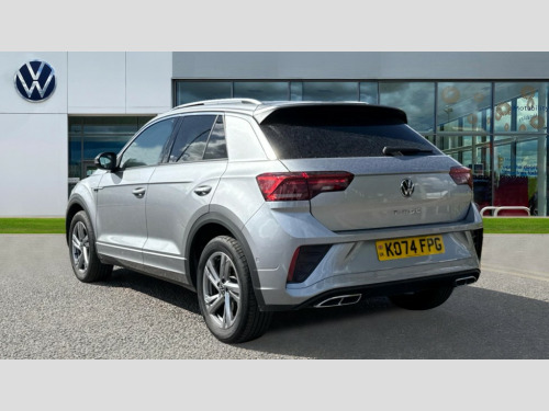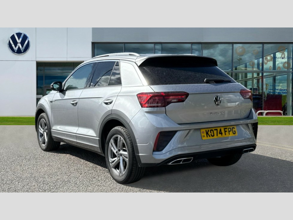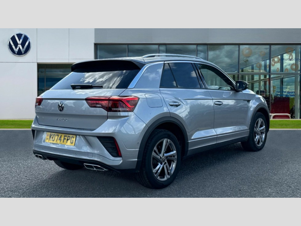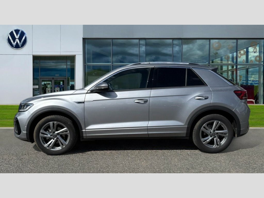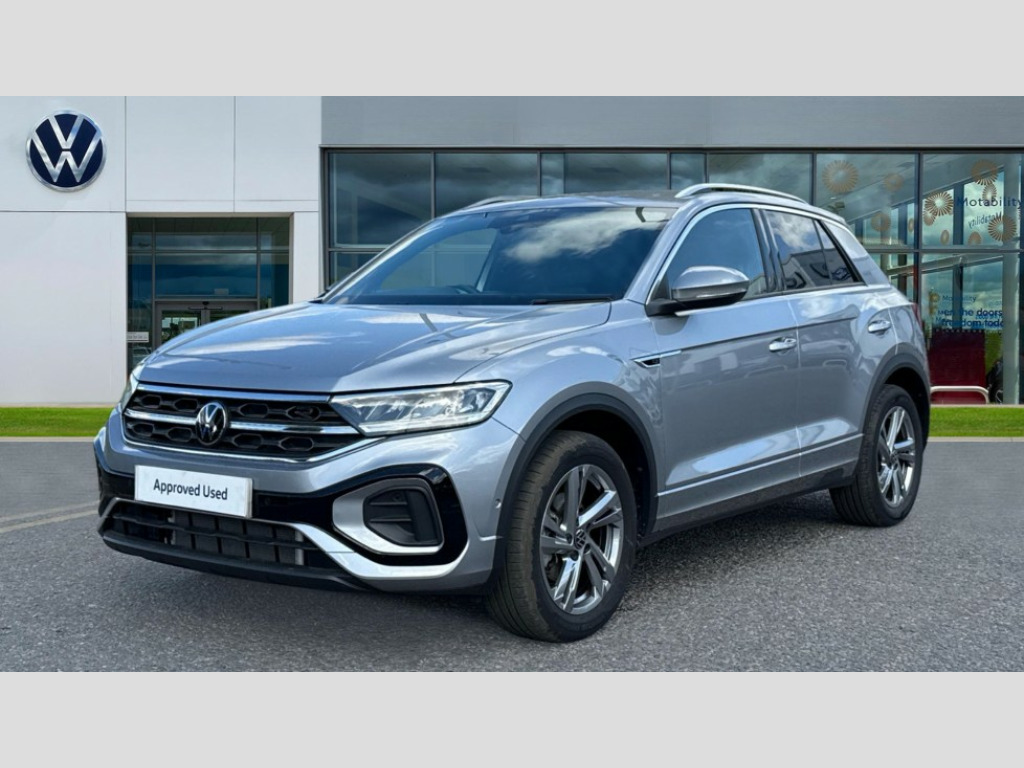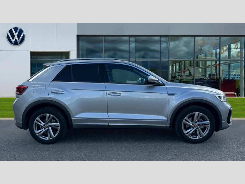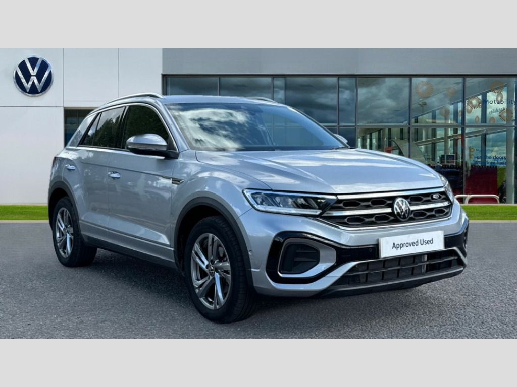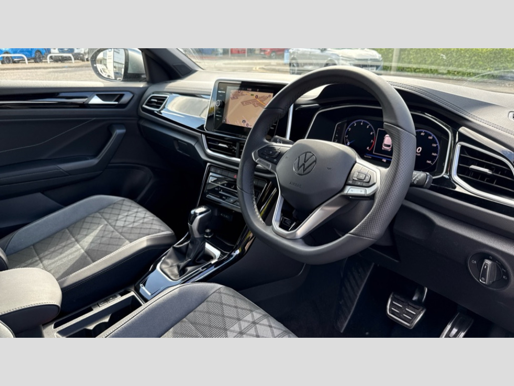 Volkswagen T-Roc 1.5 TSI R-Line 5dr DSG 10.25" Digital cockpit pro, Advanced driver attention and drowsiness monitor, Emergency call service, Lane keeping system Lane Assist, Mobile phone interface, Modified key software - reduce switch off time for key status change to Long no motion, Online services, Park assist including front and rear parking sensors, Service interval indicator, Tailgate/trunk lid release from outside, Think blue trainer driver tips and journey analysis, Warning sound and light for front seatbelts unfastened, Wireless app connect, Battery regeneration during braking, Start/stop function with battery regeneration, DAB Digital radio, Diversity antenna for FM reception, Front and rear 6 speakers, Music playback - MP3, WMA and AAC files, Premium USB cable in choice of either Apple or Android smartphone compatibility, SD card slot, Simultaneous pairing of 2 compatible mobile devices, Title and cover art display, We Connect and We Connect Plus functionality, Auto dimming interior rear view mirror, Automatic hazard lights activation under emergency braking, Automatic headlight control with LED separate daytime running lights with coming/leaving home function, Body coloured exterior mirror housings and door handles, Electrically adjustable and heated door mirrors, Extended roof spoiler, Exterior mirrors aspherical on driver side, convex on front passenger side, External USB type C socket and charging sockets, Front windscreen wiper with intermittent wipe and 4 position delay, Heated rear window, LED 3rd brake light, LED rear combination lamps, LED rear number plate lights, Power windows with comfort operation and circuit breaker, Privacy glass for rear side windows and rear window, R-Line design body coloured bumpers, Rain sensor, Rear exhaust tailpipe, Rear fog light on one side and reversing lights on both sides, Rear side wing doors, Rear wash/wipe with intermittent wipe setting, Remote electrically foldable door mirrors, puddle lights and reverse activated passenger's door mirror, 12V power socket in centre console, 3 rear head restraints, 3 seat bench in 2nd row, 4 load lashing points in luggage compartment, Air care climatronic air conditoning system with active combination filter and 2-zone temperature control, Black roof lining, Chrome plated decorative trims, Chrome plated radiator grille inserts, air vent surrounds and light switch surrounds, Door and side trim panel with leatherette insert, Front + rear carpet mats, Front centre armrest, Front cupholders x 2, Front footwell illumination, Front reading light, Front scuff plates with R Line logo, Front seat back storage pockets, Glove compartment door with light, Instrument lighting, white adjustable panel illumination, Interior ambient lighting and surround lighting, Interior light delay, Isofix child seat preparation, Leather gearshift handle, Load-through provision with cup holder when folded down ('Unsplit rear seat bench, split folding backrest, with centre armrest), Luggage compartment lighting, Single front passenger seat, Stainless steel pedals, Storage compartment in left and right luggage area, Storage compartment in rear doors, Storage compartments in driver and front passenger doors, Sunvisors with illuminated vanity mirrors, Variable boot floor, height adjustable and removable, Driver assistance pack without proactive passenger protection - T-Roc, 3 point height adj front seatbelts + pretensioners, 3 point seatbelts in outer rear with ECE label, ABS, Child locks on rear doors, City emergency braking and pedestrian monitoring, Driver and front passenger airbag with front passenger airbag deactivation, Driver and front passenger safety-optimised head restraints, Drivers seatbelt reminder, Electronic parking brake, Electronic Stability Control (ESC) inc EDL (Electronic Differential Lock) and ASR (Traction Control), Front and rear passengers curtain airbag system including front side airbags, Hill start assist, Predictive pedestrian protection, Rear disc brakes, Two tone horn, Tyre pressure loss indicator, Volkswagen roadside assistance, Piano black decorative inserts in dashboard and front door trim panels, Trims for alloy wheels