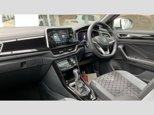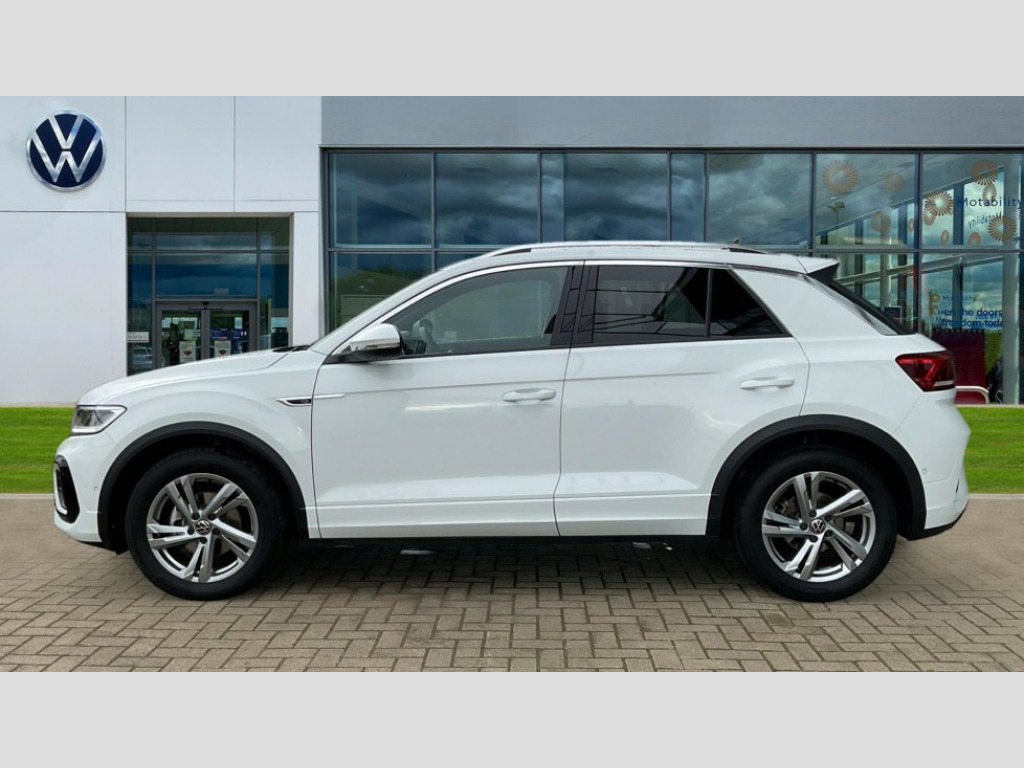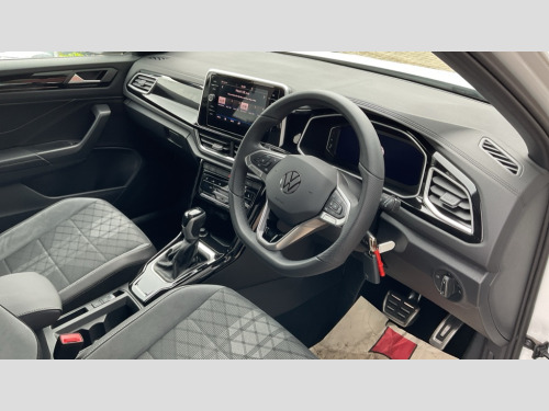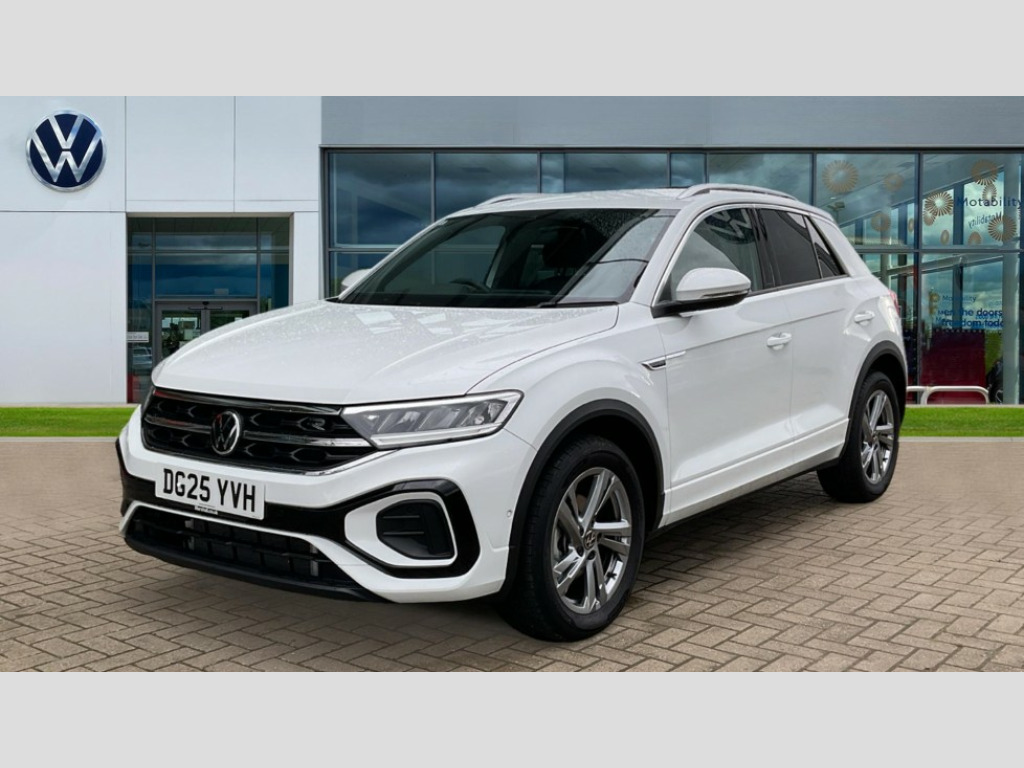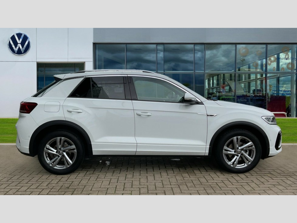 Volkswagen T-Roc 1.5 TSI R-Line 5dr DSG 10.25" Digital cockpit pro, Advanced driver attention and drowsiness monitor, Emergency call service, Lane keeping system Lane Assist, Mobile phone interface, Modified key software - reduce switch off time for key status change to Long no motion, Online services, Park assist including front and rear parking sensors, Service interval indicator, Tailgate/trunk lid release from outside, Think blue trainer driver tips and journey analysis, Warning sound and light for front seatbelts unfastened, Wireless app connect, Battery regeneration during braking, Start/stop function with battery regeneration, DAB Digital radio, Diversity antenna for FM reception, Front and rear 6 speakers, Music playback - MP3, WMA and AAC files, Premium USB cable in choice of either Apple or Android smartphone compatibility, SD card slot, Simultaneous pairing of 2 compatible mobile devices, Title and cover art display, We Connect and We Connect Plus functionality, Auto dimming interior rear view mirror, Automatic hazard lights activation under emergency braking, Automatic headlight control with LED separate daytime running lights with coming/leaving home function, Body coloured exterior mirror housings and door handles, Electrically adjustable and heated door mirrors, Extended roof spoiler, Exterior mirrors aspherical on driver side, convex on front passenger side, External USB type C socket and charging sockets, Front windscreen wiper with intermittent wipe and 4 position delay, Heated rear window, LED 3rd brake light, LED rear combination lamps, LED rear number plate lights, Power windows with comfort operation and circuit breaker, Privacy glass for rear side windows and rear window, R-Line design body coloured bumpers, Rain sensor, Rear exhaust tailpipe, Rear fog light on one side and reversing lights on both sides, Rear side wing doors, Rear wash/wipe with intermittent wipe setting, Remote electrically foldable door mirrors, puddle lights and reverse activated passenger's door mirror, 12V power socket in centre console, 3 rear head restraints, 3 seat bench in 2nd row, 4 load lashing points in luggage compartment, Air care climatronic air conditoning system with active combination filter and 2-zone temperature control, Black roof lining, Chrome plated decorative trims, Chrome plated radiator grille inserts, air vent surrounds and light switch surrounds, Door and side trim panel with leatherette insert, Front + rear carpet mats, Front centre armrest, Front cupholders x 2, Front footwell illumination, Front reading light, Front scuff plates with R Line logo, Front seat back storage pockets, Glove compartment door with light, Instrument lighting, white adjustable panel illumination, Interior ambient lighting and surround lighting, Interior light delay, Isofix child seat preparation, Leather gearshift handle, Load-through provision with cup holder when folded down ('Unsplit rear seat bench, split folding backrest, with centre armrest), Luggage compartment lighting, Single front passenger seat, Stainless steel pedals, Storage compartment in left and right luggage area, Storage compartment in rear doors, Storage compartments in driver and front passenger doors, Sunvisors with illuminated vanity mirrors, Variable boot floor, height adjustable and removable, Driver assistance pack without proactive passenger protection - T-Roc, 3 point height adj front seatbelts + pretensioners, 3 point seatbelts in outer rear with ECE label, ABS, Child locks on rear doors, City emergency braking and pedestrian monitoring, Driver and front passenger airbag with front passenger airbag deactivation, Driver and front passenger safety-optimised head restraints, Drivers seatbelt reminder, Electronic parking brake, Electronic Stability Control (ESC) inc EDL (Electronic Differential Lock) and ASR (Traction Control), Front and rear passengers curtain airbag system including front side airbags, Hill start assist, Predictive pedestrian protection, Rear disc brakes, Two tone horn, Tyre pressure loss indicator, Volkswagen roadside assistance, Piano black decorative inserts in dashboard and front door trim panels, Trims for alloy wheels