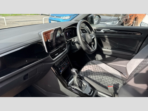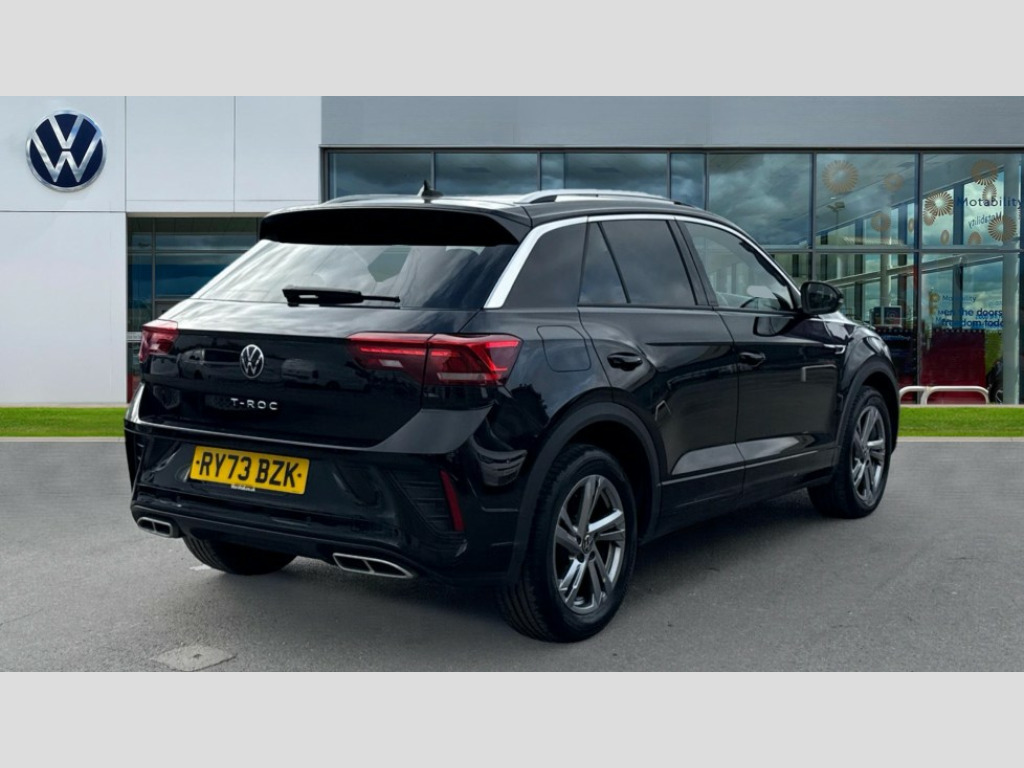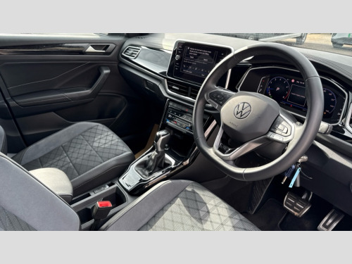 Volkswagen T-Roc 1.5 TSI R-Line 5dr DSG 10.25" Digital cockpit pro, Advanced driver attention and drowsiness monitor, Bluetooth mobile phone interface, Emergency call service, Lane keeping system Lane Assist, Modified key software - reduce switch off time for key status change to Long no motion, Online services, Park assist including front and rear parking sensors, Service interval indicator, Tailgate/trunk lid release from outside, Think blue trainer driver tips and journey analysis, Warning sound and light for front seatbelts unfastened, Wireless app connect, Battery regeneration during braking, Start/stop function with battery regeneration, Diversity antenna for FM reception, Music playback - MP3, WMA and AAC files, Premium USB cable in choice of either Apple or Android smartphone compatibility, SD card slot, Simultaneous pairing of 2 compatible mobile devices, Title and cover art display, We Connect and We Connect Plus functionality, 3rd brake light, Auto dimming interior rear view mirror, Automatic hazard lights activation under emergency braking, Automatic headlight control with LED separate daytime running lights with coming/leaving home function, Electrically adjustable and heated door mirrors, Extended roof spoiler, Exterior mirrors aspherical on driver side, convex on front passenger side, External USB type C socket and charging sockets, Front windscreen wiper with intermittent wipe and 4 position delay, Heated rear window, LED rear combination lamps, LED rear number plate lights, Power windows with comfort operation and circuit breaker, R-Line design body coloured bumpers, Rain sensor, Rear exhaust tailpipe, Rear fog light on one side and reversing lights on both sides, Rear side wing doors, Rear wash/wipe with intermittent wipe setting, Remote electrically foldable door mirrors, puddle lights and reverse activated passenger's door mirror, 12V power socket in centre console, 3 rear head restraints, 3 seat bench in 2nd row, 4 load lashing points in luggage compartment, Air care climatronic air conditoning system with active combination filter and 2-zone temperature control, Black roof lining, Chrome plated radiator grille inserts, air vent surrounds and light switch surrounds, Door and side trim panel with leatherette insert, Front + rear carpet mats, Front centre armrest, Front cupholders x 2, Front footwell illumination, Front reading light, Front scuff plates with R Line logo, Front seat back storage pockets, Glove compartment door with light, Instrument lighting, white adjustable panel illumination, Interior ambient lighting and surround lighting, Interior light delay, Isofix child seat preparation, Leather gearshift handle, Load-through provision with cup holder when folded down ('Unsplit rear seat bench, split folding backrest, with centre armrest), Luggage compartment lighting, Single front passenger seat, Stainless steel pedals, Storage compartment in left and right luggage area, Storage compartment in rear doors, Storage compartments in driver and front passenger doors, Sunvisors with illuminated vanity mirrors, Variable boot floor, height adjustable and removable, Driver assistance pack without proactive passenger protection - T-Roc, 3 point height adj front seatbelts + pretensioners, 3 point seatbelts in outer rear with ECE label, ABS, Child locks on rear doors, City emergency braking and pedestrian monitoring, Driver and front passenger airbag with front passenger airbag deactivation, Driver and front passenger safety-optimised head restraints, Drivers seatbelt reminder, Electronic parking brake, Electronic Stability Control (ESC) inc EDL (Electronic Differential Lock) and ASR (Traction Control), Front and rear passengers curtain airbag system including front side airbags, Hill start assist, Predictive pedestrian protection, Rear disc brakes, Two tone horn, Tyre pressure loss indicator, Volkswagen roadside assistance, Anti-theft alarm system with interior monitoring, backup horn, and towing protection, Remote central locking with SAFELOCK, radio remote control with 2 remote control folding keys, Trims for alloy wheels