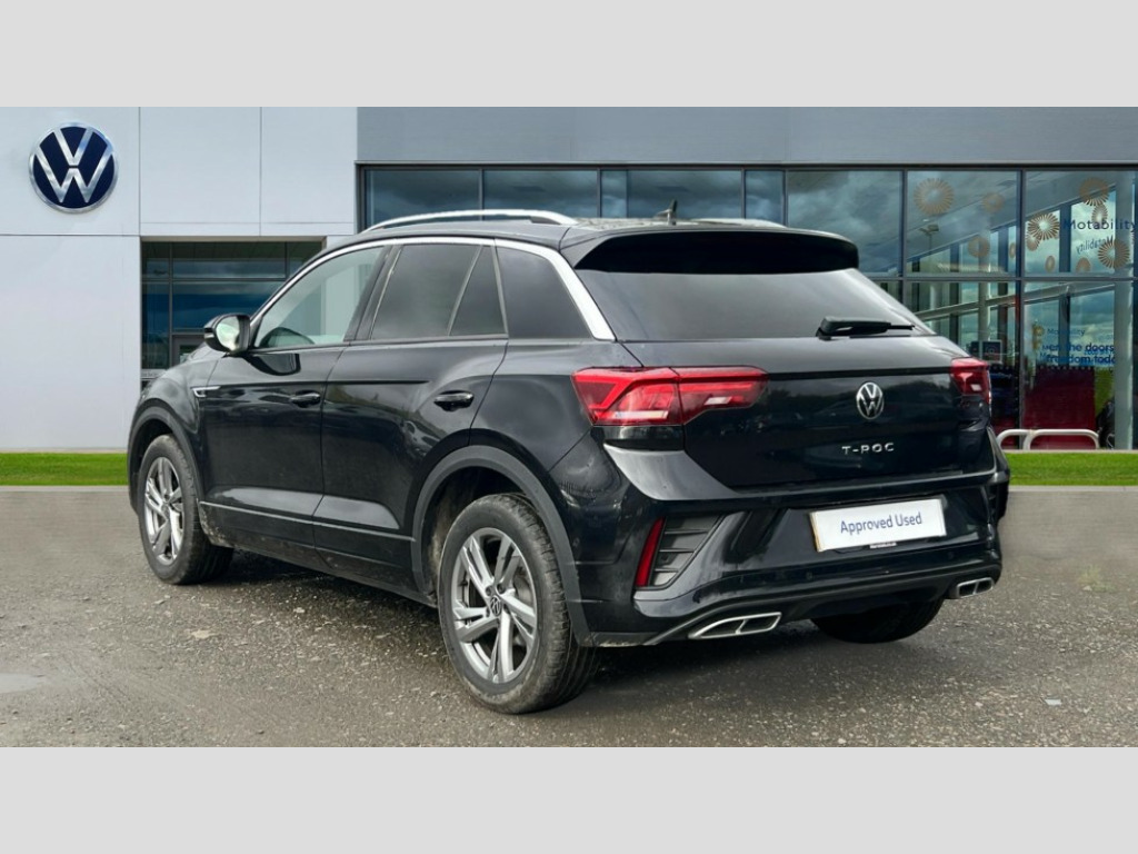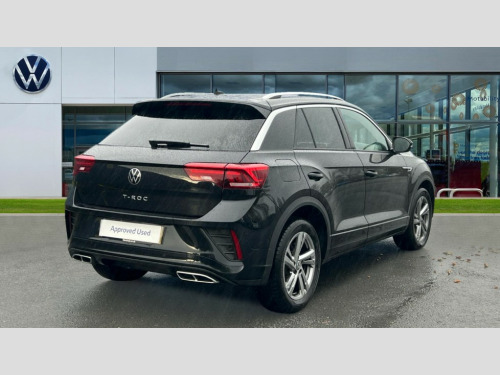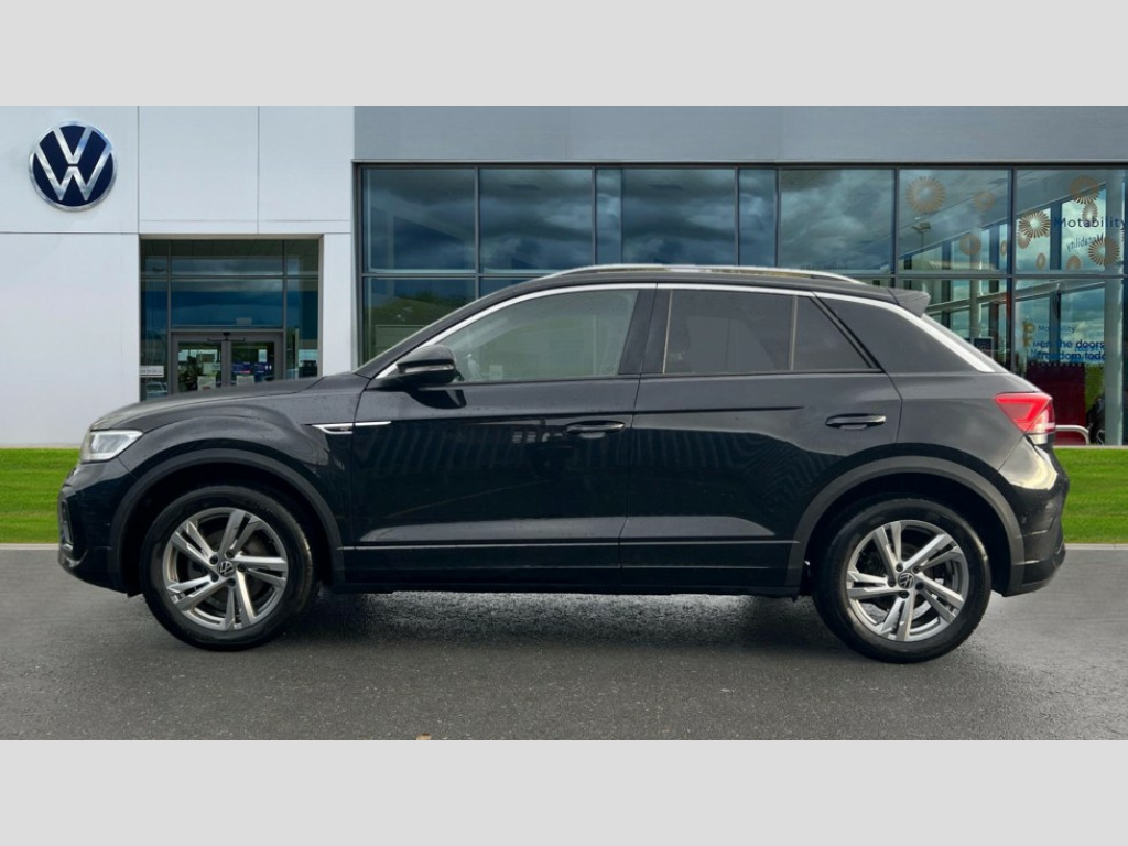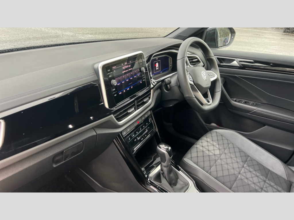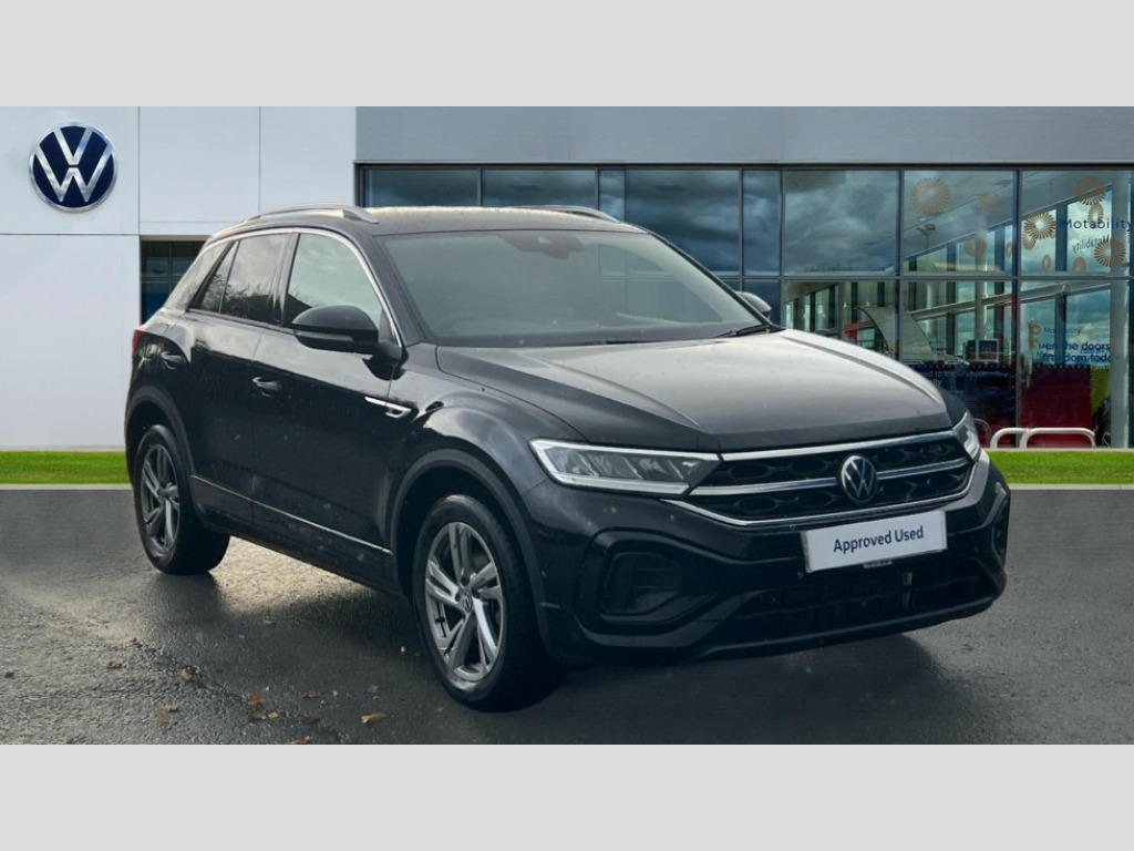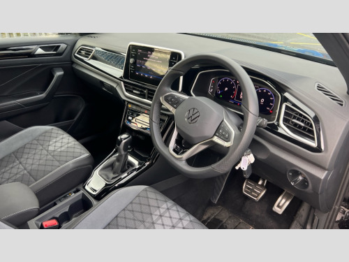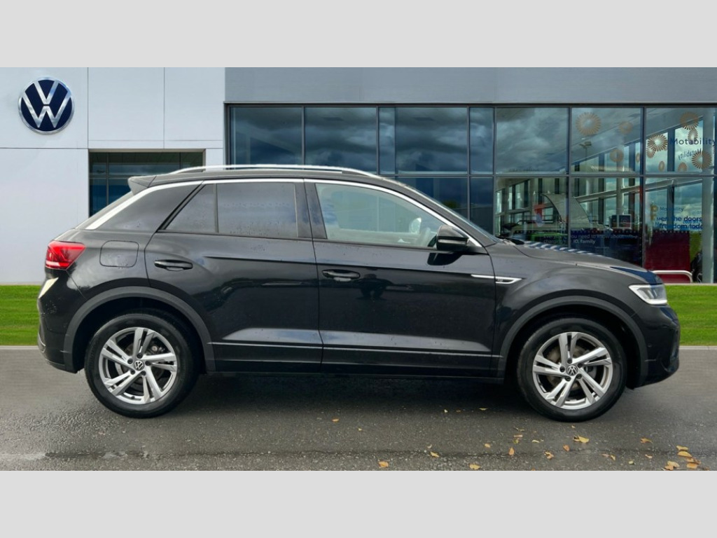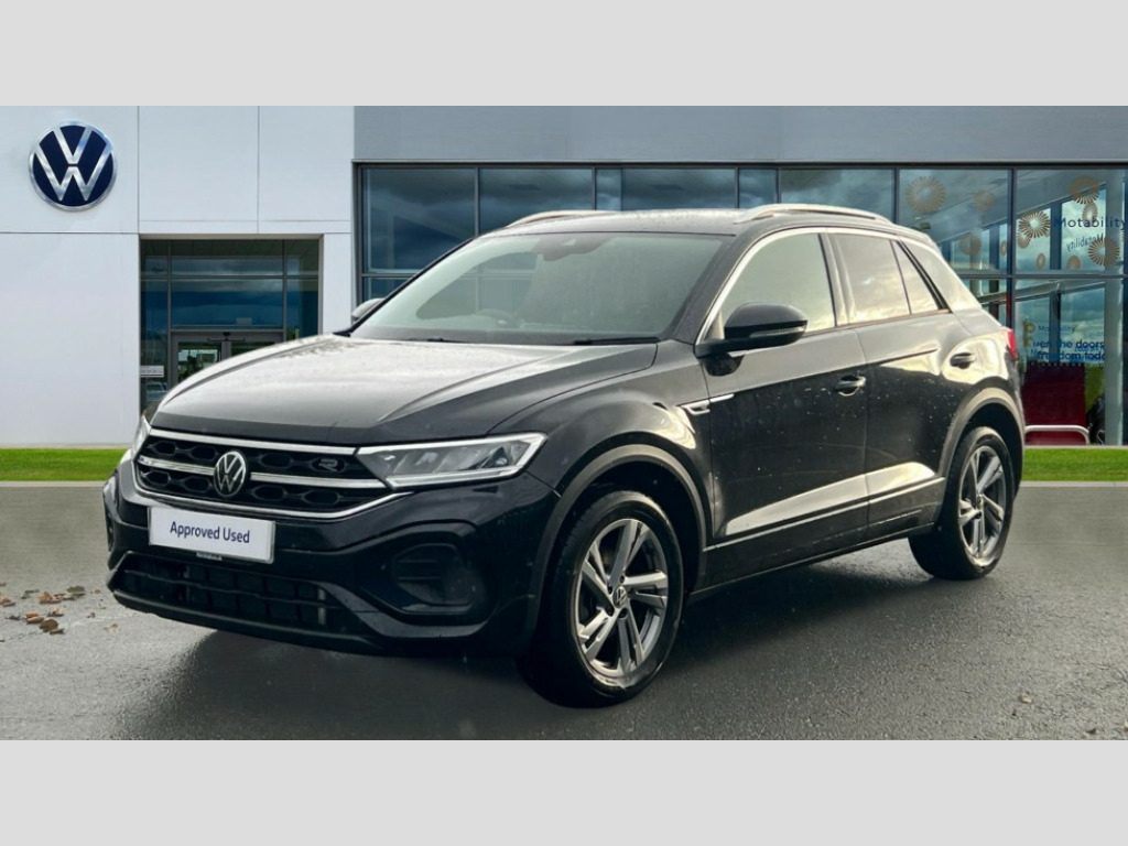 Volkswagen T-Roc 1.5 TSI R-Line 5dr DSG 10.25" Digital cockpit pro, Advanced driver attention and drowsiness monitor, Emergency call service, Lane keeping system Lane Assist, Mobile phone interface, Modified key software - reduce switch off time for key status change to Long no motion, Online services, Park assist including front and rear parking sensors, Service interval indicator, Tailgate/trunk lid release from outside, Think blue trainer driver tips and journey analysis, Warning sound and light for front seatbelts unfastened, Wireless app connect, Battery regeneration during braking, Start/stop function with battery regeneration, DAB Digital radio, Diversity antenna for FM reception, Front and rear 6 speakers, Music playback - MP3, WMA and AAC files, Premium USB cable in choice of either Apple or Android smartphone compatibility, SD card slot, Simultaneous pairing of 2 compatible mobile devices, Title and cover art display, We Connect and We Connect Plus functionality, Auto dimming interior rear view mirror, Automatic hazard lights activation under emergency braking, Automatic headlight control with LED separate daytime running lights with coming/leaving home function, Body coloured exterior mirror housings and door handles, Electrically adjustable and heated door mirrors, Extended roof spoiler, Exterior mirrors aspherical on driver side, convex on front passenger side, External USB type C socket and charging sockets, Front windscreen wiper with intermittent wipe and 4 position delay, Heated rear window, LED 3rd brake light, LED rear combination lamps, LED rear number plate lights, Power windows with comfort operation and circuit breaker, Privacy glass for rear side windows and rear window, R-Line design body coloured bumpers, Rain sensor, Rear exhaust tailpipe, Rear fog light on one side and reversing lights on both sides, Rear side wing doors, Rear wash/wipe with intermittent wipe setting, Remote electrically foldable door mirrors, puddle lights and reverse activated passenger's door mirror, 12V power socket in centre console, 3 rear head restraints, 3 seat bench in 2nd row, 4 load lashing points in luggage compartment, Air care climatronic air conditoning system with active combination filter and 2-zone temperature control, Black roof lining, Chrome plated decorative trims, Chrome plated radiator grille inserts, air vent surrounds and light switch surrounds, Door and side trim panel with leatherette insert, Front + rear carpet mats, Front centre armrest, Front cupholders x 2, Front footwell illumination, Front reading light, Front scuff plates with R Line logo, Front seat back storage pockets, Glove compartment door with light, Instrument lighting, white adjustable panel illumination, Interior ambient lighting and surround lighting, Interior light delay, Isofix child seat preparation, Leather gearshift handle, Load-through provision with cup holder when folded down ('Unsplit rear seat bench, split folding backrest, with centre armrest), Luggage compartment lighting, Single front passenger seat, Stainless steel pedals, Storage compartment in left and right luggage area, Storage compartment in rear doors, Storage compartments in driver and front passenger doors, Sunvisors with illuminated vanity mirrors, Variable boot floor, height adjustable and removable, Driver assistance pack without proactive passenger protection - T-Roc, 3 point height adj front seatbelts + pretensioners, 3 point seatbelts in outer rear with ECE label, ABS, Child locks on rear doors, City emergency braking and pedestrian monitoring, Driver and front passenger airbag with front passenger airbag deactivation, Driver and front passenger safety-optimised head restraints, Drivers seatbelt reminder, Electronic parking brake, Electronic Stability Control (ESC) inc EDL (Electronic Differential Lock) and ASR (Traction Control), Front and rear passengers curtain airbag system including front side airbags, Hill start assist, Predictive pedestrian protection, Rear disc brakes, Two tone horn, Tyre pressure loss indicator, Volkswagen roadside assistance, Piano black decorative inserts in dashboard and front door trim panels, Trims for alloy wheels