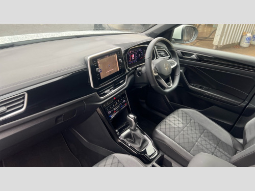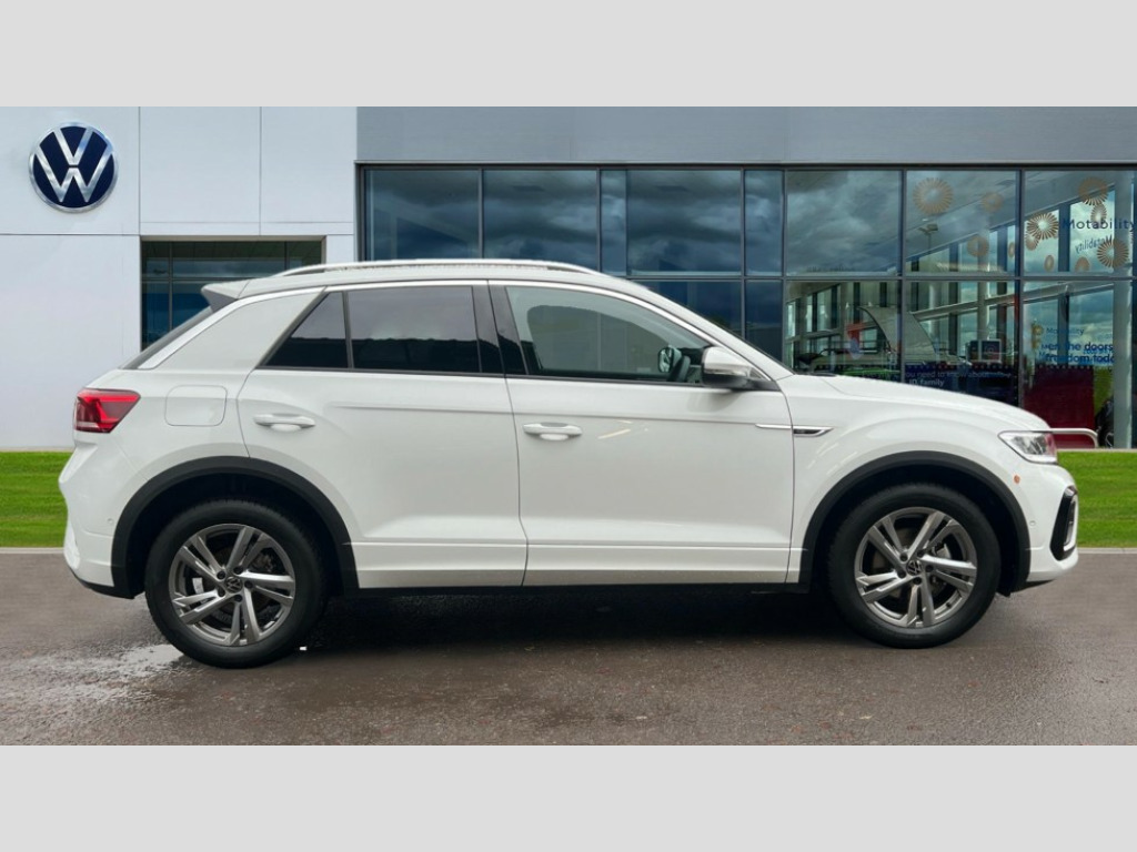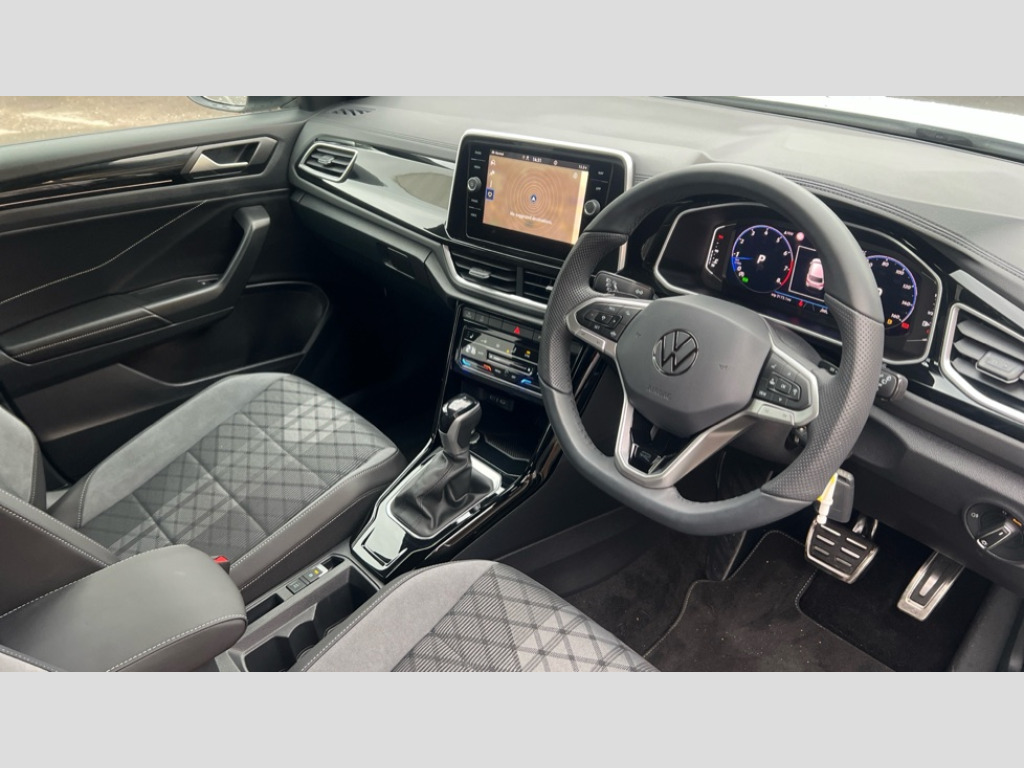 Volkswagen T-Roc 1.5 TSI R-Line 5dr DSG 10.25" Digital cockpit pro, Advanced driver attention and drowsiness monitor, Emergency call service, Lane keeping system Lane Assist, Mobile phone interface, Modified key software - reduce switch off time for key status change to Long no motion, Online services, Park assist including front and rear parking sensors, Service interval indicator, Tailgate/trunk lid release from outside, Think blue trainer driver tips and journey analysis, Warning sound and light for front seatbelts unfastened, Wireless app connect, Battery regeneration during braking, Start/stop function with battery regeneration, DAB Digital radio, Diversity antenna for FM reception, Front and rear 6 speakers, Music playback - MP3, WMA and AAC files, Premium USB cable in choice of either Apple or Android smartphone compatibility, SD card slot, Simultaneous pairing of 2 compatible mobile devices, Title and cover art display, We Connect and We Connect Plus functionality, Auto dimming interior rear view mirror, Automatic hazard lights activation under emergency braking, Automatic headlight control with LED separate daytime running lights with coming/leaving home function, Body coloured exterior mirror housings and door handles, Electrically adjustable and heated door mirrors, Extended roof spoiler, Exterior mirrors aspherical on driver side, convex on front passenger side, External USB type C socket and charging sockets, Front windscreen wiper with intermittent wipe and 4 position delay, Heated rear window, LED 3rd brake light, LED rear combination lamps, LED rear number plate lights, Power windows with comfort operation and circuit breaker, Privacy glass for rear side windows and rear window, R-Line design body coloured bumpers, Rain sensor, Rear exhaust tailpipe, Rear fog light on one side and reversing lights on both sides, Rear side wing doors, Rear wash/wipe with intermittent wipe setting, Remote electrically foldable door mirrors, puddle lights and reverse activated passenger's door mirror, 12V power socket in centre console, 3 rear head restraints, 3 seat bench in 2nd row, 4 load lashing points in luggage compartment, Air care climatronic air conditoning system with active combination filter and 2-zone temperature control, Black roof lining, Chrome plated decorative trims, Chrome plated radiator grille inserts, air vent surrounds and light switch surrounds, Door and side trim panel with leatherette insert, Front + rear carpet mats, Front centre armrest, Front cupholders x 2, Front footwell illumination, Front reading light, Front scuff plates with R Line logo, Front seat back storage pockets, Glove compartment door with light, Instrument lighting, white adjustable panel illumination, Interior ambient lighting and surround lighting, Interior light delay, Isofix child seat preparation, Leather gearshift handle, Load-through provision with cup holder when folded down ('Unsplit rear seat bench, split folding backrest, with centre armrest), Luggage compartment lighting, Single front passenger seat, Stainless steel pedals, Storage compartment in left and right luggage area, Storage compartment in rear doors, Storage compartments in driver and front passenger doors, Sunvisors with illuminated vanity mirrors, Variable boot floor, height adjustable and removable, Driver assistance pack without proactive passenger protection - T-Roc, 3 point height adj front seatbelts + pretensioners, 3 point seatbelts in outer rear with ECE label, ABS, Child locks on rear doors, City emergency braking and pedestrian monitoring, Driver and front passenger airbag with front passenger airbag deactivation, Driver and front passenger safety-optimised head restraints, Drivers seatbelt reminder, Electronic parking brake, Electronic Stability Control (ESC) inc EDL (Electronic Differential Lock) and ASR (Traction Control), Front and rear passengers curtain airbag system including front side airbags, Hill start assist, Predictive pedestrian protection, Rear disc brakes, Two tone horn, Tyre pressure loss indicator, Volkswagen roadside assistance, Piano black decorative inserts in dashboard and front door trim panels, Trims for alloy wheels