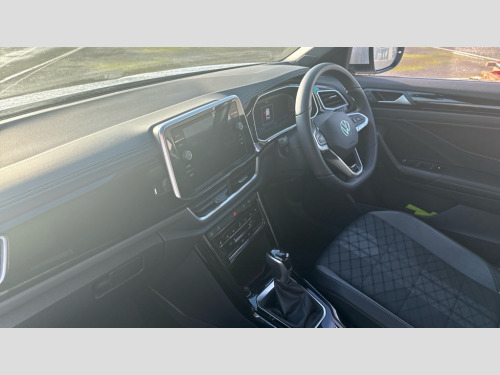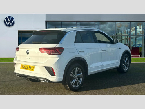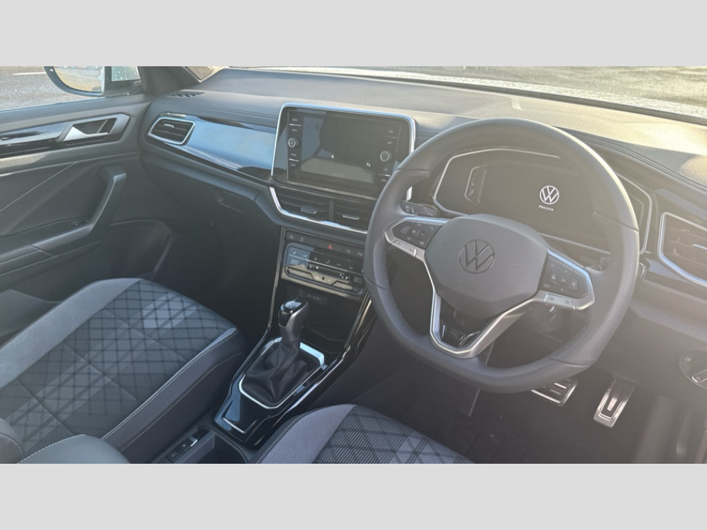 Volkswagen T-Roc 1.5 TSI R-Line 5dr DSG 10.25" Digital cockpit pro, Advanced driver attention and drowsiness monitor, Emergency call service, Lane keeping system Lane Assist, Mobile phone interface, Modified key software - reduce switch off time for key status change to Long no motion, Online services, Park assist including front and rear parking sensors, Service interval indicator, Tailgate/trunk lid release from outside, Think blue trainer driver tips and journey analysis, Warning sound and light for front seatbelts unfastened, Wireless app connect, Battery regeneration during braking, Start/stop function with battery regeneration, DAB Digital radio, Diversity antenna for FM reception, Front and rear 6 speakers, Music playback - MP3, WMA and AAC files, Premium USB cable in choice of either Apple or Android smartphone compatibility, SD card slot, Simultaneous pairing of 2 compatible mobile devices, Title and cover art display, We Connect and We Connect Plus functionality, Auto dimming interior rear view mirror, Automatic hazard lights activation under emergency braking, Automatic headlight control with LED separate daytime running lights with coming/leaving home function, Body coloured exterior mirror housings and door handles, Electrically adjustable and heated door mirrors, Extended roof spoiler, Exterior mirrors aspherical on driver side, convex on front passenger side, External USB type C socket and charging sockets, Front windscreen wiper with intermittent wipe and 4 position delay, Heated rear window, LED 3rd brake light, LED rear combination lamps, LED rear number plate lights, Power windows with comfort operation and circuit breaker, Privacy glass for rear side windows and rear window, R-Line design body coloured bumpers, Rain sensor, Rear exhaust tailpipe, Rear fog light on one side and reversing lights on both sides, Rear side wing doors, Rear wash/wipe with intermittent wipe setting, Remote electrically foldable door mirrors, puddle lights and reverse activated passenger's door mirror, 12V power socket in centre console, 3 rear head restraints, 3 seat bench in 2nd row, 4 load lashing points in luggage compartment, Air care climatronic air conditoning system with active combination filter and 2-zone temperature control, Black roof lining, Chrome plated decorative trims, Chrome plated radiator grille inserts, air vent surrounds and light switch surrounds, Door and side trim panel with leatherette insert, Front + rear carpet mats, Front centre armrest, Front cupholders x 2, Front footwell illumination, Front reading light, Front scuff plates with R Line logo, Front seat back storage pockets, Glove compartment door with light, Instrument lighting, white adjustable panel illumination, Interior ambient lighting and surround lighting, Interior light delay, Isofix child seat preparation, Leather gearshift handle, Load-through provision with cup holder when folded down ('Unsplit rear seat bench, split folding backrest, with centre armrest), Luggage compartment lighting, Single front passenger seat, Stainless steel pedals, Storage compartment in left and right luggage area, Storage compartment in rear doors, Storage compartments in driver and front passenger doors, Sunvisors with illuminated vanity mirrors, Variable boot floor, height adjustable and removable, Driver assistance pack without proactive passenger protection - T-Roc, 3 point height adj front seatbelts + pretensioners, 3 point seatbelts in outer rear with ECE label, ABS, Child locks on rear doors, City emergency braking and pedestrian monitoring, Driver and front passenger airbag with front passenger airbag deactivation, Driver and front passenger safety-optimised head restraints, Drivers seatbelt reminder, Electronic parking brake, Electronic Stability Control (ESC) inc EDL (Electronic Differential Lock) and ASR (Traction Control), Front and rear passengers curtain airbag system including front side airbags, Hill start assist, Predictive pedestrian protection, Rear disc brakes, Two tone horn, Tyre pressure loss indicator, Volkswagen roadside assistance, Piano black decorative inserts in dashboard and front door trim panels, Trims for alloy wheels