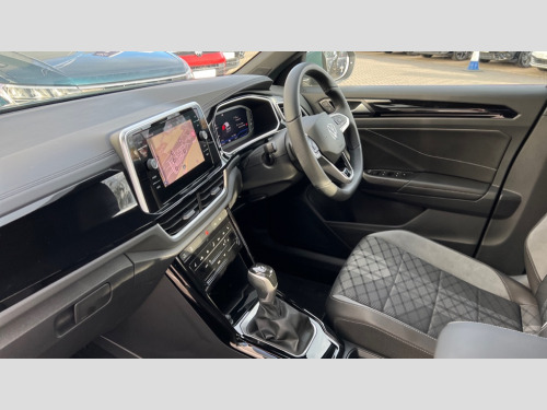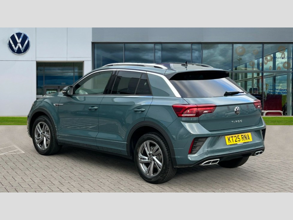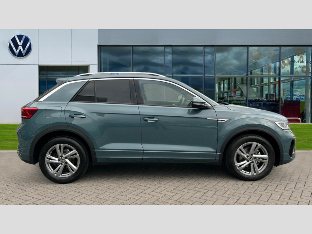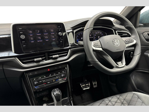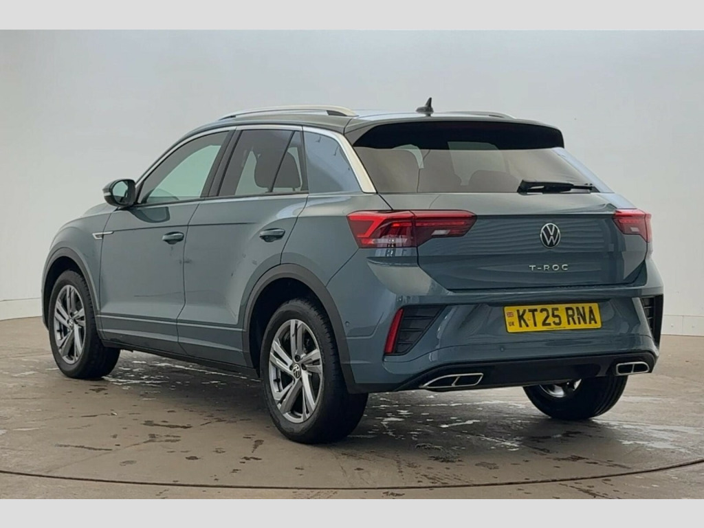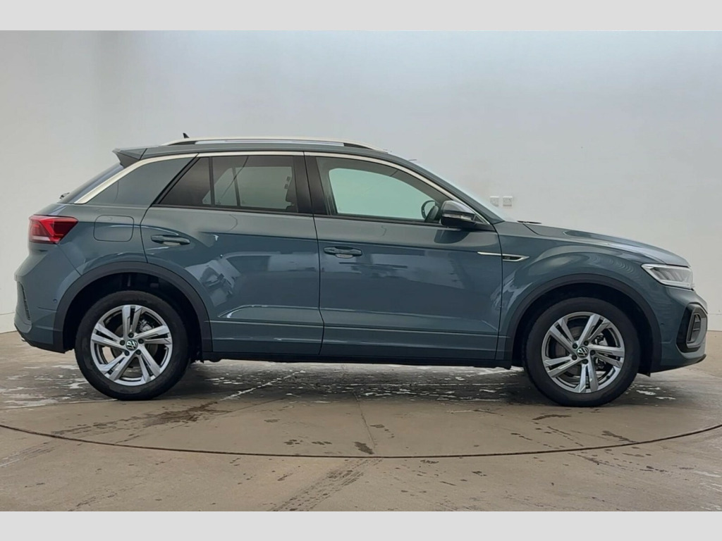 Volkswagen T-Roc 1.5 TSI R-Line 5dr DSG 10.25" Digital cockpit pro, Advanced driver attention and drowsiness monitor, Emergency call service, Lane keeping system Lane Assist, Mobile phone interface, Modified key software - reduce switch off time for key status change to Long no motion, Online services, Park assist including front and rear parking sensors, Service interval indicator, Tailgate/trunk lid release from outside, Think blue trainer driver tips and journey analysis, Warning sound and light for front seatbelts unfastened, Wireless app connect, Battery regeneration during braking, Start/stop function with battery regeneration, DAB Digital radio, Diversity antenna for FM reception, Front and rear 6 speakers, Music playback - MP3, WMA and AAC files, Premium USB cable in choice of either Apple or Android smartphone compatibility, SD card slot, Simultaneous pairing of 2 compatible mobile devices, Title and cover art display, We Connect and We Connect Plus functionality, Auto dimming interior rear view mirror, Automatic hazard lights activation under emergency braking, Automatic headlight control with LED separate daytime running lights with coming/leaving home function, Body coloured exterior mirror housings and door handles, Electrically adjustable and heated door mirrors, Extended roof spoiler, Exterior mirrors aspherical on driver side, convex on front passenger side, External USB type C socket and charging sockets, Front windscreen wiper with intermittent wipe and 4 position delay, Heated rear window, LED 3rd brake light, LED rear combination lamps, LED rear number plate lights, Power windows with comfort operation and circuit breaker, Privacy glass for rear side windows and rear window, R-Line design body coloured bumpers, Rain sensor, Rear exhaust tailpipe, Rear fog light on one side and reversing lights on both sides, Rear side wing doors, Rear wash/wipe with intermittent wipe setting, Remote electrically foldable door mirrors, puddle lights and reverse activated passenger's door mirror, 12V power socket in centre console, 3 rear head restraints, 3 seat bench in 2nd row, 4 load lashing points in luggage compartment, Air care climatronic air conditoning system with active combination filter and 2-zone temperature control, Black roof lining, Chrome plated decorative trims, Chrome plated radiator grille inserts, air vent surrounds and light switch surrounds, Door and side trim panel with leatherette insert, Front + rear carpet mats, Front centre armrest, Front cupholders x 2, Front footwell illumination, Front reading light, Front scuff plates with R Line logo, Front seat back storage pockets, Glove compartment door with light, Instrument lighting, white adjustable panel illumination, Interior ambient lighting and surround lighting, Interior light delay, Isofix child seat preparation, Leather gearshift handle, Load-through provision with cup holder when folded down ('Unsplit rear seat bench, split folding backrest, with centre armrest), Luggage compartment lighting, Single front passenger seat, Stainless steel pedals, Storage compartment in left and right luggage area, Storage compartment in rear doors, Storage compartments in driver and front passenger doors, Sunvisors with illuminated vanity mirrors, Variable boot floor, height adjustable and removable, Driver assistance pack without proactive passenger protection - T-Roc, 3 point height adj front seatbelts + pretensioners, 3 point seatbelts in outer rear with ECE label, ABS, Child locks on rear doors, City emergency braking and pedestrian monitoring, Driver and front passenger airbag with front passenger airbag deactivation, Driver and front passenger safety-optimised head restraints, Drivers seatbelt reminder, Electronic parking brake, Electronic Stability Control (ESC) inc EDL (Electronic Differential Lock) and ASR (Traction Control), Front and rear passengers curtain airbag system including front side airbags, Hill start assist, Predictive pedestrian protection, Rear disc brakes, Two tone horn, Tyre pressure loss indicator, Volkswagen roadside assistance, Piano black decorative inserts in dashboard and front door trim panels, Trims for alloy wheels