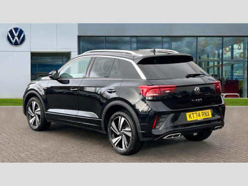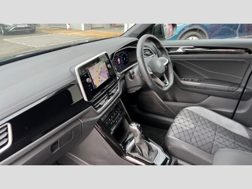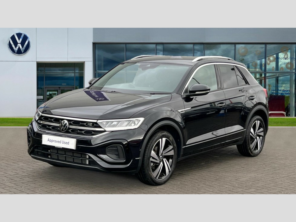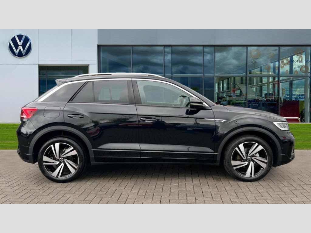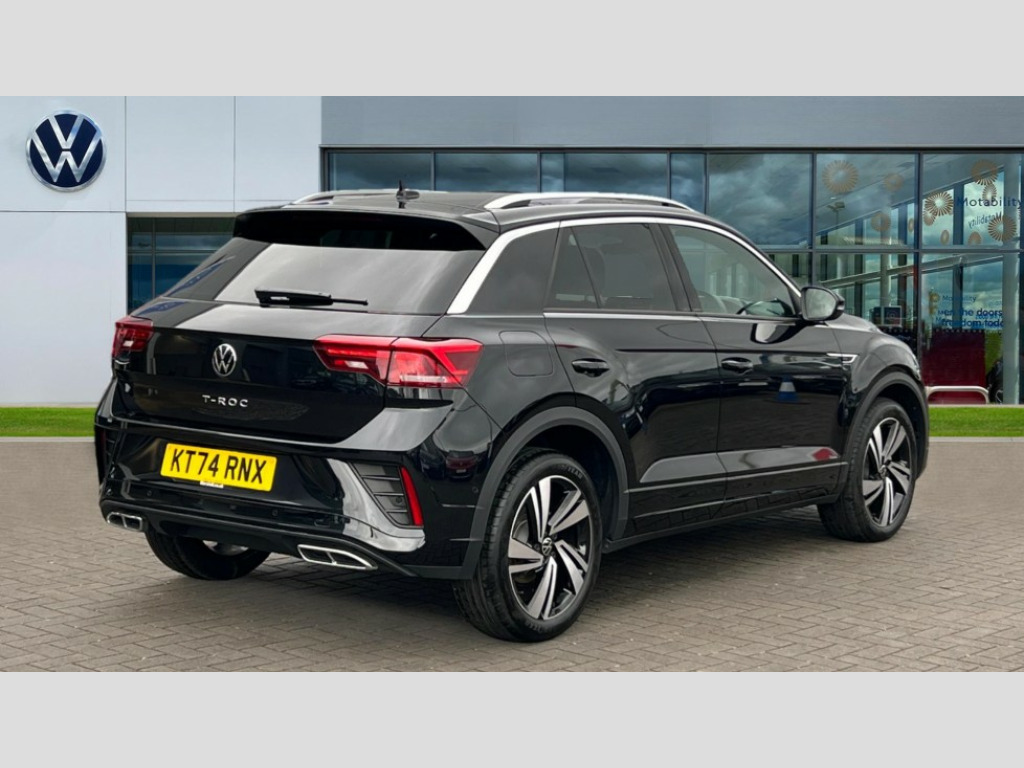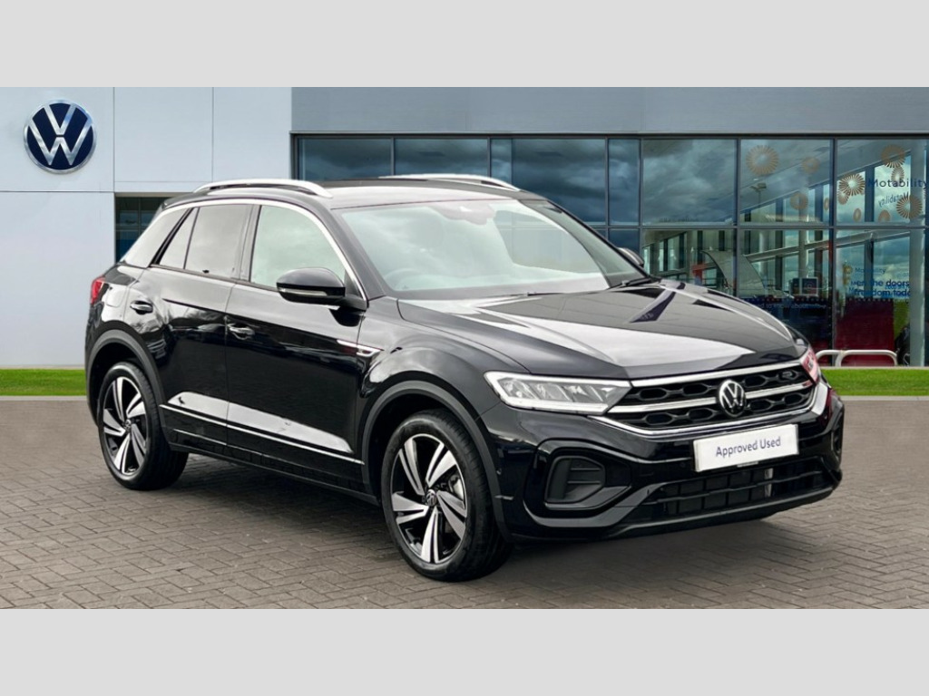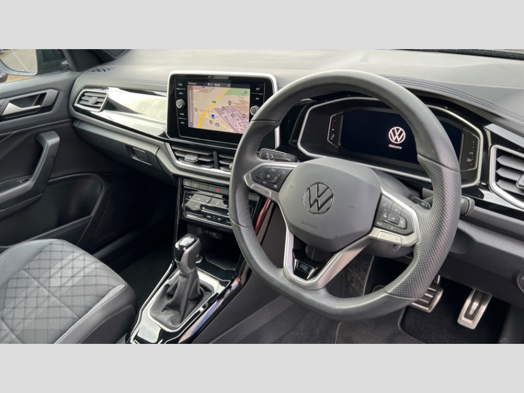 Volkswagen T-Roc 1.5 TSI R-Line 5dr DSG 10.25" Digital cockpit pro, Advanced driver attention and drowsiness monitor, Emergency call service, Lane keeping system Lane Assist, Mobile phone interface, Modified key software - reduce switch off time for key status change to Long no motion, Online services, Park assist including front and rear parking sensors, Service interval indicator, Tailgate/trunk lid release from outside, Think blue trainer driver tips and journey analysis, Warning sound and light for front seatbelts unfastened, Wireless app connect, Battery regeneration during braking, Start/stop function with battery regeneration, DAB Digital radio, Diversity antenna for FM reception, Front and rear 6 speakers, Music playback - MP3, WMA and AAC files, Premium USB cable in choice of either Apple or Android smartphone compatibility, SD card slot, Simultaneous pairing of 2 compatible mobile devices, Title and cover art display, We Connect and We Connect Plus functionality, Auto dimming interior rear view mirror, Automatic hazard lights activation under emergency braking, Automatic headlight control with LED separate daytime running lights with coming/leaving home function, Body coloured exterior mirror housings and door handles, Electrically adjustable and heated door mirrors, Extended roof spoiler, Exterior mirrors aspherical on driver side, convex on front passenger side, External USB type C socket and charging sockets, Front windscreen wiper with intermittent wipe and 4 position delay, Heated rear window, LED 3rd brake light, LED rear combination lamps, LED rear number plate lights, Power windows with comfort operation and circuit breaker, Privacy glass for rear side windows and rear window, R-Line design body coloured bumpers, Rain sensor, Rear exhaust tailpipe, Rear fog light on one side and reversing lights on both sides, Rear side wing doors, Rear wash/wipe with intermittent wipe setting, Remote electrically foldable door mirrors, puddle lights and reverse activated passenger's door mirror, 12V power socket in centre console, 3 rear head restraints, 3 seat bench in 2nd row, 4 load lashing points in luggage compartment, Air care climatronic air conditoning system with active combination filter and 2-zone temperature control, Black roof lining, Chrome plated decorative trims, Chrome plated radiator grille inserts, air vent surrounds and light switch surrounds, Door and side trim panel with leatherette insert, Front + rear carpet mats, Front centre armrest, Front cupholders x 2, Front footwell illumination, Front reading light, Front scuff plates with R Line logo, Front seat back storage pockets, Glove compartment door with light, Instrument lighting, white adjustable panel illumination, Interior ambient lighting and surround lighting, Interior light delay, Isofix child seat preparation, Leather gearshift handle, Load-through provision with cup holder when folded down ('Unsplit rear seat bench, split folding backrest, with centre armrest), Luggage compartment lighting, Single front passenger seat, Stainless steel pedals, Storage compartment in left and right luggage area, Storage compartment in rear doors, Storage compartments in driver and front passenger doors, Sunvisors with illuminated vanity mirrors, Variable boot floor, height adjustable and removable, Driver assistance pack without proactive passenger protection - T-Roc, 3 point height adj front seatbelts + pretensioners, 3 point seatbelts in outer rear with ECE label, ABS, Child locks on rear doors, City emergency braking and pedestrian monitoring, Driver and front passenger airbag with front passenger airbag deactivation, Driver and front passenger safety-optimised head restraints, Drivers seatbelt reminder, Electronic parking brake, Electronic Stability Control (ESC) inc EDL (Electronic Differential Lock) and ASR (Traction Control), Front and rear passengers curtain airbag system including front side airbags, Hill start assist, Predictive pedestrian protection, Rear disc brakes, Two tone horn, Tyre pressure loss indicator, Volkswagen roadside assistance, Piano black decorative inserts in dashboard and front door trim panels, Trims for alloy wheels