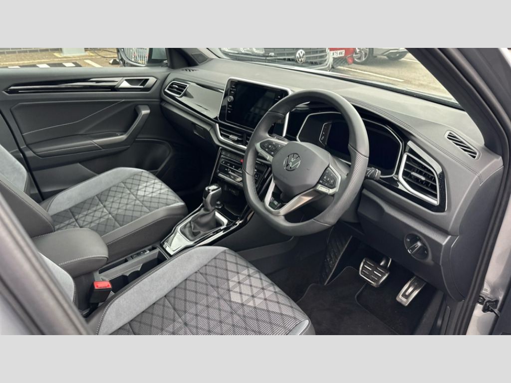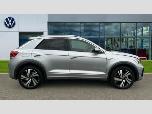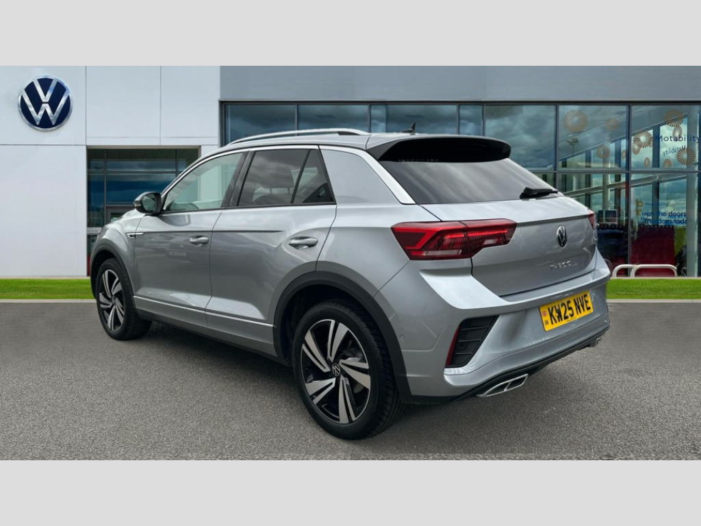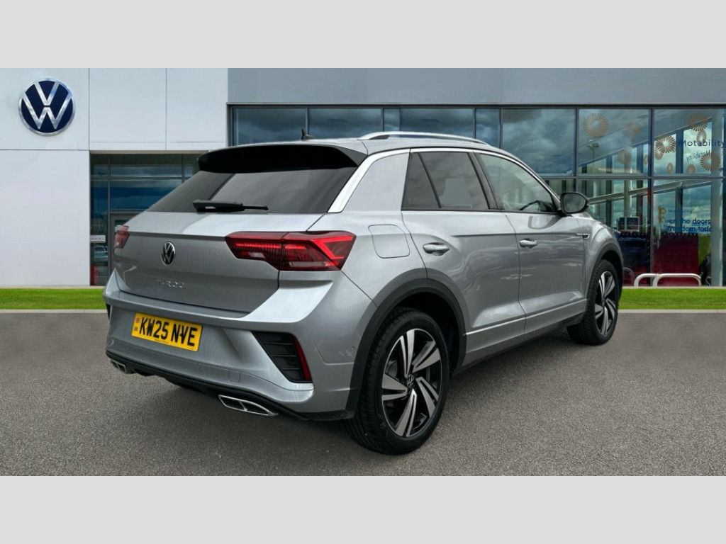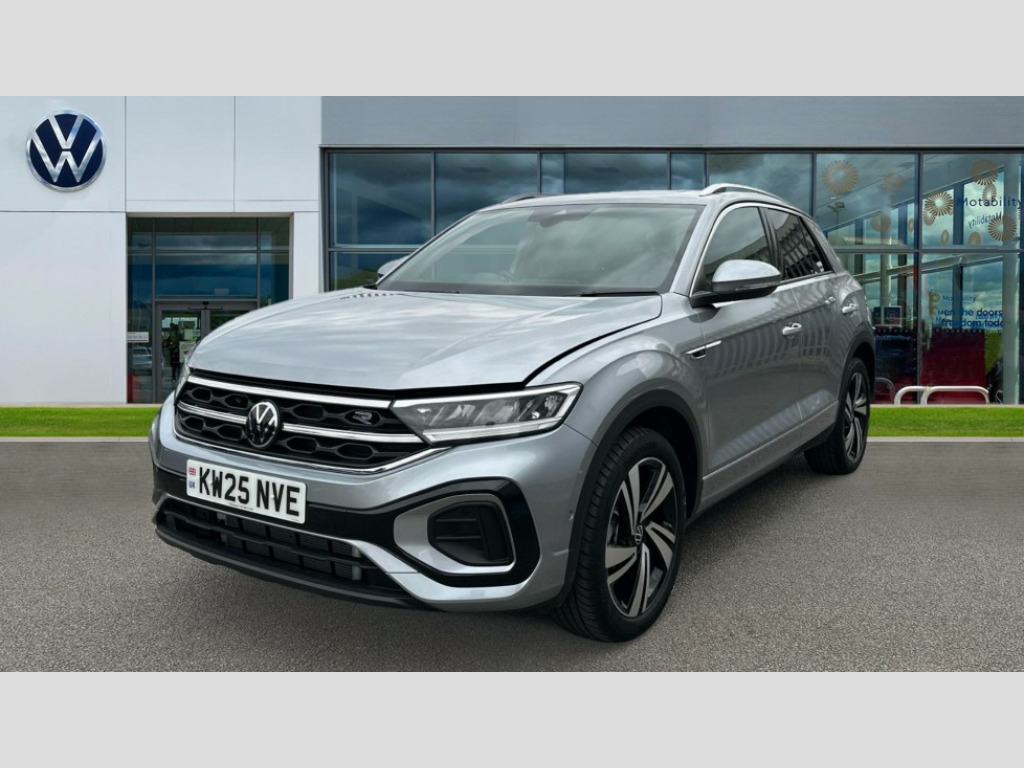 Volkswagen T-Roc 1.5 TSI R-Line 5dr DSG This 2025 Volkswagen T-Roc TSI R-Line presents an exceptional opportunity with its remarkably low mileage of just 2257 miles, making it practically new. As a Volkswagen manufacturer approved vehicle, it offers peace of mind, boasting a 1.5 litre Euro 6 petrol engine. This R Line trim model is equipped with desirable features including a tilting and sliding panoramic sunroof with a rear panoramic sunroof, a rear view camera for enhanced parking assistance, and stylish 18 inch Nevada alloy wheels in a black diamond turned finish.