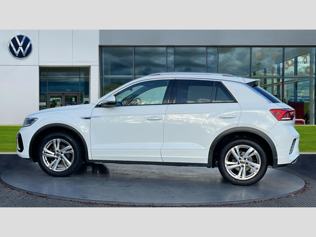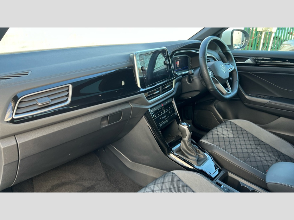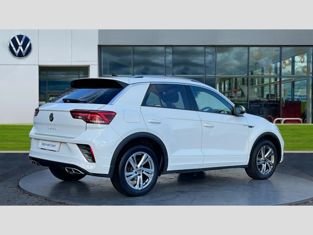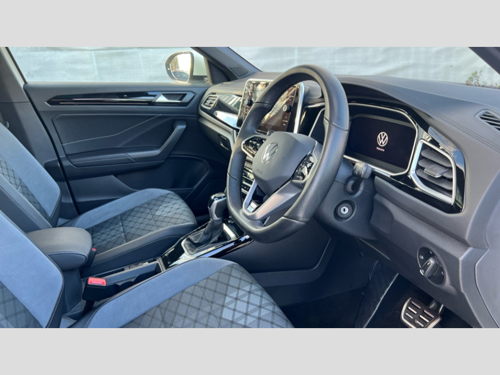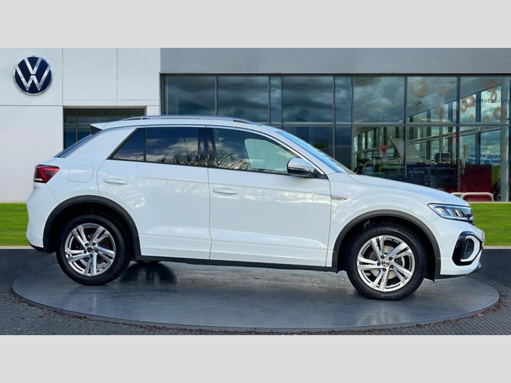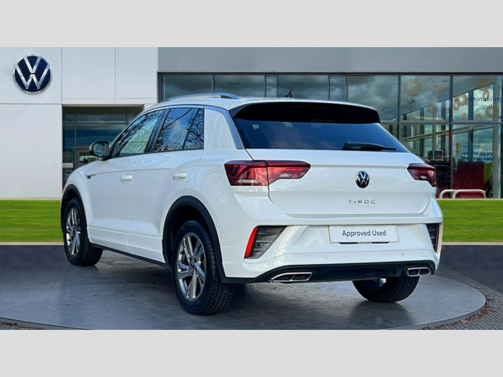 Volkswagen T-Roc 1.5 TSI R-Line 5dr DSG 10.25" Digital cockpit pro, Bluetooth mobile phone interface, Driver alert system with fatigue detection, Driver tips and journey analysis, Emergency call service, Lane keeping system Lane Assist, Modified key software - reduce switch off time for key status change to Long no motion, Online services, Park assist including front and rear parking sensors, Service interval indicator, Tailgate/trunk lid release from outside, Think blue trainer driver tips and journey analysis, Warning sound and light for front seatbelts unfastened, Wireless app connect, Battery regeneration during braking, Start/stop function with battery regeneration, Diversity antenna for FM reception, Front and rear 6 speakers, Music playback - MP3, WMA and AAC files, Premium USB cable in choice of either Apple or Android smartphone compatibility, SD card slot, Simultaneous pairing of 2 compatible mobile devices, Title and cover art display, We Connect and We Connect Plus functionality, 3rd brake light, Auto dimming interior rear view mirror, Automatic hazard lights activation under emergency braking, Automatic headlight control with LED separate daytime running lights with coming/leaving home function, Extended roof spoiler, Exterior mirrors aspherical on driver side, convex on front passenger side, External USB type C socket and charging sockets, Front windscreen wiper with intermittent wipe and 4 position delay, Heated rear window, LED Plus headlamps, LED rear combination lamps, LED rear number plate lights, LED tail lamp rear comination lamps, Power windows with comfort operation and circuit breaker, R-Line design body coloured bumpers, Rain sensor, Rear exhaust tailpipe, Rear fog light on one side and reversing lights on both sides, Rear side wing doors, Rear wash/wipe with intermittent wipe setting, Remote electrically foldable door mirrors, puddle lights and reverse activated passenger's door mirror, 12V power socket in centre console, 3 rear head restraints, 3 seat bench in 2nd row, 4 load lashing points in luggage compartment, Air care climatronic air conditoning system with active combination filter and 2-zone temperature control, Black roof lining, Chrome plated radiator grille inserts, air vent surrounds and light switch surrounds, Door and side trim panel with leatherette insert, Drawer under drivers seat, Front + rear carpet mats, Front centre armrest, Front cupholders x 2, Front footwell illumination, Front reading light, Front scuff plates with R logo, Instrument lighting, white adjustable panel illumination, Interior ambient lighting and surround lighting, Interior light delay, Isofix child seat preparation, Leather gearshift handle, Load-through provision with cup holder when folded down ('Unsplit rear seat bench, split folding backrest, with centre armrest), Luggage compartment lighting, Single front passenger seat, Stainless steel pedals, Storage compartment in left and right luggage area, Storage compartment in rear doors, Storage compartments in driver and front passenger doors, Sunvisors with illuminated vanity mirrors, Variable boot floor, height adjustable and removable, Driver assistance pack without proactive passenger protection - T-Roc, 3 point height adj front seatbelts + pretensioners, 3 point seatbelts in outer rear with ECE label, ABS, Child locks on rear doors, Driver and front passenger airbag with front passenger airbag deactivation, Driver and front passenger safety-optimised head restraints, Drivers seatbelt reminder, Electronic parking brake, Electronic Stability Control (ESC) inc EDL (Electronic Differential Lock) and ASR (Traction Control), Front and rear passengers curtain airbag system including front side airbags, Front assist with city emergency braking and pedestrian monitoring, Front seat side impact airbags, Hill start assist, Predictive pedestrian protection, Rear disc brakes, Single tone horn, Tyre pressure loss indicator, Volkswagen roadside assistance, Alarm with interior protection, Anti-theft alarm system with interior monitoring, backup horn, and towing protection, Remote central locking with SAFELOCK, radio remote control with 2 remote control folding keys, Trims for alloy wheels