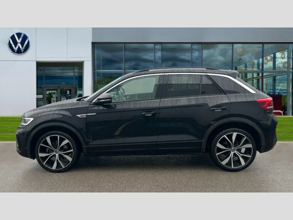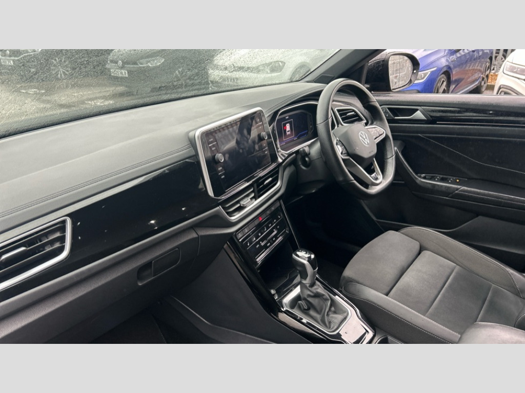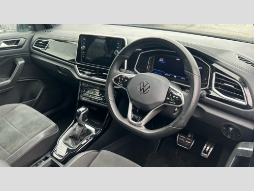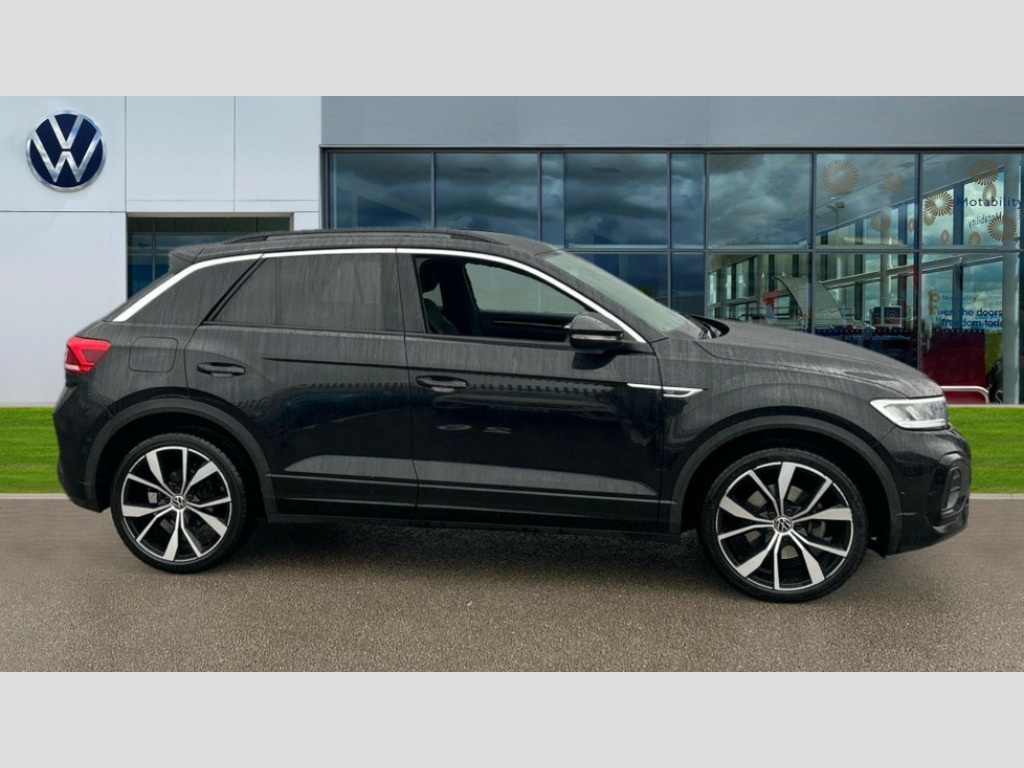 Volkswagen T-Roc 1.5 TSI R-Line 5dr DSG 10.25" Digital cockpit pro, Bluetooth mobile phone interface, Driver alert system with fatigue detection, Driver tips and journey analysis, Emergency call service, Lane keeping system Lane Assist, Modified key software - reduce switch off time for key status change to Long no motion, Online services, Park assist including front and rear parking sensors, Service interval indicator, Tailgate/trunk lid release from outside, Think blue trainer driver tips and journey analysis, Warning sound and light for front seatbelts unfastened, Wireless app connect, Battery regeneration during braking, Start/stop function with battery regeneration, Diversity antenna for FM reception, Front and rear 6 speakers, Music playback - MP3, WMA and AAC files, Premium USB cable in choice of either Apple or Android smartphone compatibility, SD card slot, Simultaneous pairing of 2 compatible mobile devices, Title and cover art display, We Connect and We Connect Plus functionality, 3rd brake light, Auto dimming interior rear view mirror, Automatic hazard lights activation under emergency braking, Automatic headlight control with LED separate daytime running lights with coming/leaving home function, Extended roof spoiler, Exterior mirrors aspherical on driver side, convex on front passenger side, External USB type C socket and charging sockets, Front windscreen wiper with intermittent wipe and 4 position delay, Heated rear window, LED Plus headlamps, LED rear combination lamps, LED rear number plate lights, LED tail lamp rear comination lamps, Power windows with comfort operation and circuit breaker, R-Line design body coloured bumpers, Rain sensor, Rear exhaust tailpipe, Rear fog light on one side and reversing lights on both sides, Rear side wing doors, Rear wash/wipe with intermittent wipe setting, Remote electrically foldable door mirrors, puddle lights and reverse activated passenger's door mirror, 12V power socket in centre console, 3 rear head restraints, 3 seat bench in 2nd row, 4 load lashing points in luggage compartment, Air care climatronic air conditoning system with active combination filter and 2-zone temperature control, Black roof lining, Chrome plated radiator grille inserts, air vent surrounds and light switch surrounds, Door and side trim panel with leatherette insert, Drawer under drivers seat, Front + rear carpet mats, Front centre armrest, Front cupholders x 2, Front footwell illumination, Front reading light, Front scuff plates with R logo, Instrument lighting, white adjustable panel illumination, Interior ambient lighting and surround lighting, Interior light delay, Isofix child seat preparation, Leather gearshift handle, Load-through provision with cup holder when folded down ('Unsplit rear seat bench, split folding backrest, with centre armrest), Luggage compartment lighting, Single front passenger seat, Stainless steel pedals, Storage compartment in left and right luggage area, Storage compartment in rear doors, Storage compartments in driver and front passenger doors, Sunvisors with illuminated vanity mirrors, Variable boot floor, height adjustable and removable, Driver assistance pack without proactive passenger protection - T-Roc, 3 point height adj front seatbelts + pretensioners, 3 point seatbelts in outer rear with ECE label, ABS, Child locks on rear doors, Driver and front passenger airbag with front passenger airbag deactivation, Driver and front passenger safety-optimised head restraints, Drivers seatbelt reminder, Electronic parking brake, Electronic Stability Control (ESC) inc EDL (Electronic Differential Lock) and ASR (Traction Control), Front and rear passengers curtain airbag system including front side airbags, Front assist with city emergency braking and pedestrian monitoring, Front seat side impact airbags, Hill start assist, Predictive pedestrian protection, Rear disc brakes, Single tone horn, Tyre pressure loss indicator, Volkswagen roadside assistance, Alarm with interior protection, Anti-theft alarm system with interior monitoring, backup horn, and towing protection, Remote central locking with SAFELOCK, radio remote control with 2 remote control folding keys, Trims for alloy wheels