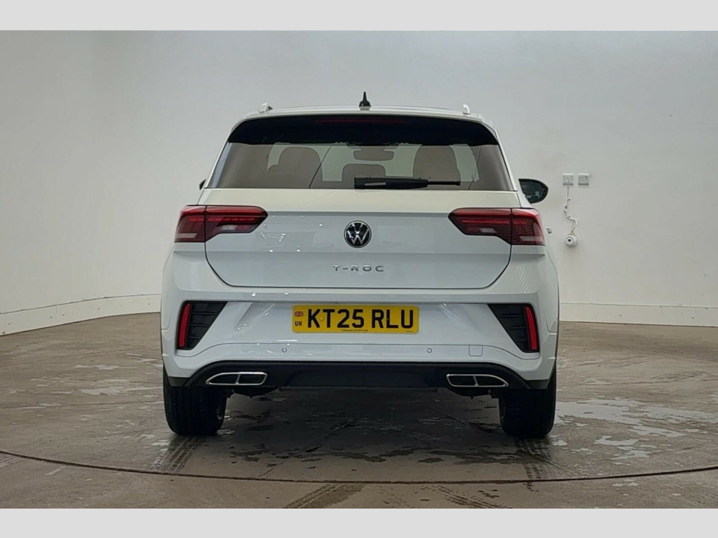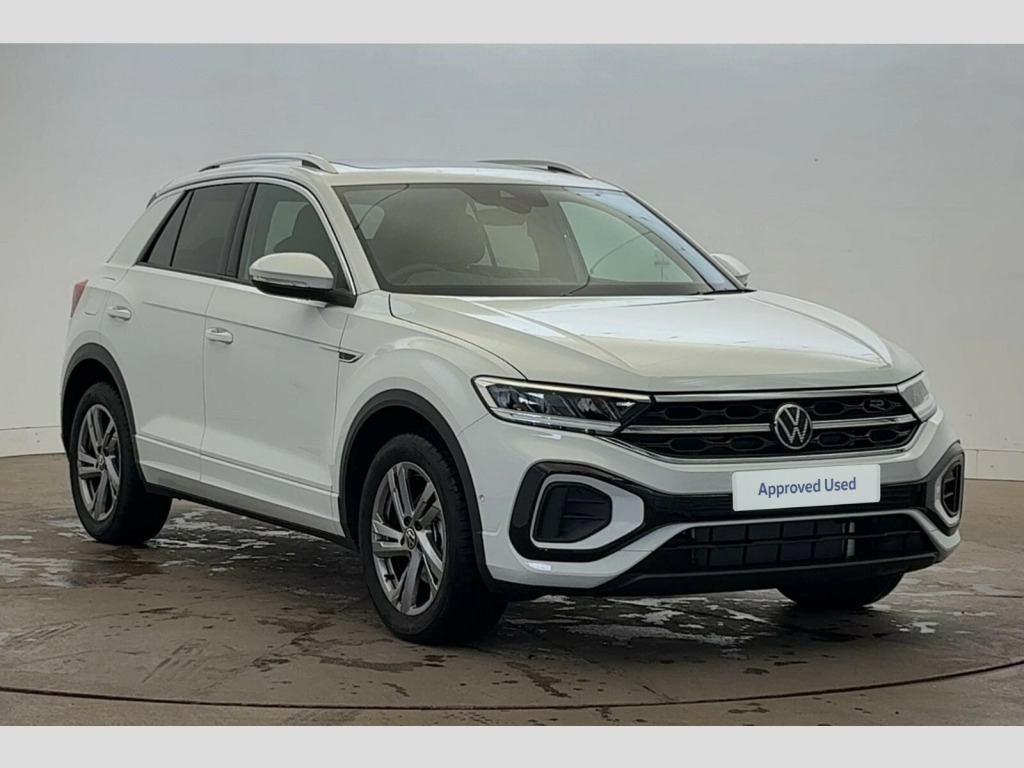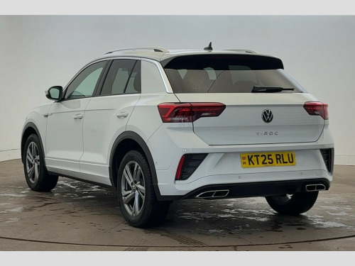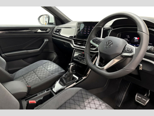 Volkswagen T-Roc 1.5 TSI R-Line 5dr DSG 10.25" Digital cockpit pro, Advanced driver attention and drowsiness monitor, Emergency call service, Lane keeping system Lane Assist, Mobile phone interface, Modified key software - reduce switch off time for key status change to Long no motion, Online services, Park assist including front and rear parking sensors, Service interval indicator, Tailgate/trunk lid release from outside, Think blue trainer driver tips and journey analysis, Warning sound and light for front seatbelts unfastened, Wireless app connect, Battery regeneration during braking, Start/stop function with battery regeneration, DAB Digital radio, Diversity antenna for FM reception, Front and rear 6 speakers, Music playback - MP3, WMA and AAC files, Premium USB cable in choice of either Apple or Android smartphone compatibility, SD card slot, Simultaneous pairing of 2 compatible mobile devices, Title and cover art display, We Connect and We Connect Plus functionality, Auto dimming interior rear view mirror, Automatic hazard lights activation under emergency braking, Automatic headlight control with LED separate daytime running lights with coming/leaving home function, Body coloured exterior mirror housings and door handles, Electrically adjustable and heated door mirrors, Extended roof spoiler, Exterior mirrors aspherical on driver side, convex on front passenger side, External USB type C socket and charging sockets, Front windscreen wiper with intermittent wipe and 4 position delay, Heated rear window, LED 3rd brake light, LED rear combination lamps, LED rear number plate lights, Power windows with comfort operation and circuit breaker, Privacy glass for rear side windows and rear window, R-Line design body coloured bumpers, Rain sensor, Rear exhaust tailpipe, Rear fog light on one side and reversing lights on both sides, Rear side wing doors, Rear wash/wipe with intermittent wipe setting, Remote electrically foldable door mirrors, puddle lights and reverse activated passenger's door mirror, 12V power socket in centre console, 3 rear head restraints, 3 seat bench in 2nd row, 4 load lashing points in luggage compartment, Air care climatronic air conditoning system with active combination filter and 2-zone temperature control, Black roof lining, Chrome plated decorative trims, Chrome plated radiator grille inserts, air vent surrounds and light switch surrounds, Door and side trim panel with leatherette insert, Front + rear carpet mats, Front centre armrest, Front cupholders x 2, Front footwell illumination, Front reading light, Front scuff plates with R Line logo, Front seat back storage pockets, Glove compartment door with light, Instrument lighting, white adjustable panel illumination, Interior ambient lighting and surround lighting, Interior light delay, Isofix child seat preparation, Leather gearshift handle, Load-through provision with cup holder when folded down ('Unsplit rear seat bench, split folding backrest, with centre armrest), Luggage compartment lighting, Single front passenger seat, Stainless steel pedals, Storage compartment in left and right luggage area, Storage compartment in rear doors, Storage compartments in driver and front passenger doors, Sunvisors with illuminated vanity mirrors, Variable boot floor, height adjustable and removable, Driver assistance pack without proactive passenger protection - T-Roc, 3 point height adj front seatbelts + pretensioners, 3 point seatbelts in outer rear with ECE label, ABS, Child locks on rear doors, City emergency braking and pedestrian monitoring, Driver and front passenger airbag with front passenger airbag deactivation, Driver and front passenger safety-optimised head restraints, Drivers seatbelt reminder, Electronic parking brake, Electronic Stability Control (ESC) inc EDL (Electronic Differential Lock) and ASR (Traction Control), Front and rear passengers curtain airbag system including front side airbags, Hill start assist, Predictive pedestrian protection, Rear disc brakes, Two tone horn, Tyre pressure loss indicator, Volkswagen roadside assistance, Piano black decorative inserts in dashboard and front door trim panels, Trims for alloy wheels