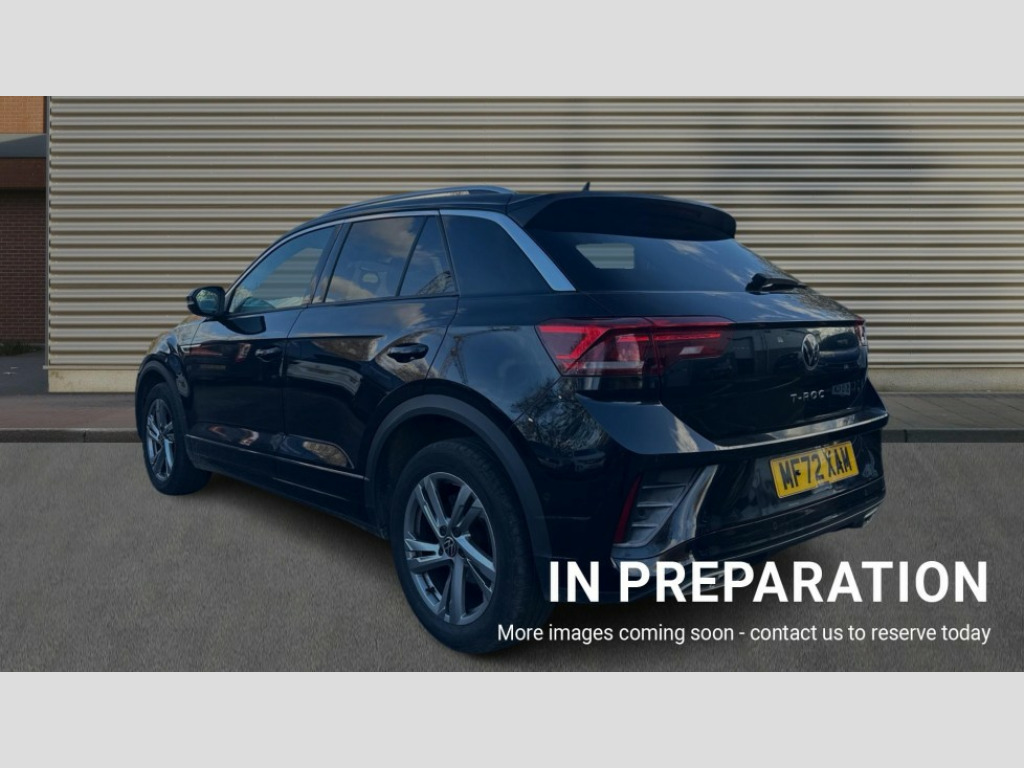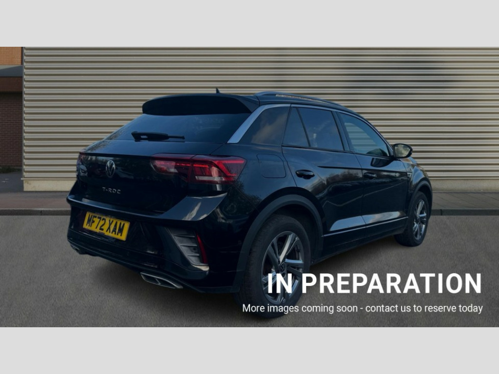 Volkswagen T-Roc 1.5 TSI R-Line 5dr DSG 10.25" Digital cockpit pro, Bluetooth mobile phone interface, Driver alert system with fatigue detection, Driver tips and journey analysis, Emergency call service, Lane keeping system Lane Assist, Modified key software - reduce switch off time for key status change to Long no motion, Online services, Park assist including front and rear parking sensors, Service interval indicator, Tailgate/trunk lid release from outside, Think blue trainer driver tips and journey analysis, Warning sound and light for front seatbelts unfastened, Wireless app connect, Battery regeneration during braking, Start/stop function with battery regeneration, Diversity antenna for FM reception, Front and rear 6 speakers, Music playback - MP3, WMA and AAC files, Premium USB cable in choice of either Apple or Android smartphone compatibility, SD card slot, Simultaneous pairing of 2 compatible mobile devices, Title and cover art display, We Connect and We Connect Plus functionality, 3rd brake light, Auto dimming interior rear view mirror, Automatic hazard lights activation under emergency braking, Automatic headlight control with LED separate daytime running lights with coming/leaving home function, Extended roof spoiler, Exterior mirrors aspherical on driver side, convex on front passenger side, External USB type C socket and charging sockets, Front windscreen wiper with intermittent wipe and 4 position delay, Heated rear window, LED Plus headlamps, LED rear combination lamps, LED rear number plate lights, LED tail lamp rear comination lamps, Power windows with comfort operation and circuit breaker, R-Line design body coloured bumpers, Rain sensor, Rear exhaust tailpipe, Rear fog light on one side and reversing lights on both sides, Rear side wing doors, Rear wash/wipe with intermittent wipe setting, Remote electrically foldable door mirrors, puddle lights and reverse activated passenger's door mirror, 12V power socket in centre console, 3 rear head restraints, 3 seat bench in 2nd row, 4 load lashing points in luggage compartment, Air care climatronic air conditoning system with active combination filter and 2-zone temperature control, Black roof lining, Chrome plated radiator grille inserts, air vent surrounds and light switch surrounds, Door and side trim panel with leatherette insert, Drawer under drivers seat, Front + rear carpet mats, Front centre armrest, Front cupholders x 2, Front footwell illumination, Front reading light, Front scuff plates with R logo, Instrument lighting, white adjustable panel illumination, Interior ambient lighting and surround lighting, Interior light delay, Isofix child seat preparation, Leather gearshift handle, Load-through provision with cup holder when folded down ('Unsplit rear seat bench, split folding backrest, with centre armrest), Luggage compartment lighting, Single front passenger seat, Stainless steel pedals, Storage compartment in left and right luggage area, Storage compartment in rear doors, Storage compartments in driver and front passenger doors, Sunvisors with illuminated vanity mirrors, Variable boot floor, height adjustable and removable, Driver assistance pack without proactive passenger protection - T-Roc, 3 point height adj front seatbelts + pretensioners, 3 point seatbelts in outer rear with ECE label, ABS, Child locks on rear doors, Driver and front passenger airbag with front passenger airbag deactivation, Driver and front passenger safety-optimised head restraints, Drivers seatbelt reminder, Electronic parking brake, Electronic Stability Control (ESC) inc EDL (Electronic Differential Lock) and ASR (Traction Control), Front and rear passengers curtain airbag system including front side airbags, Front assist with city emergency braking and pedestrian monitoring, Front seat side impact airbags, Hill start assist, Predictive pedestrian protection, Rear disc brakes, Single tone horn, Tyre pressure loss indicator, Volkswagen roadside assistance, Alarm with interior protection, Anti-theft alarm system with interior monitoring, backup horn, and towing protection, Remote central locking with SAFELOCK, radio remote control with 2 remote control folding keys, Trims for alloy wheels