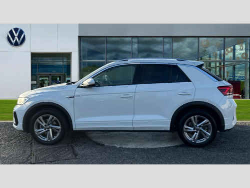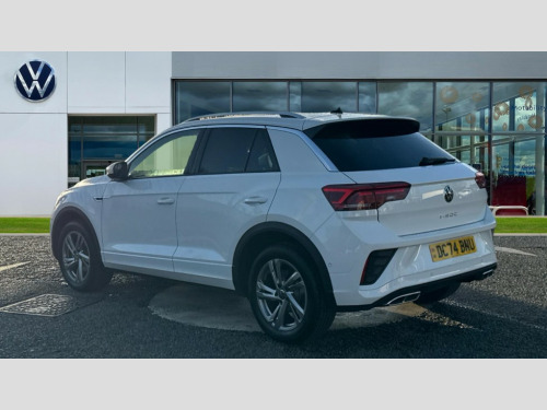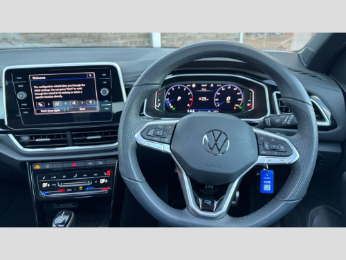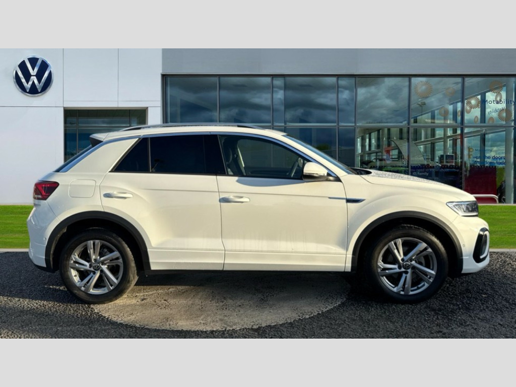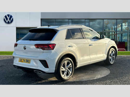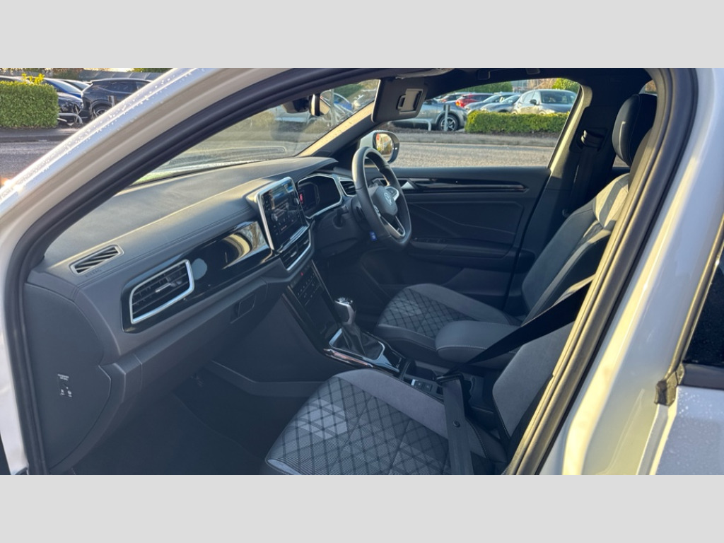 Volkswagen T-Roc 1.5 TSI R-Line 5dr DSG 10.25" Digital cockpit pro, Advanced driver attention and drowsiness monitor, Emergency call service, Lane keeping system Lane Assist, Mobile phone interface, Modified key software - reduce switch off time for key status change to Long no motion, Online services, Park assist including front and rear parking sensors, Service interval indicator, Tailgate/trunk lid release from outside, Think blue trainer driver tips and journey analysis, Warning sound and light for front seatbelts unfastened, Wireless app connect, Battery regeneration during braking, Start/stop function with battery regeneration, DAB Digital radio, Diversity antenna for FM reception, Front and rear 6 speakers, Music playback - MP3, WMA and AAC files, Premium USB cable in choice of either Apple or Android smartphone compatibility, SD card slot, Simultaneous pairing of 2 compatible mobile devices, Title and cover art display, We Connect and We Connect Plus functionality, Auto dimming interior rear view mirror, Automatic hazard lights activation under emergency braking, Automatic headlight control with LED separate daytime running lights with coming/leaving home function, Body coloured exterior mirror housings and door handles, Electrically adjustable and heated door mirrors, Extended roof spoiler, Exterior mirrors aspherical on driver side, convex on front passenger side, External USB type C socket and charging sockets, Front windscreen wiper with intermittent wipe and 4 position delay, Heated rear window, LED 3rd brake light, LED rear combination lamps, LED rear number plate lights, Power windows with comfort operation and circuit breaker, Privacy glass for rear side windows and rear window, R-Line design body coloured bumpers, Rain sensor, Rear exhaust tailpipe, Rear fog light on one side and reversing lights on both sides, Rear side wing doors, Rear wash/wipe with intermittent wipe setting, Remote electrically foldable door mirrors, puddle lights and reverse activated passenger's door mirror, 12V power socket in centre console, 3 rear head restraints, 3 seat bench in 2nd row, 4 load lashing points in luggage compartment, Air care climatronic air conditoning system with active combination filter and 2-zone temperature control, Black roof lining, Chrome plated decorative trims, Chrome plated radiator grille inserts, air vent surrounds and light switch surrounds, Door and side trim panel with leatherette insert, Front + rear carpet mats, Front centre armrest, Front cupholders x 2, Front footwell illumination, Front reading light, Front scuff plates with R Line logo, Front seat back storage pockets, Glove compartment door with light, Instrument lighting, white adjustable panel illumination, Interior ambient lighting and surround lighting, Interior light delay, Isofix child seat preparation, Leather gearshift handle, Load-through provision with cup holder when folded down ('Unsplit rear seat bench, split folding backrest, with centre armrest), Luggage compartment lighting, Single front passenger seat, Stainless steel pedals, Storage compartment in left and right luggage area, Storage compartment in rear doors, Storage compartments in driver and front passenger doors, Sunvisors with illuminated vanity mirrors, Variable boot floor, height adjustable and removable, Driver assistance pack without proactive passenger protection - T-Roc, 3 point height adj front seatbelts + pretensioners, 3 point seatbelts in outer rear with ECE label, ABS, Child locks on rear doors, City emergency braking and pedestrian monitoring, Driver and front passenger airbag with front passenger airbag deactivation, Driver and front passenger safety-optimised head restraints, Drivers seatbelt reminder, Electronic parking brake, Electronic Stability Control (ESC) inc EDL (Electronic Differential Lock) and ASR (Traction Control), Front and rear passengers curtain airbag system including front side airbags, Hill start assist, Predictive pedestrian protection, Rear disc brakes, Two tone horn, Tyre pressure loss indicator, Volkswagen roadside assistance, Piano black decorative inserts in dashboard and front door trim panels, Trims for alloy wheels