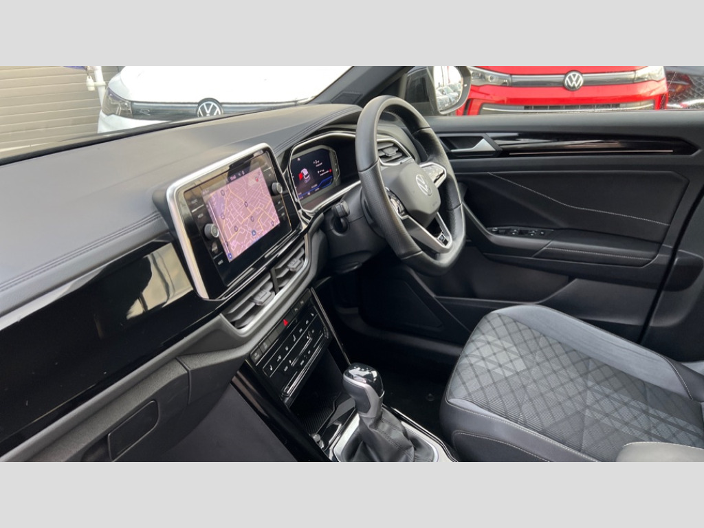 Volkswagen T-Roc 1.5 TSI R-Line 5dr DSG 10.25" Digital cockpit pro, Bluetooth mobile phone interface, Driver alert system with fatigue detection, Driver tips and journey analysis, Emergency call service, Lane keeping system Lane Assist, Modified key software - reduce switch off time for key status change to Long no motion, Online services, Park assist including front and rear parking sensors, Service interval indicator, Tailgate/trunk lid release from outside, Think blue trainer driver tips and journey analysis, Warning sound and light for front seatbelts unfastened, Wireless app connect, Battery regeneration during braking, Start/stop function with battery regeneration, Diversity antenna for FM reception, Front and rear 6 speakers, Music playback - MP3, WMA and AAC files, Premium USB cable in choice of either Apple or Android smartphone compatibility, SD card slot, Simultaneous pairing of 2 compatible mobile devices, Title and cover art display, We Connect and We Connect Plus functionality, 3rd brake light, Auto dimming interior rear view mirror, Automatic hazard lights activation under emergency braking, Automatic headlight control with LED separate daytime running lights with coming/leaving home function, Extended roof spoiler, Exterior mirrors aspherical on driver side, convex on front passenger side, External USB type C socket and charging sockets, Front windscreen wiper with intermittent wipe and 4 position delay, Heated rear window, LED Plus headlamps, LED rear combination lamps, LED rear number plate lights, LED tail lamp rear comination lamps, Power windows with comfort operation and circuit breaker, R-Line design body coloured bumpers, Rain sensor, Rear exhaust tailpipe, Rear fog light on one side and reversing lights on both sides, Rear side wing doors, Rear wash/wipe with intermittent wipe setting, Remote electrically foldable door mirrors, puddle lights and reverse activated passenger's door mirror, 12V power socket in centre console, 3 rear head restraints, 3 seat bench in 2nd row, 4 load lashing points in luggage compartment, Air care climatronic air conditoning system with active combination filter and 2-zone temperature control, Black roof lining, Chrome plated radiator grille inserts, air vent surrounds and light switch surrounds, Door and side trim panel with leatherette insert, Drawer under drivers seat, Front + rear carpet mats, Front centre armrest, Front cupholders x 2, Front footwell illumination, Front reading light, Front scuff plates with R logo, Instrument lighting, white adjustable panel illumination, Interior ambient lighting and surround lighting, Interior light delay, Isofix child seat preparation, Leather gearshift handle, Load-through provision with cup holder when folded down ('Unsplit rear seat bench, split folding backrest, with centre armrest), Luggage compartment lighting, Single front passenger seat, Stainless steel pedals, Storage compartment in left and right luggage area, Storage compartment in rear doors, Storage compartments in driver and front passenger doors, Sunvisors with illuminated vanity mirrors, Variable boot floor, height adjustable and removable, Driver assistance pack without proactive passenger protection - T-Roc, 3 point height adj front seatbelts + pretensioners, 3 point seatbelts in outer rear with ECE label, ABS, Child locks on rear doors, Driver and front passenger airbag with front passenger airbag deactivation, Driver and front passenger safety-optimised head restraints, Drivers seatbelt reminder, Electronic parking brake, Electronic Stability Control (ESC) inc EDL (Electronic Differential Lock) and ASR (Traction Control), Front and rear passengers curtain airbag system including front side airbags, Front assist with city emergency braking and pedestrian monitoring, Front seat side impact airbags, Hill start assist, Predictive pedestrian protection, Rear disc brakes, Single tone horn, Tyre pressure loss indicator, Volkswagen roadside assistance, Alarm with interior protection, Anti-theft alarm system with interior monitoring, backup horn, and towing protection, Remote central locking with SAFELOCK, radio remote control with 2 remote control folding keys, Trims for alloy wheels