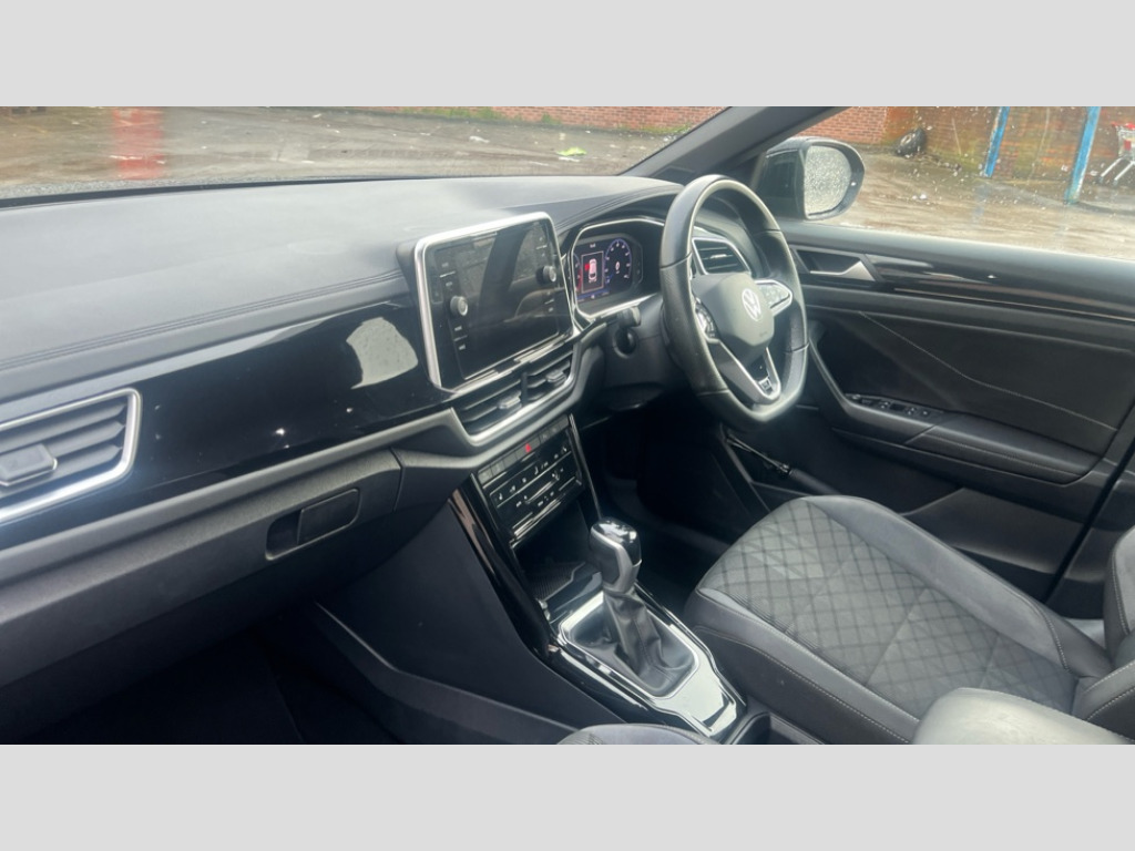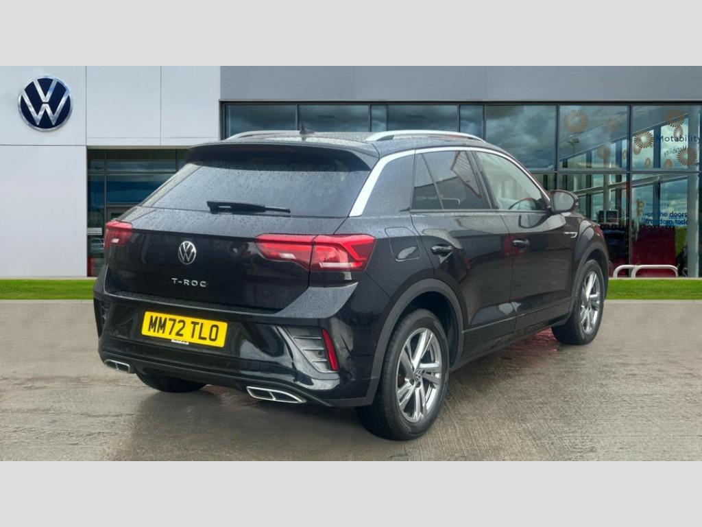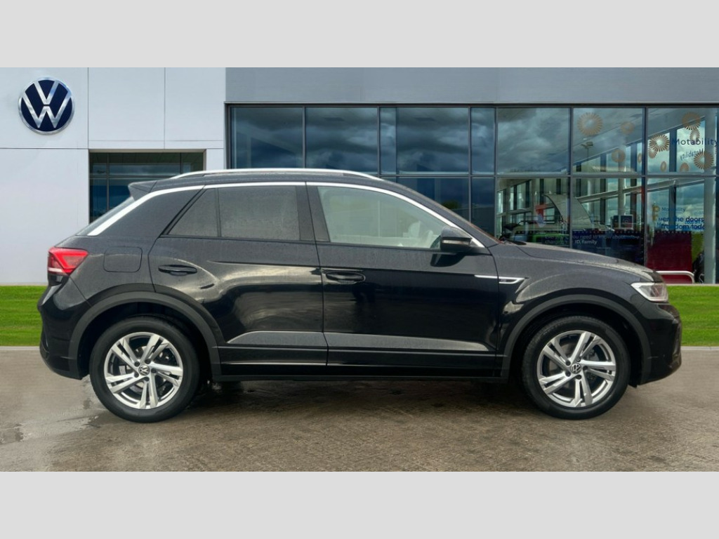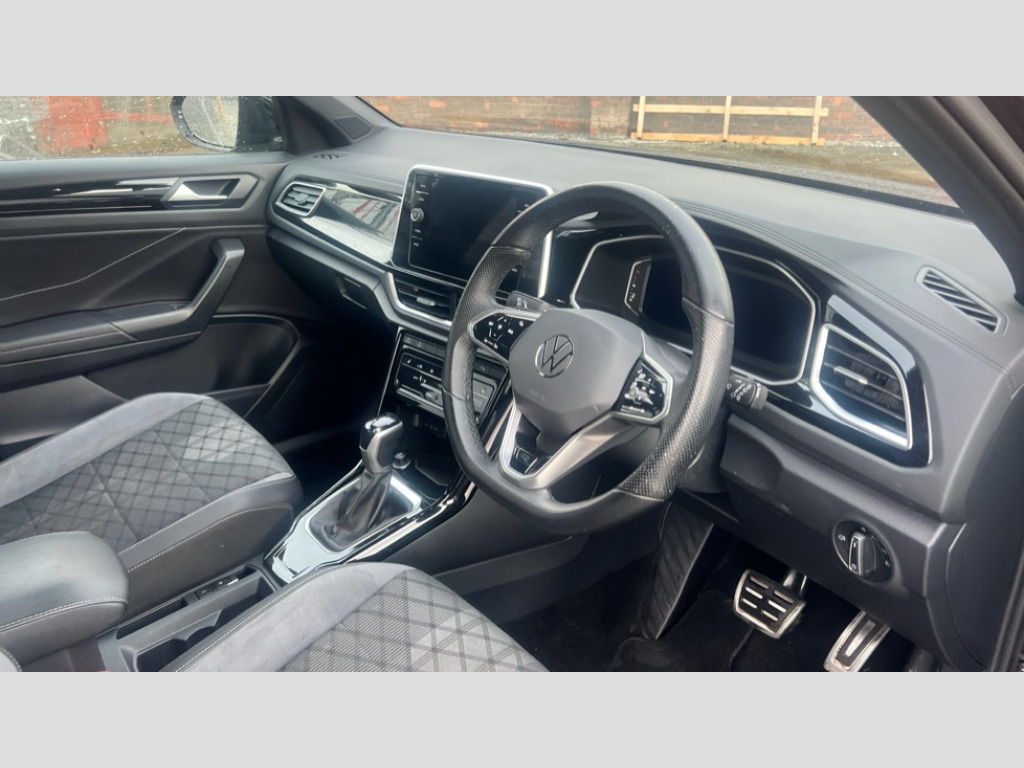 Volkswagen T-Roc 1.5 TSI R-Line 5dr DSG 10.25" Digital cockpit pro, Bluetooth mobile phone interface, Driver alert system with fatigue detection, Driver tips and journey analysis, Emergency call service, Lane keeping system Lane Assist, Modified key software - reduce switch off time for key status change to Long no motion, Online services, Park assist including front and rear parking sensors, Service interval indicator, Tailgate/trunk lid release from outside, Think blue trainer driver tips and journey analysis, Warning sound and light for front seatbelts unfastened, Wireless app connect, Battery regeneration during braking, Start/stop function with battery regeneration, Diversity antenna for FM reception, Front and rear 6 speakers, Music playback - MP3, WMA and AAC files, Premium USB cable in choice of either Apple or Android smartphone compatibility, SD card slot, Simultaneous pairing of 2 compatible mobile devices, Title and cover art display, We Connect and We Connect Plus functionality, 3rd brake light, Auto dimming interior rear view mirror, Automatic hazard lights activation under emergency braking, Automatic headlight control with LED separate daytime running lights with coming/leaving home function, Extended roof spoiler, Exterior mirrors aspherical on driver side, convex on front passenger side, External USB type C socket and charging sockets, Front windscreen wiper with intermittent wipe and 4 position delay, Heated rear window, LED Plus headlamps, LED rear combination lamps, LED rear number plate lights, LED tail lamp rear comination lamps, Power windows with comfort operation and circuit breaker, R-Line design body coloured bumpers, Rain sensor, Rear exhaust tailpipe, Rear fog light on one side and reversing lights on both sides, Rear side wing doors, Rear wash/wipe with intermittent wipe setting, Remote electrically foldable door mirrors, puddle lights and reverse activated passenger's door mirror, 12V power socket in centre console, 3 rear head restraints, 3 seat bench in 2nd row, 4 load lashing points in luggage compartment, Air care climatronic air conditoning system with active combination filter and 2-zone temperature control, Black roof lining, Chrome plated radiator grille inserts, air vent surrounds and light switch surrounds, Door and side trim panel with leatherette insert, Drawer under drivers seat, Front + rear carpet mats, Front centre armrest, Front cupholders x 2, Front footwell illumination, Front reading light, Front scuff plates with R logo, Instrument lighting, white adjustable panel illumination, Interior ambient lighting and surround lighting, Interior light delay, Isofix child seat preparation, Leather gearshift handle, Load-through provision with cup holder when folded down ('Unsplit rear seat bench, split folding backrest, with centre armrest), Luggage compartment lighting, Single front passenger seat, Stainless steel pedals, Storage compartment in left and right luggage area, Storage compartment in rear doors, Storage compartments in driver and front passenger doors, Sunvisors with illuminated vanity mirrors, Variable boot floor, height adjustable and removable, Driver assistance pack without proactive passenger protection - T-Roc, 3 point height adj front seatbelts + pretensioners, 3 point seatbelts in outer rear with ECE label, ABS, Child locks on rear doors, Driver and front passenger airbag with front passenger airbag deactivation, Driver and front passenger safety-optimised head restraints, Drivers seatbelt reminder, Electronic parking brake, Electronic Stability Control (ESC) inc EDL (Electronic Differential Lock) and ASR (Traction Control), Front and rear passengers curtain airbag system including front side airbags, Front assist with city emergency braking and pedestrian monitoring, Front seat side impact airbags, Hill start assist, Predictive pedestrian protection, Rear disc brakes, Single tone horn, Tyre pressure loss indicator, Volkswagen roadside assistance, Alarm with interior protection, Anti-theft alarm system with interior monitoring, backup horn, and towing protection, Remote central locking with SAFELOCK, radio remote control with 2 remote control folding keys, Trims for alloy wheels
