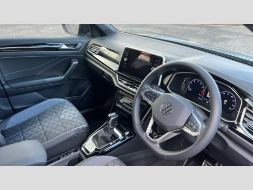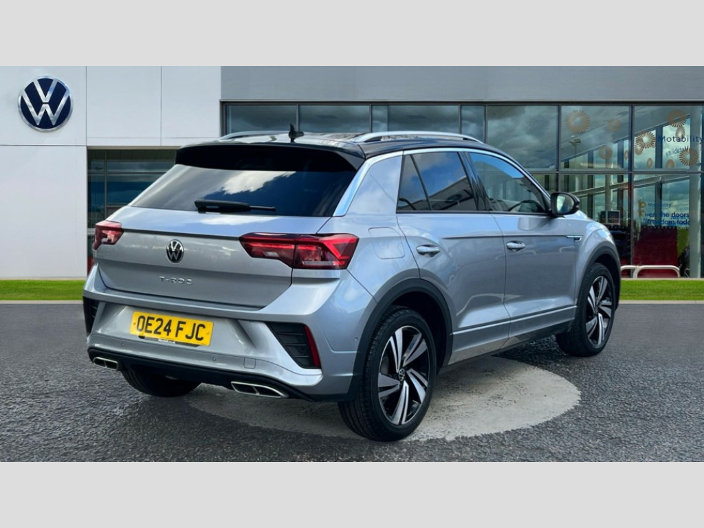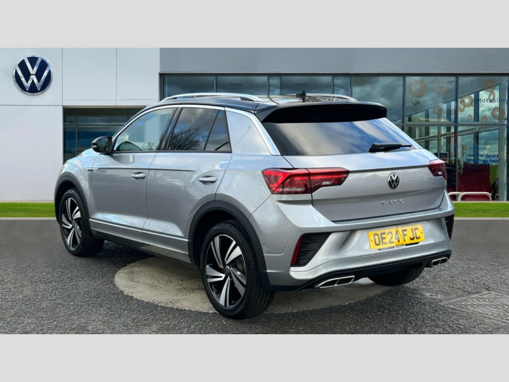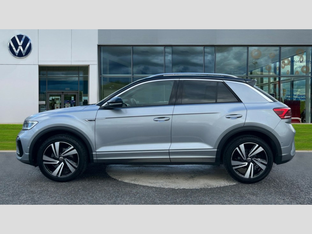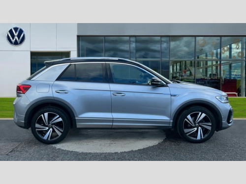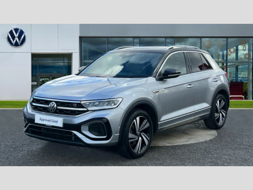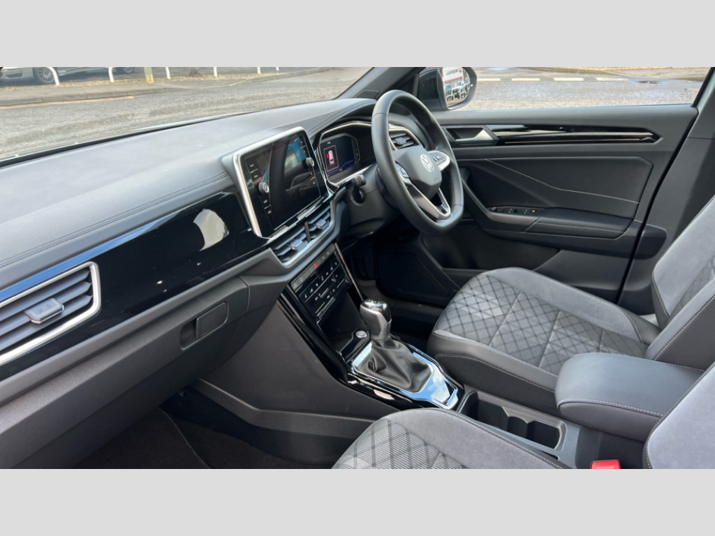 Volkswagen T-Roc 1.5 TSI R-Line 5dr DSG 10.25" Digital cockpit pro, Advanced driver attention and drowsiness monitor, Bluetooth mobile phone interface, Emergency call service, Lane keeping system Lane Assist, Modified key software - reduce switch off time for key status change to Long no motion, Online services, Park assist including front and rear parking sensors, Service interval indicator, Tailgate/trunk lid release from outside, Think blue trainer driver tips and journey analysis, Warning sound and light for front seatbelts unfastened, Wireless app connect, Battery regeneration during braking, Start/stop function with battery regeneration, Diversity antenna for FM reception, Music playback - MP3, WMA and AAC files, Premium USB cable in choice of either Apple or Android smartphone compatibility, SD card slot, Simultaneous pairing of 2 compatible mobile devices, Title and cover art display, We Connect and We Connect Plus functionality, 3rd brake light, Auto dimming interior rear view mirror, Automatic hazard lights activation under emergency braking, Automatic headlight control with LED separate daytime running lights with coming/leaving home function, Electrically adjustable and heated door mirrors, Extended roof spoiler, Exterior mirrors aspherical on driver side, convex on front passenger side, External USB type C socket and charging sockets, Front windscreen wiper with intermittent wipe and 4 position delay, Heated rear window, LED rear combination lamps, LED rear number plate lights, Power windows with comfort operation and circuit breaker, R-Line design body coloured bumpers, Rain sensor, Rear exhaust tailpipe, Rear fog light on one side and reversing lights on both sides, Rear side wing doors, Rear wash/wipe with intermittent wipe setting, Remote electrically foldable door mirrors, puddle lights and reverse activated passenger's door mirror, 12V power socket in centre console, 3 rear head restraints, 3 seat bench in 2nd row, 4 load lashing points in luggage compartment, Air care climatronic air conditoning system with active combination filter and 2-zone temperature control, Black roof lining, Chrome plated radiator grille inserts, air vent surrounds and light switch surrounds, Door and side trim panel with leatherette insert, Front + rear carpet mats, Front centre armrest, Front cupholders x 2, Front footwell illumination, Front reading light, Front scuff plates with R Line logo, Front seat back storage pockets, Glove compartment door with light, Instrument lighting, white adjustable panel illumination, Interior ambient lighting and surround lighting, Interior light delay, Isofix child seat preparation, Leather gearshift handle, Load-through provision with cup holder when folded down ('Unsplit rear seat bench, split folding backrest, with centre armrest), Luggage compartment lighting, Single front passenger seat, Stainless steel pedals, Storage compartment in left and right luggage area, Storage compartment in rear doors, Storage compartments in driver and front passenger doors, Sunvisors with illuminated vanity mirrors, Variable boot floor, height adjustable and removable, Driver assistance pack without proactive passenger protection - T-Roc, 3 point height adj front seatbelts + pretensioners, 3 point seatbelts in outer rear with ECE label, ABS, Child locks on rear doors, City emergency braking and pedestrian monitoring, Driver and front passenger airbag with front passenger airbag deactivation, Driver and front passenger safety-optimised head restraints, Drivers seatbelt reminder, Electronic parking brake, Electronic Stability Control (ESC) inc EDL (Electronic Differential Lock) and ASR (Traction Control), Front and rear passengers curtain airbag system including front side airbags, Hill start assist, Predictive pedestrian protection, Rear disc brakes, Two tone horn, Tyre pressure loss indicator, Volkswagen roadside assistance, Anti-theft alarm system with interior monitoring, backup horn, and towing protection, Remote central locking with SAFELOCK, radio remote control with 2 remote control folding keys, Trims for alloy wheels