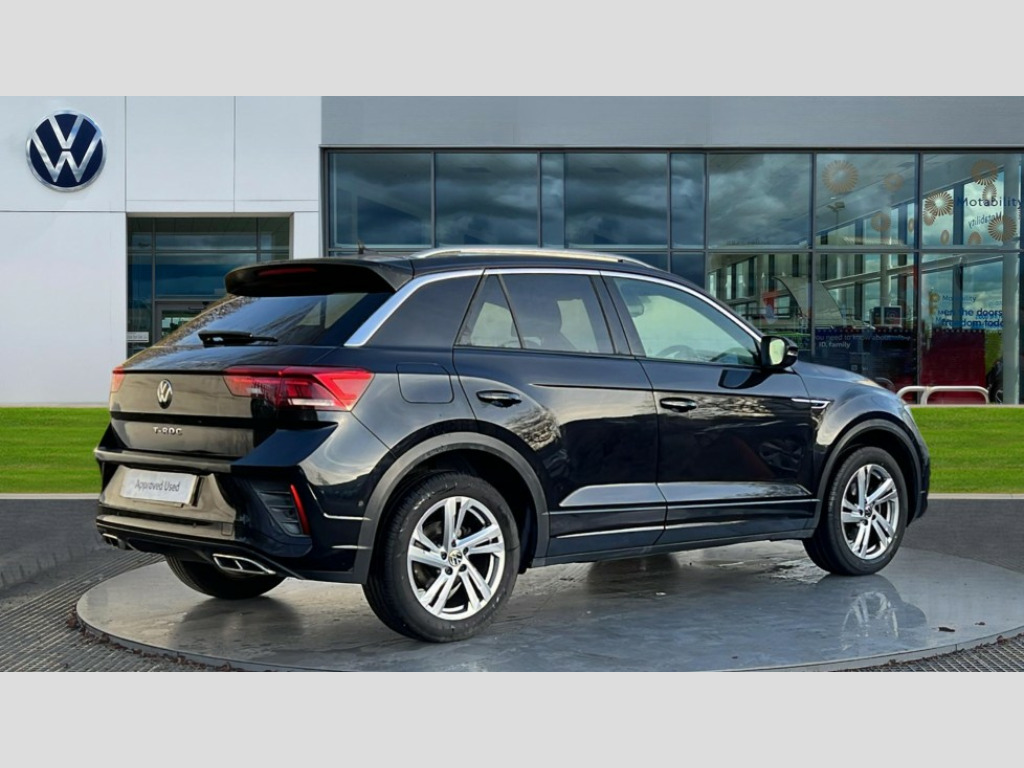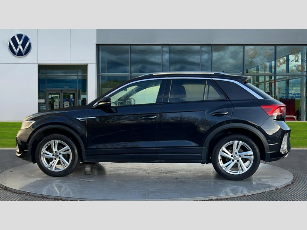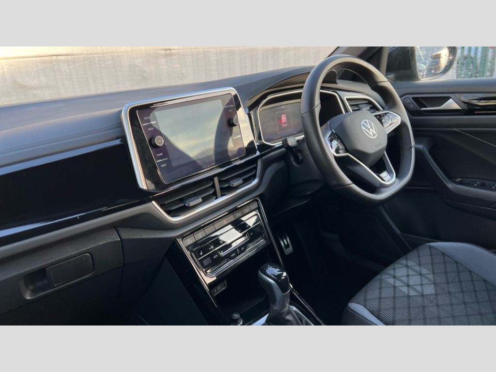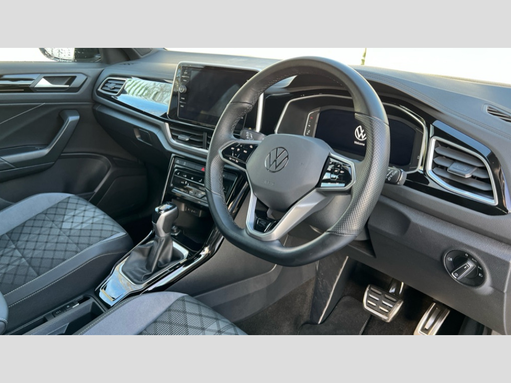 Volkswagen T-Roc 1.5 TSI R-Line 5dr DSG 10.25" Digital cockpit pro, Bluetooth mobile phone interface, Driver alert system with fatigue detection, Driver tips and journey analysis, Emergency call service, Lane keeping system Lane Assist, Modified key software - reduce switch off time for key status change to Long no motion, Online services, Park assist including front and rear parking sensors, Service interval indicator, Tailgate/trunk lid release from outside, Think blue trainer driver tips and journey analysis, Warning sound and light for front seatbelts unfastened, Wireless app connect, Battery regeneration during braking, Start/stop function with battery regeneration, Diversity antenna for FM reception, Front and rear 6 speakers, Music playback - MP3, WMA and AAC files, Premium USB cable in choice of either Apple or Android smartphone compatibility, SD card slot, Simultaneous pairing of 2 compatible mobile devices, Title and cover art display, We Connect and We Connect Plus functionality, 3rd brake light, Auto dimming interior rear view mirror, Automatic hazard lights activation under emergency braking, Automatic headlight control with LED separate daytime running lights with coming/leaving home function, Extended roof spoiler, Exterior mirrors aspherical on driver side, convex on front passenger side, External USB type C socket and charging sockets, Front windscreen wiper with intermittent wipe and 4 position delay, Heated rear window, LED Plus headlamps, LED rear combination lamps, LED rear number plate lights, LED tail lamp rear comination lamps, Power windows with comfort operation and circuit breaker, R-Line design body coloured bumpers, Rain sensor, Rear exhaust tailpipe, Rear fog light on one side and reversing lights on both sides, Rear side wing doors, Rear wash/wipe with intermittent wipe setting, Remote electrically foldable door mirrors, puddle lights and reverse activated passenger's door mirror, 12V power socket in centre console, 3 rear head restraints, 3 seat bench in 2nd row, 4 load lashing points in luggage compartment, Air care climatronic air conditoning system with active combination filter and 2-zone temperature control, Black roof lining, Chrome plated radiator grille inserts, air vent surrounds and light switch surrounds, Door and side trim panel with leatherette insert, Drawer under drivers seat, Front + rear carpet mats, Front centre armrest, Front cupholders x 2, Front footwell illumination, Front reading light, Front scuff plates with R logo, Instrument lighting, white adjustable panel illumination, Interior ambient lighting and surround lighting, Interior light delay, Isofix child seat preparation, Leather gearshift handle, Load-through provision with cup holder when folded down ('Unsplit rear seat bench, split folding backrest, with centre armrest), Luggage compartment lighting, Single front passenger seat, Stainless steel pedals, Storage compartment in left and right luggage area, Storage compartment in rear doors, Storage compartments in driver and front passenger doors, Sunvisors with illuminated vanity mirrors, Variable boot floor, height adjustable and removable, Driver assistance pack without proactive passenger protection - T-Roc, 3 point height adj front seatbelts + pretensioners, 3 point seatbelts in outer rear with ECE label, ABS, Child locks on rear doors, Driver and front passenger airbag with front passenger airbag deactivation, Driver and front passenger safety-optimised head restraints, Drivers seatbelt reminder, Electronic parking brake, Electronic Stability Control (ESC) inc EDL (Electronic Differential Lock) and ASR (Traction Control), Front and rear passengers curtain airbag system including front side airbags, Front assist with city emergency braking and pedestrian monitoring, Front seat side impact airbags, Hill start assist, Predictive pedestrian protection, Rear disc brakes, Single tone horn, Tyre pressure loss indicator, Volkswagen roadside assistance, Alarm with interior protection, Anti-theft alarm system with interior monitoring, backup horn, and towing protection, Remote central locking with SAFELOCK, radio remote control with 2 remote control folding keys, Trims for alloy wheels
