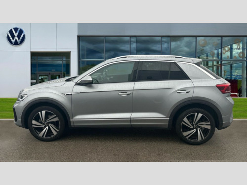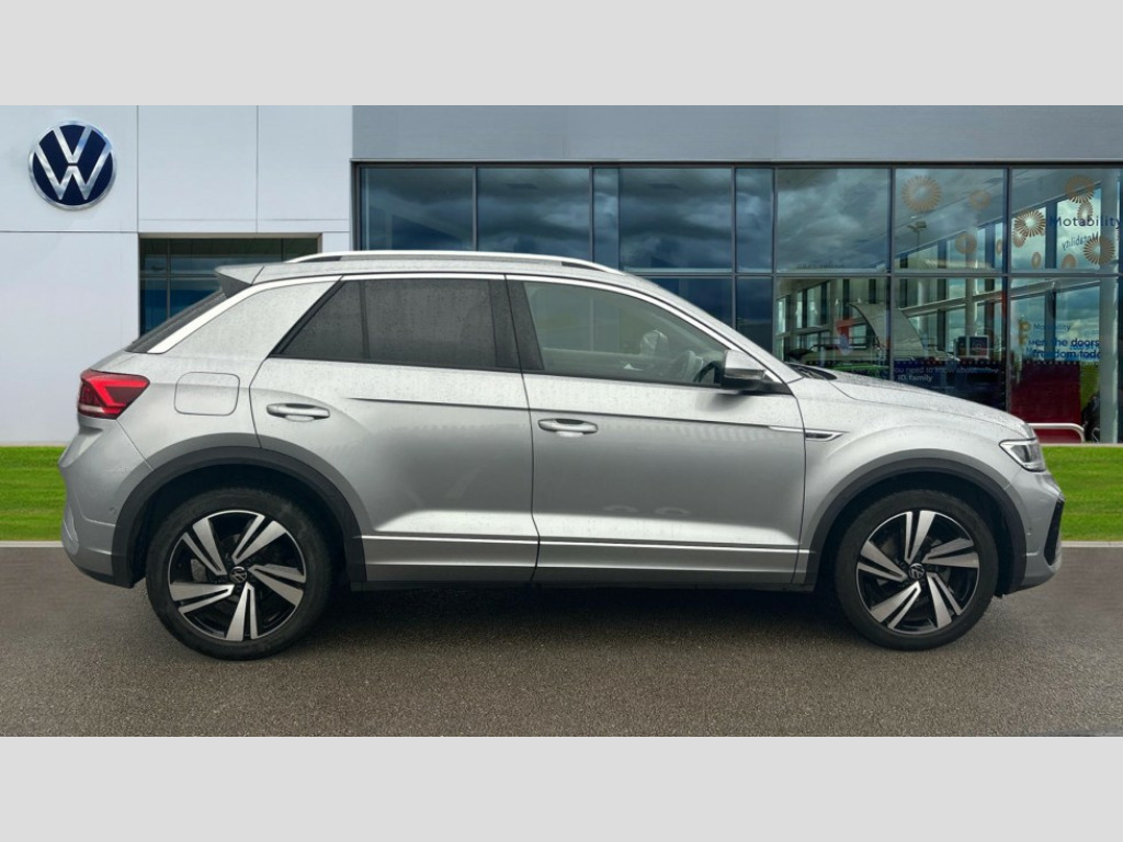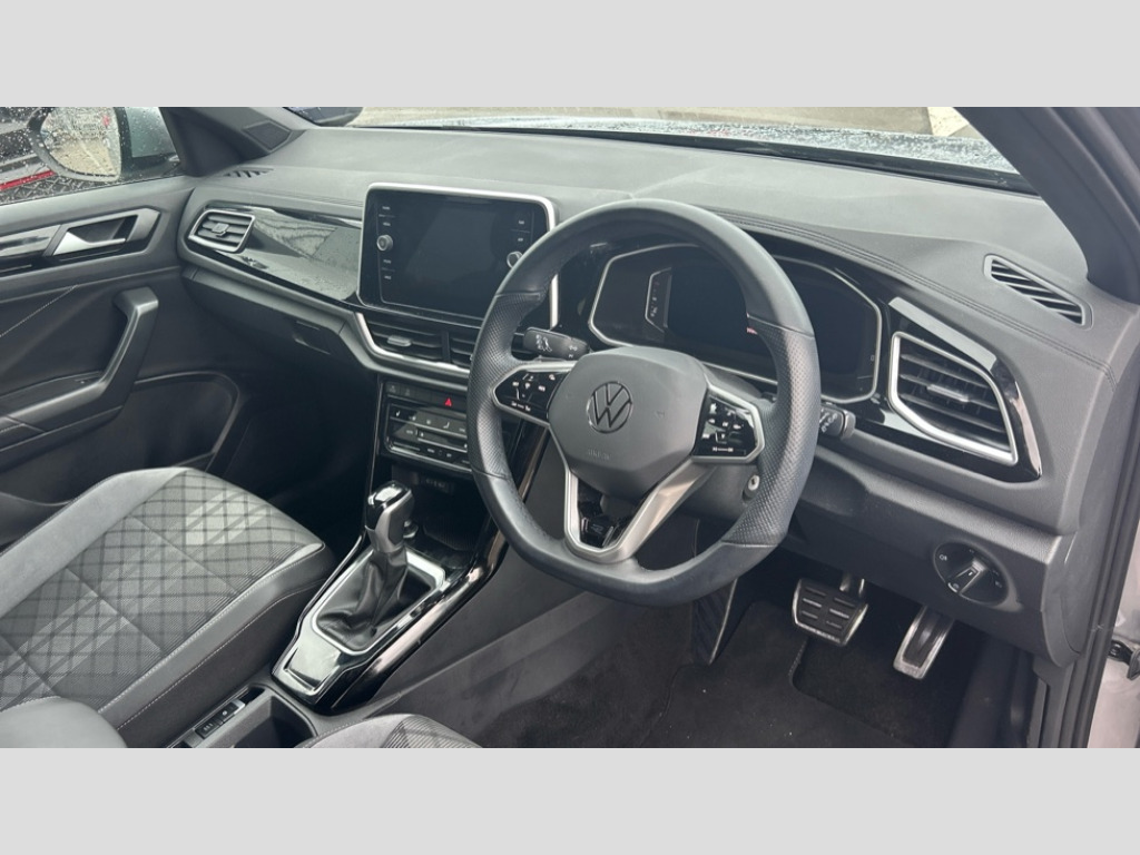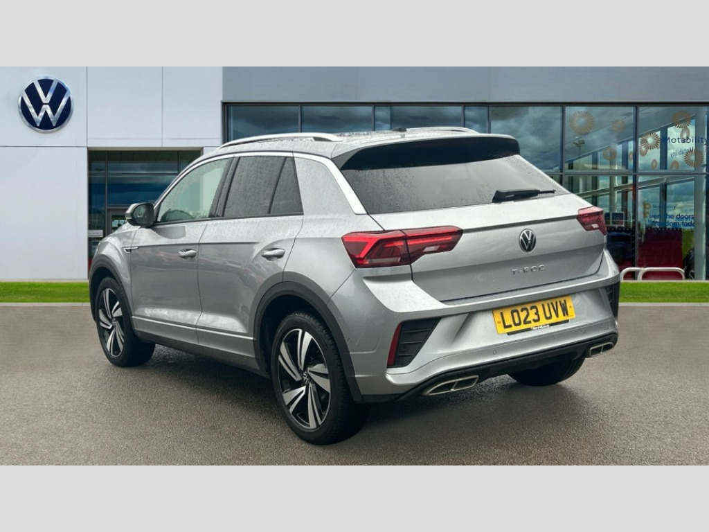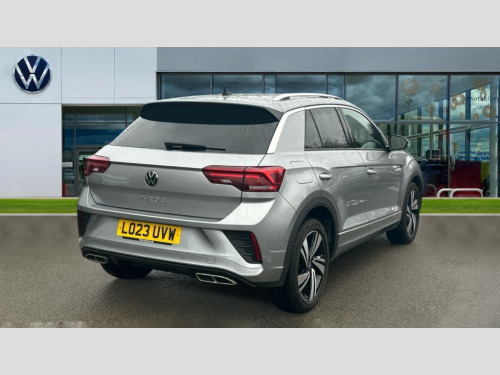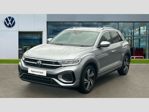 Volkswagen T-Roc 1.5 TSI R-Line 5dr DSG This 2023 Volkswagen T-Roc TSI R-Line is a Volkswagen manufacturer approved vehicle with only one owner from new. It features the sporty R-Line trim and is powered by an efficient 1.5 litre Euro 6 compliant petrol engine. This T-Roc comes equipped with a host of desirable features, including a rear view camera with parking assistance, a winter pack with heated seats, and advanced park assist with front and rear parking sensors. The automatic headlight control with LED daytime running lights and coming home leaving home feature enhances visibility, while the driver assistance package includes adaptive cruise control for a more relaxed driving experience.
