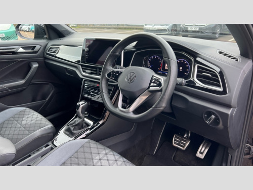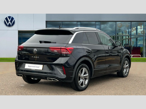 This 2022 Volkswagen T-Roc TSI R-Line is a Volkswagen manufacturer approved vehicle with only one owner from new. It features a 1.5 litre petrol engine and is Euro 6 compliant. The R-Line trim offers a sporty aesthetic and comes equipped with a Discover Media Navigation System that includes streaming and internet capabilities, along with parking assistance via a front camera. The Winter Pack adds heated seats for comfort, while automatic headlight control with LED daytime running lights and a coming home leaving home feature ensures visibility. Further enhancing the driving experience are the Bluetooth mobile phone interface and a comprehensive Driver Assistance Package, which includes adaptive cruise control.