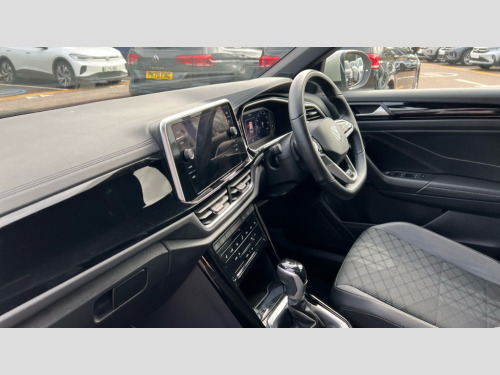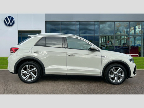 This 2023 Volkswagen T-Roc TSI R-Line presents an exceptional ownership proposition, having been meticulously maintained by its single owner and boasting remarkably low mileage for its age at just 17,497 miles. As a Volkswagen manufacturer approved vehicle, you can be assured of its quality and reliability. This R-Line trim level is equipped with a responsive 1.5 litre Euro 6 compliant petrol engine, offering a smooth and efficient driving experience. Notable features include the convenient Park Assist system with front and rear parking sensors, a Winter Pack for added comfort with heated seats, and a Bluetooth mobile phone interface for seamless connectivity. The automatic headlight control with LED daytime running lights and coming home leaving home feature enhances visibility and safety, while the Discover Media Navigation System with streaming and internet capabilities, including a front camera, ensures you're always on the right path.