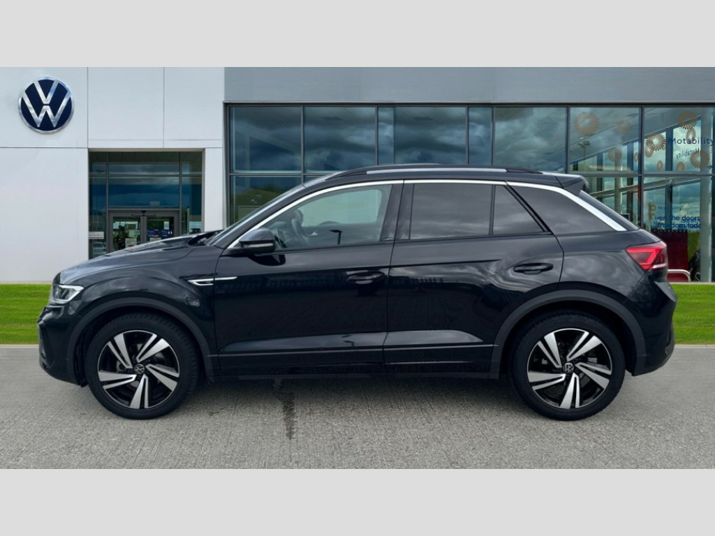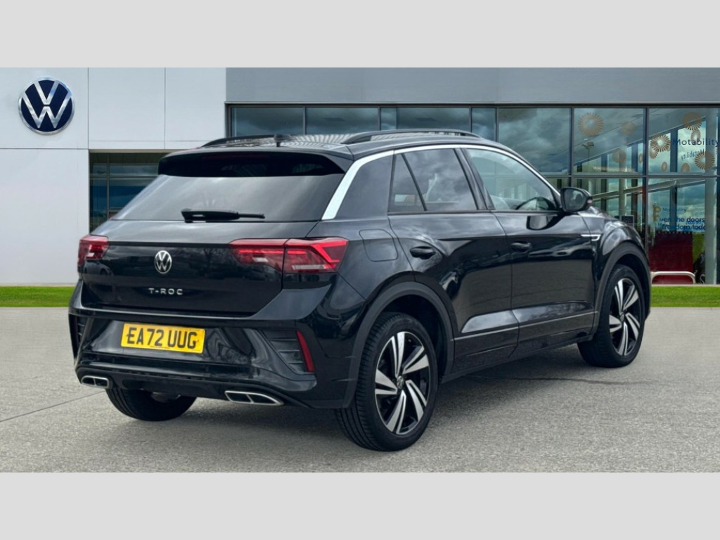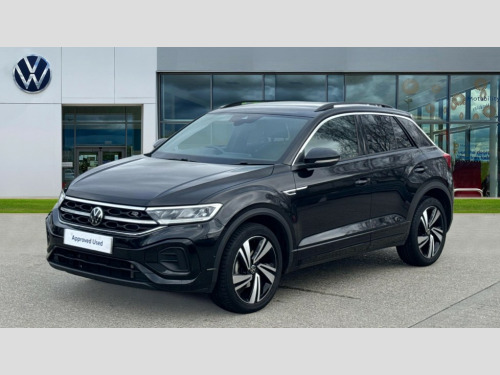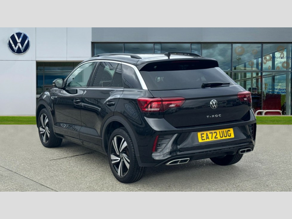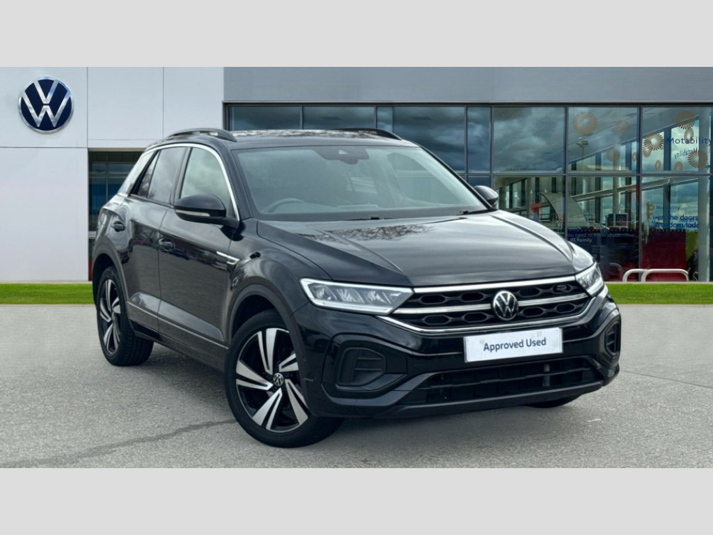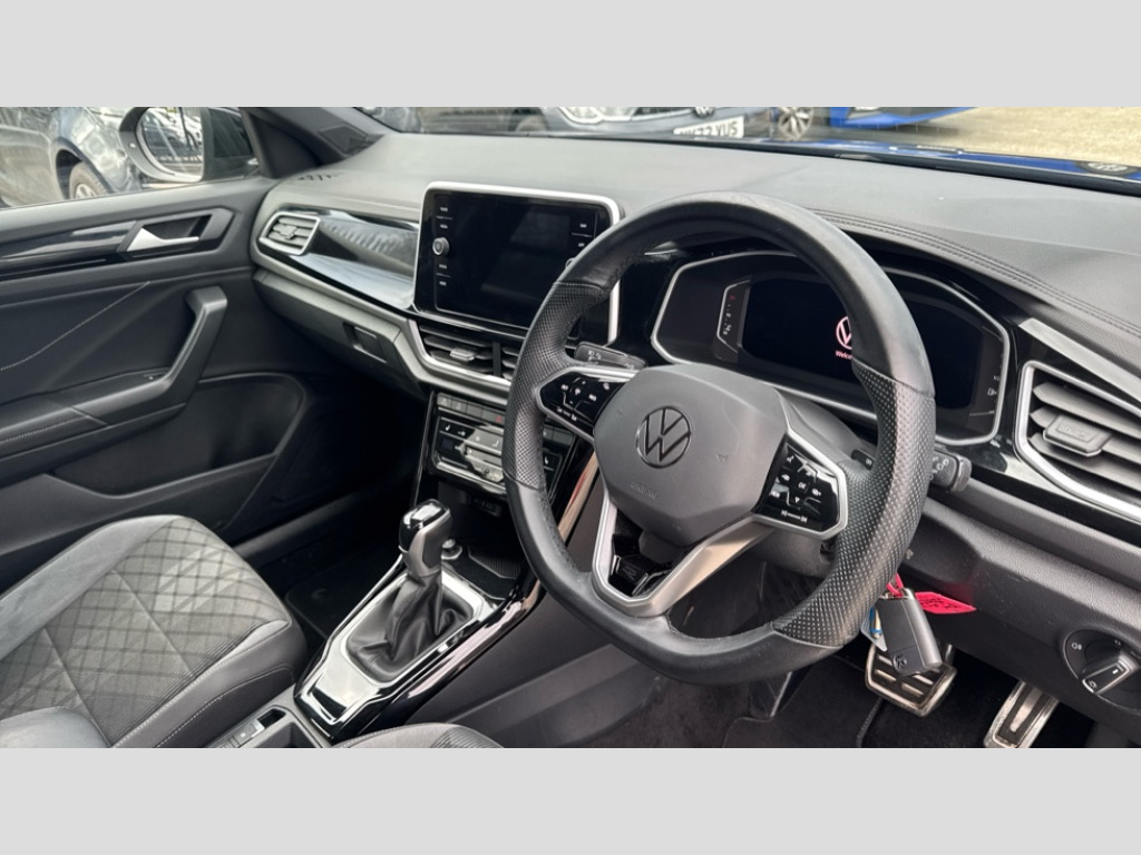 Volkswagen T-Roc 1.5 TSI R-Line 5dr DSG 10.25" Digital cockpit pro, Bluetooth mobile phone interface, Driver alert system with fatigue detection, Driver tips and journey analysis, Emergency call service, Lane keeping system Lane Assist, Modified key software - reduce switch off time for key status change to Long no motion, Online services, Park assist including front and rear parking sensors, Service interval indicator, Tailgate/trunk lid release from outside, Think blue trainer driver tips and journey analysis, Warning sound and light for front seatbelts unfastened, Wireless app connect, Battery regeneration during braking, Start/stop function with battery regeneration, Diversity antenna for FM reception, Front and rear 6 speakers, Music playback - MP3, WMA and AAC files, Premium USB cable in choice of either Apple or Android smartphone compatibility, SD card slot, Simultaneous pairing of 2 compatible mobile devices, Title and cover art display, We Connect and We Connect Plus functionality, 3rd brake light, Auto dimming interior rear view mirror, Automatic hazard lights activation under emergency braking, Automatic headlight control with LED separate daytime running lights with coming/leaving home function, Extended roof spoiler, Exterior mirrors aspherical on driver side, convex on front passenger side, External USB type C socket and charging sockets, Front windscreen wiper with intermittent wipe and 4 position delay, Heated rear window, LED Plus headlamps, LED rear combination lamps, LED rear number plate lights, LED tail lamp rear comination lamps, Power windows with comfort operation and circuit breaker, R-Line design body coloured bumpers, Rain sensor, Rear exhaust tailpipe, Rear fog light on one side and reversing lights on both sides, Rear side wing doors, Rear wash/wipe with intermittent wipe setting, Remote electrically foldable door mirrors, puddle lights and reverse activated passenger's door mirror, 12V power socket in centre console, 3 rear head restraints, 3 seat bench in 2nd row, 4 load lashing points in luggage compartment, Air care climatronic air conditoning system with active combination filter and 2-zone temperature control, Black roof lining, Chrome plated radiator grille inserts, air vent surrounds and light switch surrounds, Door and side trim panel with leatherette insert, Drawer under drivers seat, Front + rear carpet mats, Front centre armrest, Front cupholders x 2, Front footwell illumination, Front reading light, Front scuff plates with R logo, Instrument lighting, white adjustable panel illumination, Interior ambient lighting and surround lighting, Interior light delay, Isofix child seat preparation, Leather gearshift handle, Load-through provision with cup holder when folded down ('Unsplit rear seat bench, split folding backrest, with centre armrest), Luggage compartment lighting, Single front passenger seat, Stainless steel pedals, Storage compartment in left and right luggage area, Storage compartment in rear doors, Storage compartments in driver and front passenger doors, Sunvisors with illuminated vanity mirrors, Variable boot floor, height adjustable and removable, Driver assistance pack without proactive passenger protection - T-Roc, 3 point height adj front seatbelts + pretensioners, 3 point seatbelts in outer rear with ECE label, ABS, Child locks on rear doors, Driver and front passenger airbag with front passenger airbag deactivation, Driver and front passenger safety-optimised head restraints, Drivers seatbelt reminder, Electronic parking brake, Electronic Stability Control (ESC) inc EDL (Electronic Differential Lock) and ASR (Traction Control), Front and rear passengers curtain airbag system including front side airbags, Front assist with city emergency braking and pedestrian monitoring, Front seat side impact airbags, Hill start assist, Predictive pedestrian protection, Rear disc brakes, Single tone horn, Tyre pressure loss indicator, Volkswagen roadside assistance, Alarm with interior protection, Anti-theft alarm system with interior monitoring, backup horn, and towing protection, Remote central locking with SAFELOCK, radio remote control with 2 remote control folding keys, Trims for alloy wheels