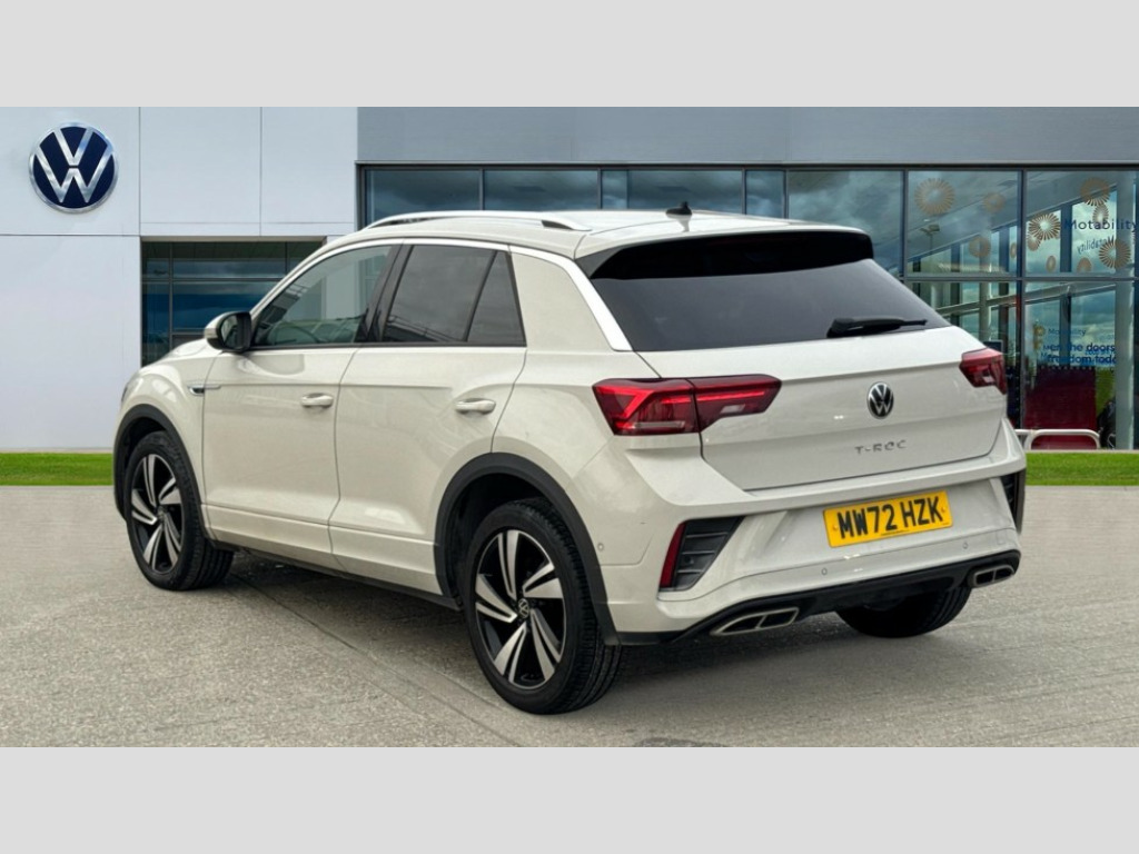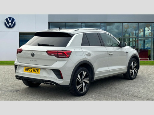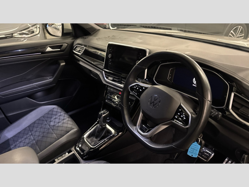 Volkswagen T-Roc 1.5 TSI R-Line 5dr DSG 10.25" Digital cockpit pro, Bluetooth mobile phone interface, Driver alert system with fatigue detection, Driver tips and journey analysis, Emergency call service, Lane keeping system Lane Assist, Modified key software - reduce switch off time for key status change to Long no motion, Online services, Park assist including front and rear parking sensors, Service interval indicator, Tailgate/trunk lid release from outside, Think blue trainer driver tips and journey analysis, Warning sound and light for front seatbelts unfastened, Wireless app connect, Battery regeneration during braking, Start/stop function with battery regeneration, Diversity antenna for FM reception, Front and rear 6 speakers, Music playback - MP3, WMA and AAC files, Premium USB cable in choice of either Apple or Android smartphone compatibility, SD card slot, Simultaneous pairing of 2 compatible mobile devices, Title and cover art display, We Connect and We Connect Plus functionality, 3rd brake light, Auto dimming interior rear view mirror, Automatic hazard lights activation under emergency braking, Automatic headlight control with LED separate daytime running lights with coming/leaving home function, Extended roof spoiler, Exterior mirrors aspherical on driver side, convex on front passenger side, External USB type C socket and charging sockets, Front windscreen wiper with intermittent wipe and 4 position delay, Heated rear window, LED Plus headlamps, LED rear combination lamps, LED rear number plate lights, LED tail lamp rear comination lamps, Power windows with comfort operation and circuit breaker, R-Line design body coloured bumpers, Rain sensor, Rear exhaust tailpipe, Rear fog light on one side and reversing lights on both sides, Rear side wing doors, Rear wash/wipe with intermittent wipe setting, Remote electrically foldable door mirrors, puddle lights and reverse activated passenger's door mirror, 12V power socket in centre console, 3 rear head restraints, 3 seat bench in 2nd row, 4 load lashing points in luggage compartment, Air care climatronic air conditoning system with active combination filter and 2-zone temperature control, Black roof lining, Chrome plated radiator grille inserts, air vent surrounds and light switch surrounds, Door and side trim panel with leatherette insert, Drawer under drivers seat, Front + rear carpet mats, Front centre armrest, Front cupholders x 2, Front footwell illumination, Front reading light, Front scuff plates with R logo, Instrument lighting, white adjustable panel illumination, Interior ambient lighting and surround lighting, Interior light delay, Isofix child seat preparation, Leather gearshift handle, Load-through provision with cup holder when folded down ('Unsplit rear seat bench, split folding backrest, with centre armrest), Luggage compartment lighting, Single front passenger seat, Stainless steel pedals, Storage compartment in left and right luggage area, Storage compartment in rear doors, Storage compartments in driver and front passenger doors, Sunvisors with illuminated vanity mirrors, Variable boot floor, height adjustable and removable, Driver assistance pack without proactive passenger protection - T-Roc, 3 point height adj front seatbelts + pretensioners, 3 point seatbelts in outer rear with ECE label, ABS, Child locks on rear doors, Driver and front passenger airbag with front passenger airbag deactivation, Driver and front passenger safety-optimised head restraints, Drivers seatbelt reminder, Electronic parking brake, Electronic Stability Control (ESC) inc EDL (Electronic Differential Lock) and ASR (Traction Control), Front and rear passengers curtain airbag system including front side airbags, Front assist with city emergency braking and pedestrian monitoring, Front seat side impact airbags, Hill start assist, Predictive pedestrian protection, Rear disc brakes, Single tone horn, Tyre pressure loss indicator, Volkswagen roadside assistance, Alarm with interior protection, Anti-theft alarm system with interior monitoring, backup horn, and towing protection, Remote central locking with SAFELOCK, radio remote control with 2 remote control folding keys, Trims for alloy wheels