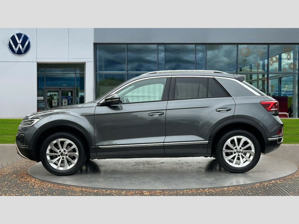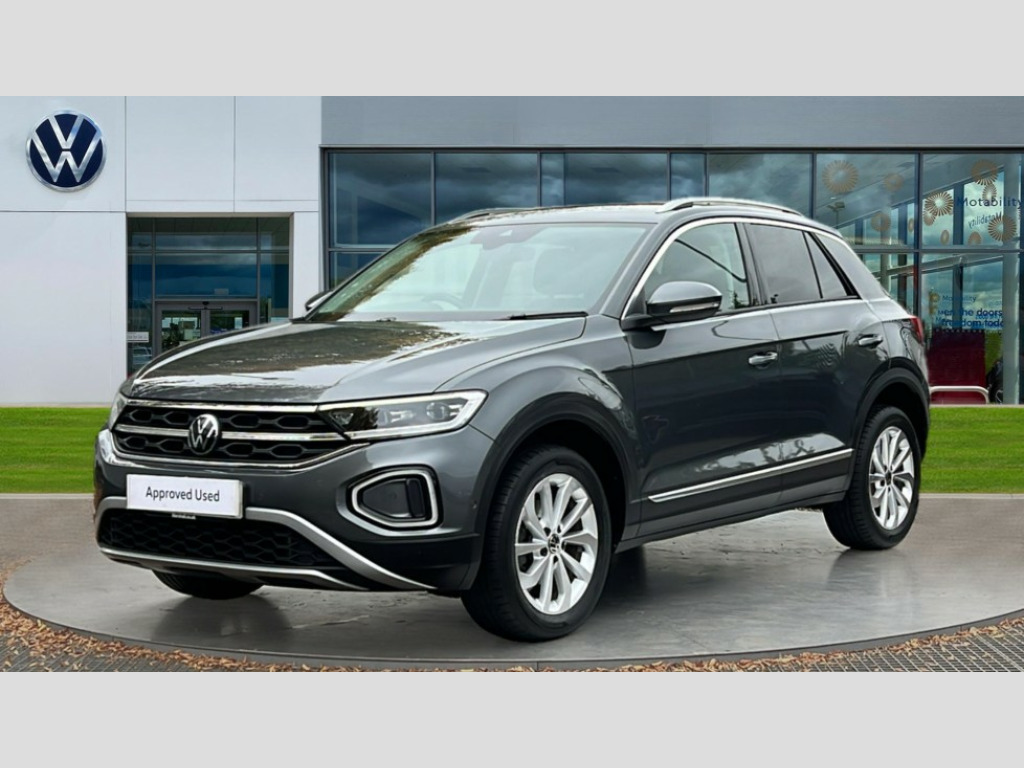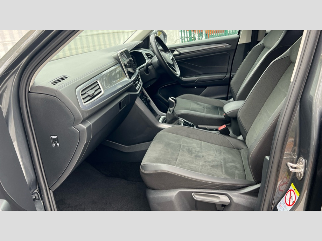 Volkswagen T-Roc 1.5 TSI Style 5dr 10.25" Digital cockpit pro, Advanced driver attention and drowsiness monitor, Bluetooth mobile phone interface, Emergency call service, Lane keeping system Lane Assist, Modified key software - reduce switch off time for key status change to Long no motion, Online services, Park assist including front and rear parking sensors, Service interval indicator, Tailgate/trunk lid release from outside, Think blue trainer driver tips and journey analysis, Warning sound and light for front seatbelts unfastened, Wireless app connect, Battery regeneration during braking, Start/stop function with battery regeneration, Diversity antenna for FM reception, Music playback - MP3, WMA and AAC files, Premium USB cable in choice of either Apple or Android smartphone compatibility, SD card slot, Simultaneous pairing of 2 compatible mobile devices, Title and cover art display, We Connect and We Connect Plus functionality, 3rd brake light, Auto dimming interior rear view mirror, Automatic hazard lights activation under emergency braking, Automatic headlight control with LED separate daytime running lights with coming/leaving home function, Body colour sports bumpers with silver metallic underbody fascia, Dynamic headlight range control with self adjusting whilst driving, Electrically adjustable and heated door mirrors, Extended roof spoiler, Exterior mirrors aspherical on driver side, convex on front passenger side, External USB type C socket and charging sockets, Front windscreen wiper with intermittent wipe and 4 position delay, Heated rear window, LED rear combination lamps, LED rear number plate lights, Light mode for poor weather, rain, fog or snow, Power windows with comfort operation and circuit breaker, Rain sensor, Rear exhaust tailpipe, Rear fog light on one side and reversing lights on both sides, Rear side wing doors, Rear wash/wipe with intermittent wipe setting, Remote electrically foldable door mirrors, puddle lights and reverse activated passenger's door mirror, 12V power socket in centre console, 3 rear head restraints, 3 seat bench in 2nd row, 4 load lashing points in luggage compartment, Air care climatronic air conditoning system with active combination filter and 2-zone temperature control, Chrome plated radiator grille inserts, air vent surrounds and light switch surrounds, Door and side trim panel with leatherette insert, Drawer under drivers seat, Front + rear carpet mats, Front centre armrest, Front comfort sports seats, Front cupholders x 2, Front footwell illumination, Front seat back storage pockets, Glove compartment door with light, Instrument lighting, white adjustable panel illumination, Interior ambient lighting and surround lighting, Interior light delay, Isofix child seat preparation, Leather gearshift handle, LED interior light with switch off delay/dimmer and 2 front/rear LED reading lights, Load-through provision with cup holder when folded down ('Unsplit rear seat bench, split folding backrest, with centre armrest), Luggage compartment lighting, Non-folding front passenger seat backrest, Single front passenger seat, Storage compartment in left and right luggage area, Storage compartment in rear doors, Storage compartments in driver and front passenger doors, Sunvisors with illuminated vanity mirrors, Variable boot floor, height adjustable and removable, Driver assistance pack without proactive passenger protection - T-Roc, 3 point height adj front seatbelts + pretensioners, 3 point seatbelts in outer rear with ECE label, ABS, Child locks on rear doors, City emergency braking and pedestrian monitoring, Driver and front passenger airbag with front passenger airbag deactivation, Driver and front passenger safety-optimised head restraints, Drivers seatbelt reminder, Electronic parking brake, Electronic Stability Control (ESC) inc EDL (Electronic Differential Lock) and ASR (Traction Control), Front and rear passengers curtain airbag system including front side airbags, Predictive pedestrian protection, Rear disc brakes, Two tone horn, Tyre pressure loss indicator, Volkswagen roadside assistance, Anti-theft alarm system with interior monitoring, backup horn, and towing protection, Remote central locking with SAFELOCK, radio remote control with 2 remote control folding keys, Trims for alloy wheels