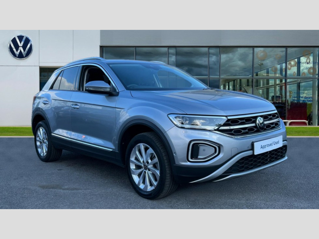 Volkswagen T-Roc 1.5 TSI Style 5dr DSG 10.25" Digital cockpit pro, Advanced driver attention and drowsiness monitor, Bluetooth mobile phone interface, Emergency call service, Lane keeping system Lane Assist, Modified key software - reduce switch off time for key status change to Long no motion, Online services, Park assist including front and rear parking sensors, Service interval indicator, Tailgate/trunk lid release from outside, Think blue trainer driver tips and journey analysis, Warning sound and light for front seatbelts unfastened, Wireless app connect, Battery regeneration during braking, Start/stop function with battery regeneration, Diversity antenna for FM reception, Music playback - MP3, WMA and AAC files, Premium USB cable in choice of either Apple or Android smartphone compatibility, SD card slot, Simultaneous pairing of 2 compatible mobile devices, Title and cover art display, We Connect and We Connect Plus functionality, 3rd brake light, Auto dimming interior rear view mirror, Automatic hazard lights activation under emergency braking, Automatic headlight control with LED separate daytime running lights with coming/leaving home function, Body colour sports bumpers with silver metallic underbody fascia, Dynamic headlight range control with self adjusting whilst driving, Electrically adjustable and heated door mirrors, Extended roof spoiler, Exterior mirrors aspherical on driver side, convex on front passenger side, External USB type C socket and charging sockets, Front windscreen wiper with intermittent wipe and 4 position delay, Heated rear window, LED rear combination lamps, LED rear number plate lights, Light mode for poor weather, rain, fog or snow, Power windows with comfort operation and circuit breaker, Rain sensor, Rear exhaust tailpipe, Rear fog light on one side and reversing lights on both sides, Rear side wing doors, Rear wash/wipe with intermittent wipe setting, Remote electrically foldable door mirrors, puddle lights and reverse activated passenger's door mirror, 12V power socket in centre console, 3 rear head restraints, 3 seat bench in 2nd row, 4 load lashing points in luggage compartment, Air care climatronic air conditoning system with active combination filter and 2-zone temperature control, Chrome plated radiator grille inserts, air vent surrounds and light switch surrounds, Door and side trim panel with leatherette insert, Drawer under drivers seat, Front + rear carpet mats, Front centre armrest, Front comfort sports seats, Front cupholders x 2, Front footwell illumination, Front seat back storage pockets, Glove compartment door with light, Instrument lighting, white adjustable panel illumination, Interior ambient lighting and surround lighting, Interior light delay, Isofix child seat preparation, Leather gearshift handle, LED interior light with switch off delay/dimmer and 2 front/rear LED reading lights, Load-through provision with cup holder when folded down ('Unsplit rear seat bench, split folding backrest, with centre armrest), Luggage compartment lighting, Non-folding front passenger seat backrest, Single front passenger seat, Storage compartment in left and right luggage area, Storage compartment in rear doors, Storage compartments in driver and front passenger doors, Sunvisors with illuminated vanity mirrors, Variable boot floor, height adjustable and removable, Driver assistance pack without proactive passenger protection - T-Roc, 3 point height adj front seatbelts + pretensioners, 3 point seatbelts in outer rear with ECE label, ABS, Child locks on rear doors, City emergency braking and pedestrian monitoring, Driver and front passenger airbag with front passenger airbag deactivation, Driver and front passenger safety-optimised head restraints, Drivers seatbelt reminder, Electronic parking brake, Electronic Stability Control (ESC) inc EDL (Electronic Differential Lock) and ASR (Traction Control), Front and rear passengers curtain airbag system including front side airbags, Predictive pedestrian protection, Rear disc brakes, Two tone horn, Tyre pressure loss indicator, Volkswagen roadside assistance, Anti-theft alarm system with interior monitoring, backup horn, and towing protection, Remote central locking with SAFELOCK, radio remote control with 2 remote control folding keys, Trims for alloy wheels