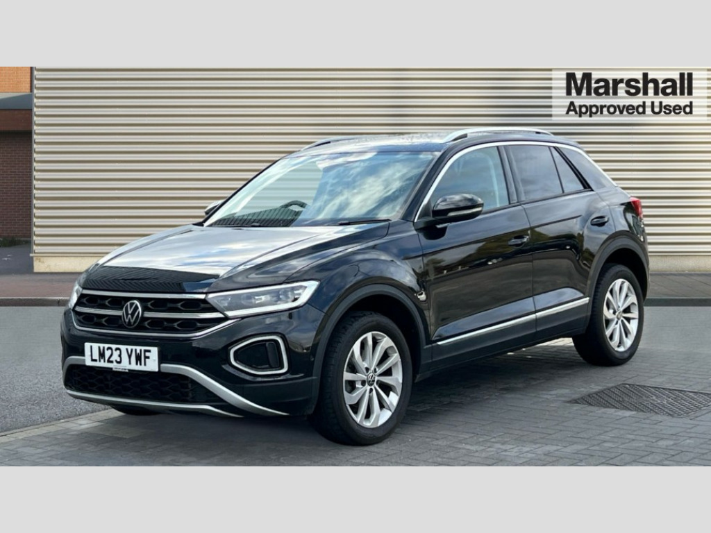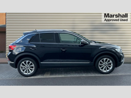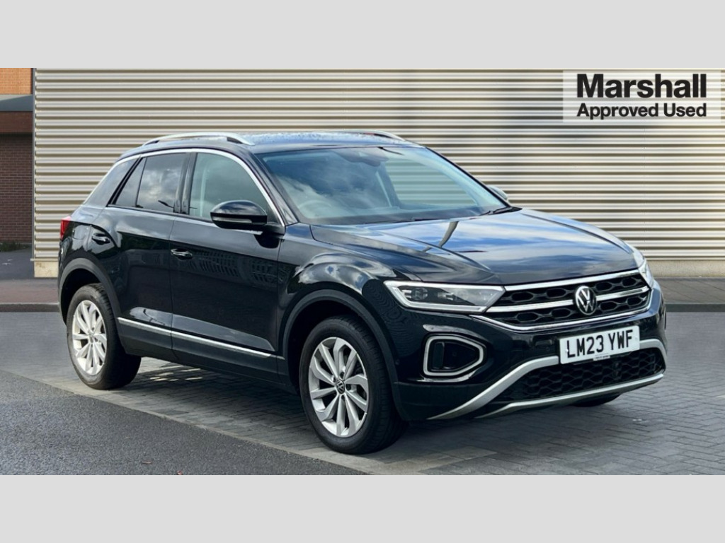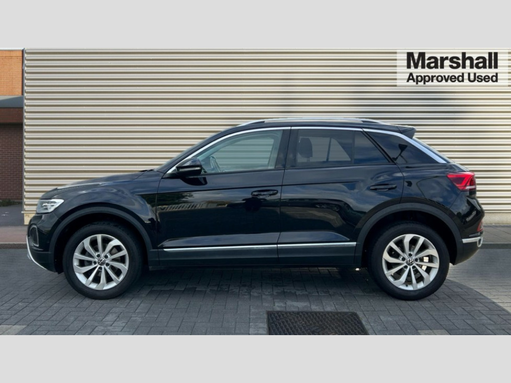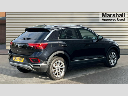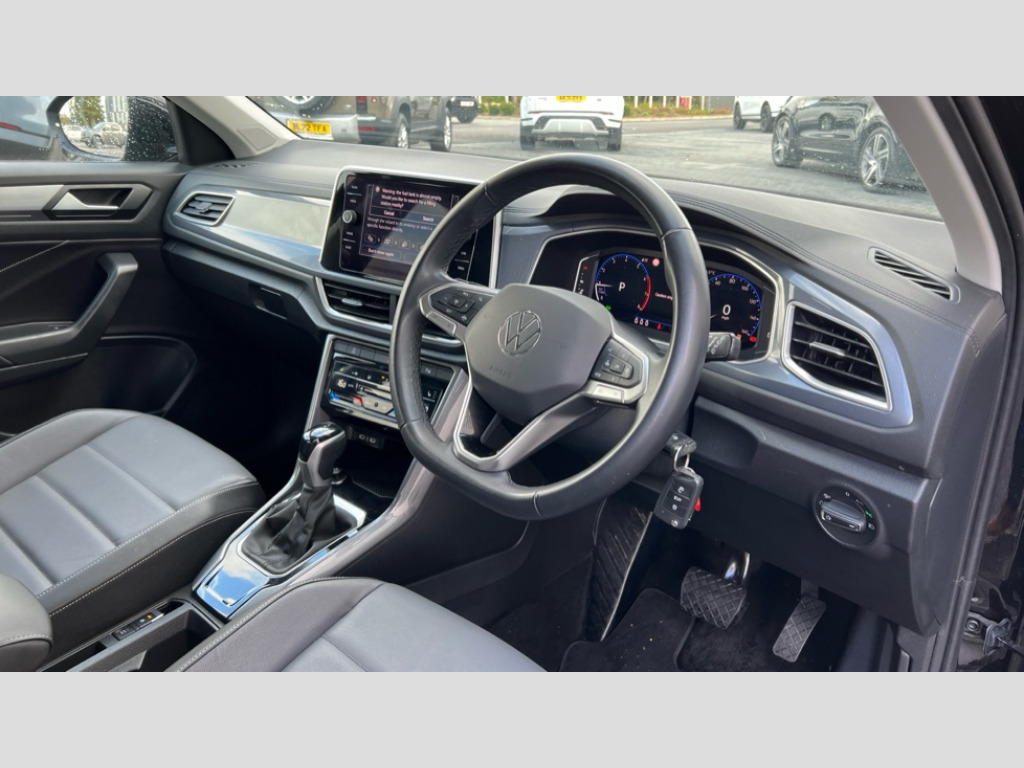 Volkswagen T-Roc 1.5 TSI Style 5dr DSG 10.25" Digital cockpit pro, Bluetooth mobile phone interface, Driver alert system with fatigue detection, Driver tips and journey analysis, Emergency call service, Lane keeping system Lane Assist, Modified key software - reduce switch off time for key status change to Long no motion, Online services, Park assist including front and rear parking sensors, Service interval indicator, Tailgate/trunk lid release from outside, Think blue trainer driver tips and journey analysis, Warning sound and light for front seatbelts unfastened, Wireless app connect, Battery regeneration during braking, Start/stop function with battery regeneration, Diversity antenna for FM reception, Front and rear 6 speakers, Music playback - MP3, WMA and AAC files, Premium USB cable in choice of either Apple or Android smartphone compatibility, SD card slot, Simultaneous pairing of 2 compatible mobile devices, Title and cover art display, We Connect and We Connect Plus functionality, 3rd brake light, Auto dimming interior rear view mirror, Automatic hazard lights activation under emergency braking, Automatic headlight control with LED separate daytime running lights with coming/leaving home function, Body colour sports bumpers with silver metallic underbody fascia, Dynamic headlight range control with self adjusting whilst driving, Extended roof spoiler, Exterior mirrors aspherical on driver side, convex on front passenger side, External USB type C socket and charging sockets, Front windscreen wiper with intermittent wipe and 4 position delay, Heated rear window, LED Plus headlamps, LED rear combination lamps, LED rear number plate lights, LED tail lamp rear comination lamps, Light mode for poor weather, rain, fog or snow, Power windows with comfort operation and circuit breaker, Rain sensor, Rear exhaust tailpipe, Rear fog light on one side and reversing lights on both sides, Rear side wing doors, Rear wash/wipe with intermittent wipe setting, Remote electrically foldable door mirrors, puddle lights and reverse activated passenger's door mirror, 12V power socket in centre console, 3 rear head restraints, 3 seat bench in 2nd row, 4 load lashing points in luggage compartment, Air care climatronic air conditoning system with active combination filter and 2-zone temperature control, Chrome plated radiator grille inserts, air vent surrounds and light switch surrounds, Door and side trim panel with leatherette insert, Drawer under drivers seat, Front + rear carpet mats, Front centre armrest, Front comfort sports seats, Front cupholders x 2, Front footwell illumination, Instrument lighting, white adjustable panel illumination, Interior ambient lighting and surround lighting, Interior light delay, Isofix child seat preparation, Leather gearshift handle, LED interior light with switch off delay/dimmer and 2 front/rear LED reading lights, Load-through provision with cup holder when folded down ('Unsplit rear seat bench, split folding backrest, with centre armrest), Luggage compartment lighting, Non-folding front passenger seat backrest, Single front passenger seat, Storage compartment in left and right luggage area, Storage compartment in rear doors, Storage compartments in driver and front passenger doors, Sunvisors with illuminated vanity mirrors, Variable boot floor, height adjustable and removable, Driver assistance pack without proactive passenger protection - T-Roc, 3 point height adj front seatbelts + pretensioners, 3 point seatbelts in outer rear with ECE label, ABS, Child locks on rear doors, Driver and front passenger airbag with front passenger airbag deactivation, Driver and front passenger safety-optimised head restraints, Drivers seatbelt reminder, Electronic parking brake, Electronic Stability Control (ESC) inc EDL (Electronic Differential Lock) and ASR (Traction Control), Front and rear passengers curtain airbag system including front side airbags, Front assist with city emergency braking and pedestrian monitoring, Front seat side impact airbags, Predictive pedestrian protection, Rear disc brakes, Single tone horn, Tyre pressure loss indicator, Volkswagen roadside assistance, Alarm with interior protection, Anti-theft alarm system with interior monitoring, backup horn, and towing protection, Remote central locking with SAFELOCK, radio remote control with 2 remote control folding keys, Trims for alloy wheels
